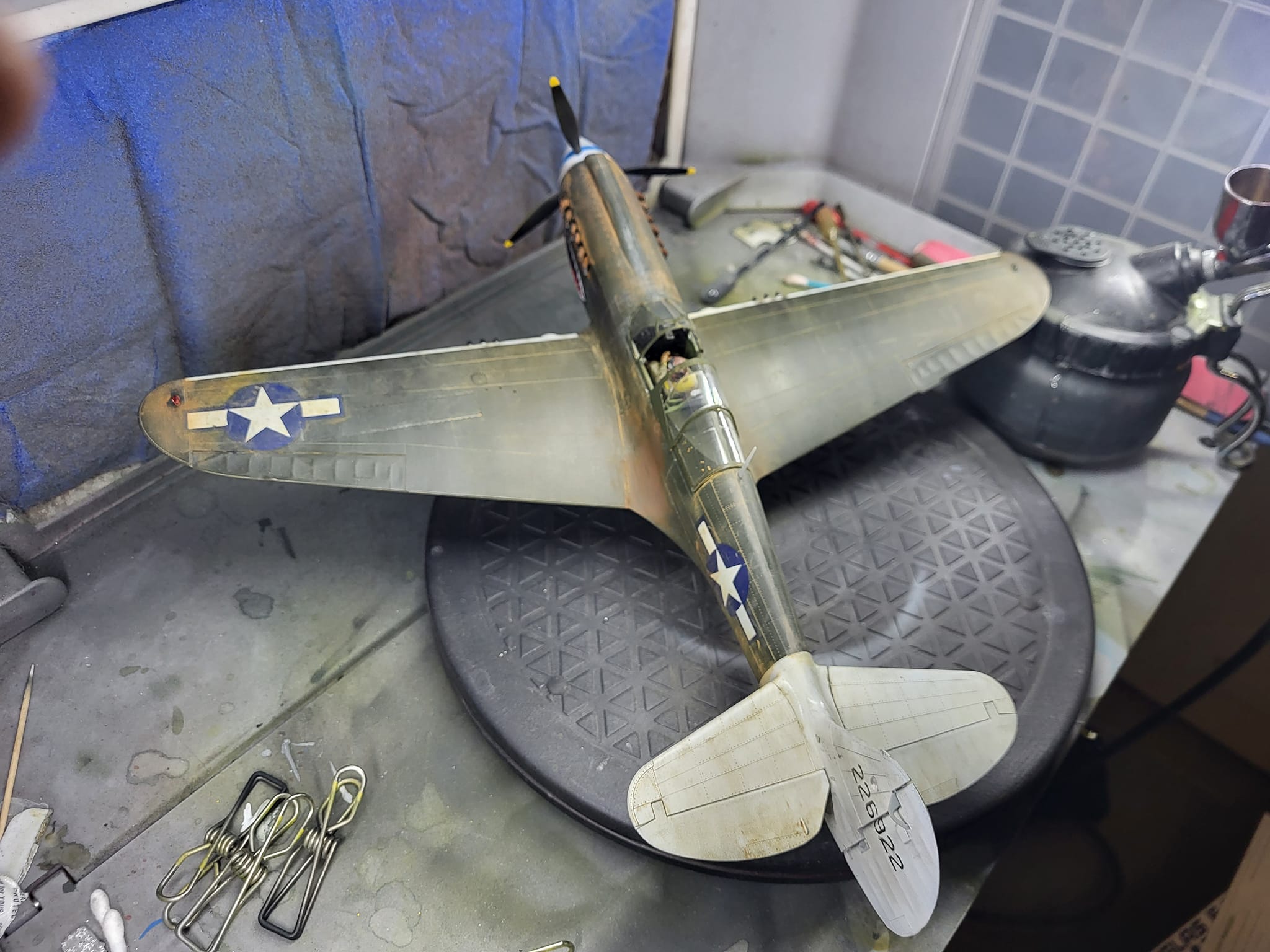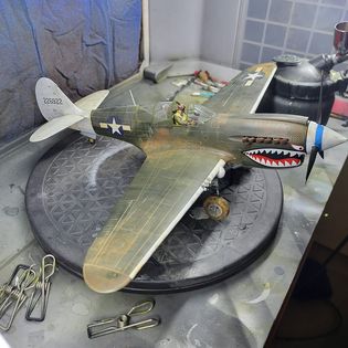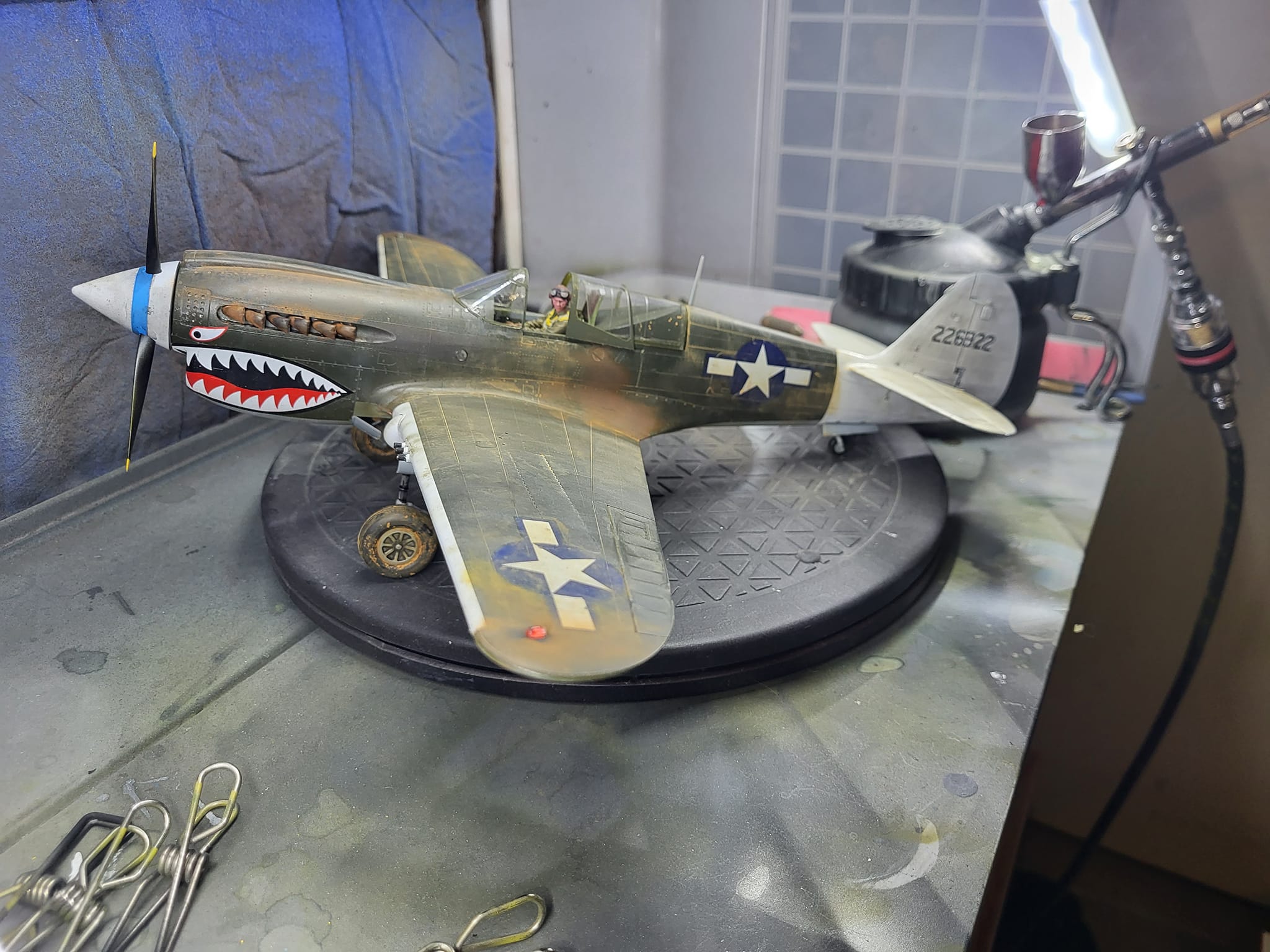 Here is my Trumpeter 32 scale P-40N that I got as a gift from a friend. The whole kit went together rater well and I really had no issues until I came to putting on the decals. they disintegrated when I put them in the water. I coated the rest with clear lacquer but that didn't help, so I cobbled together some old decals from my stash and came up with this wiffer. Painted with Gunze acrylic lacquers and weathered with Mig washes and oils.