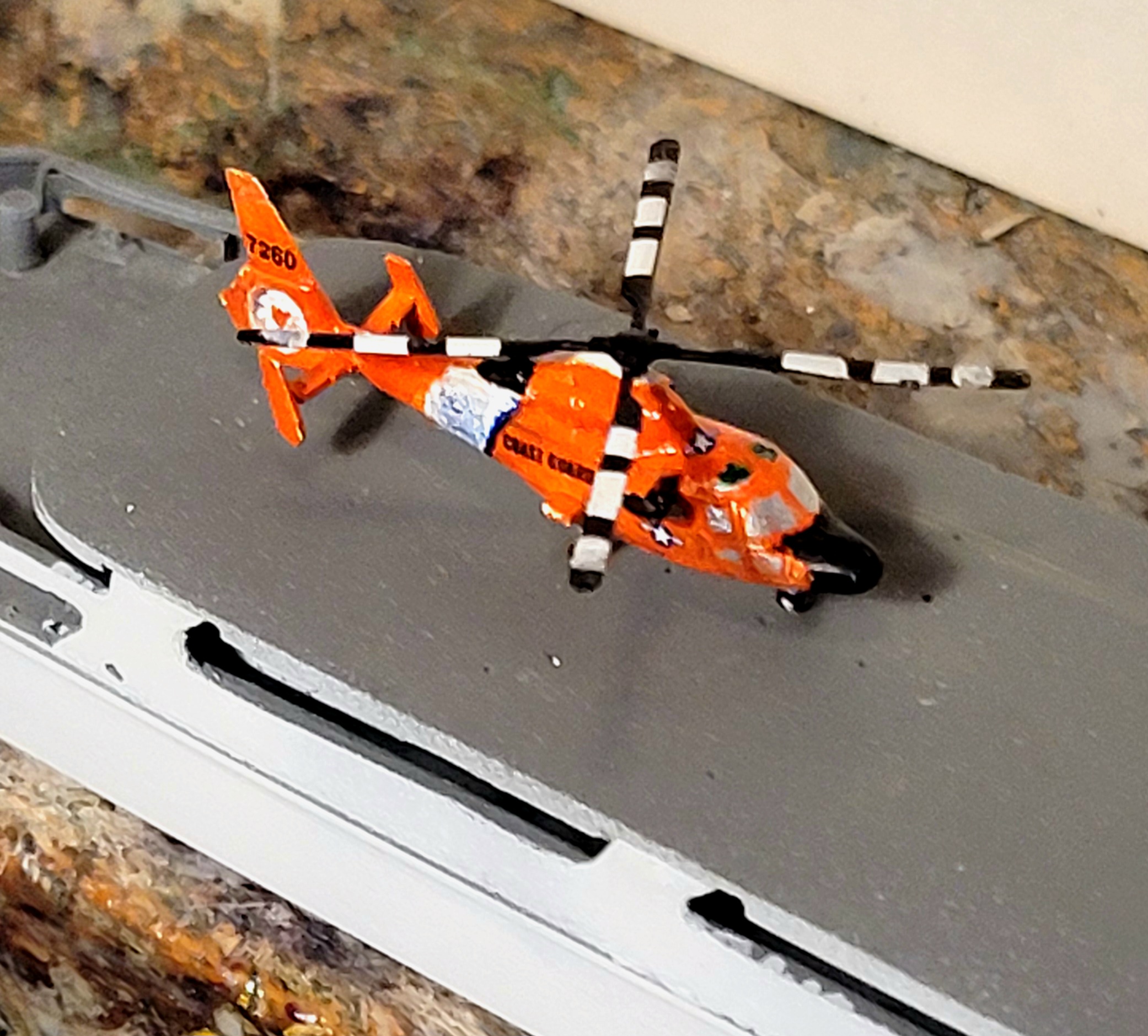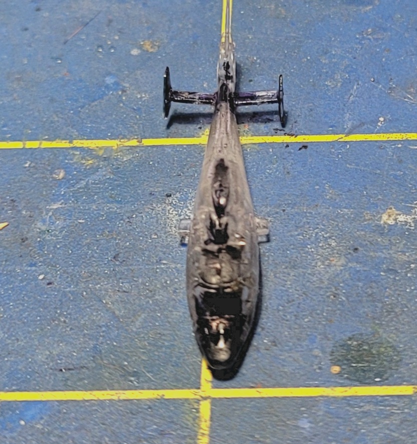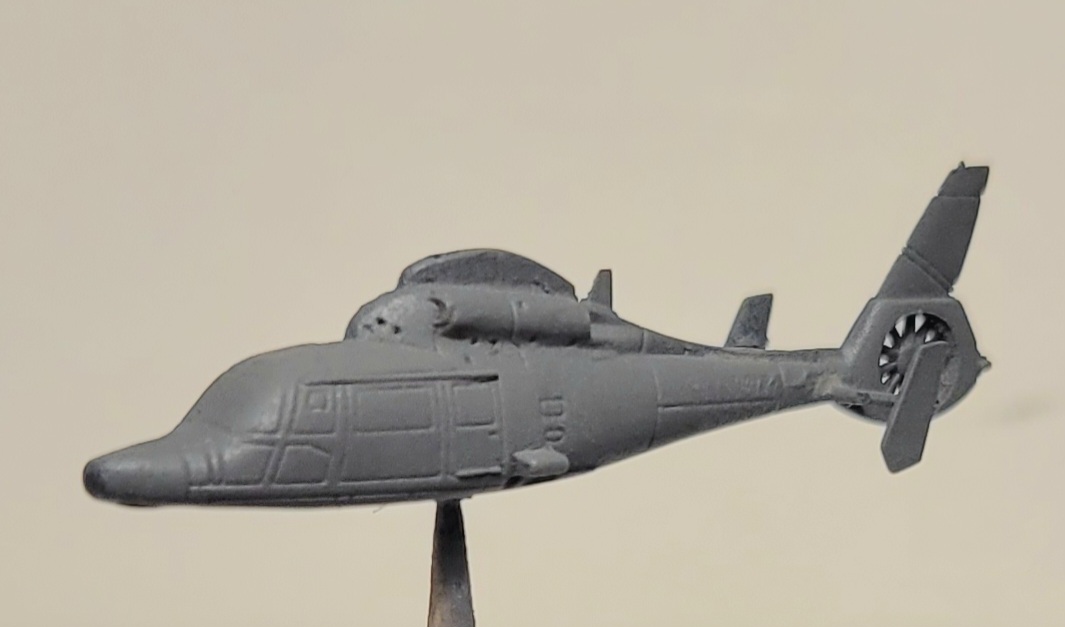 This, but with a rescue hoist instead of torpedoes that have a Chinese 1-Yuan deposit on them. Trumpeter molds these in a really vinyl-ish, slippery, clear plastic. Evidently they think modelers are looney enough to mask windscreens in this scale.