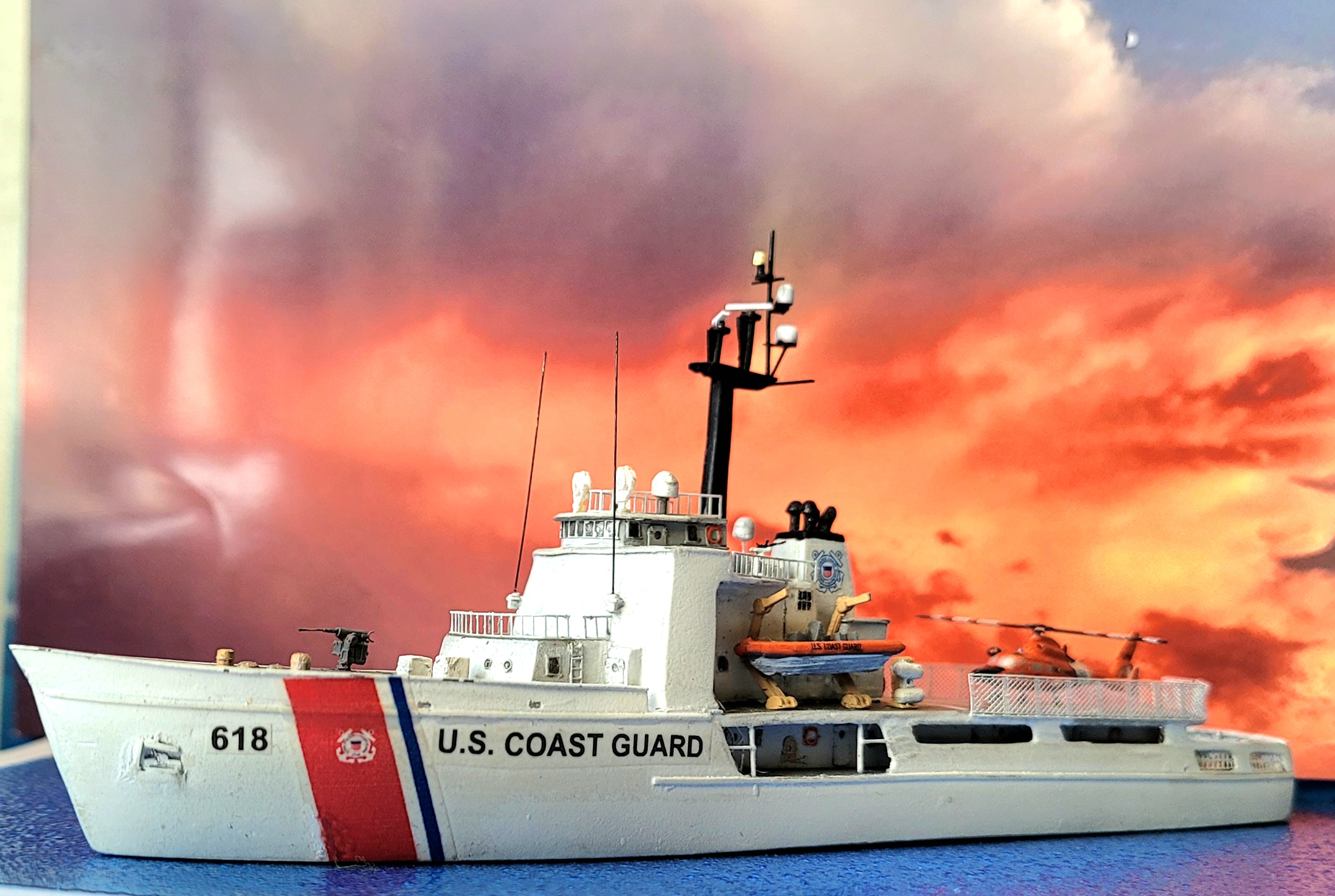 Kit arrived safely, unboxed it last night. Wow! Totally exceeded my expectations. Castings excellent, guns, helos, and decals first rate. The JAG kits come to mind. Thanks so much for the cool USCG stuff. Is the emblem from a charm bracelet or decoration? Love the Dauntless patch. will probably be the first build as a full hull. The bust markings will be challenging, Lol!