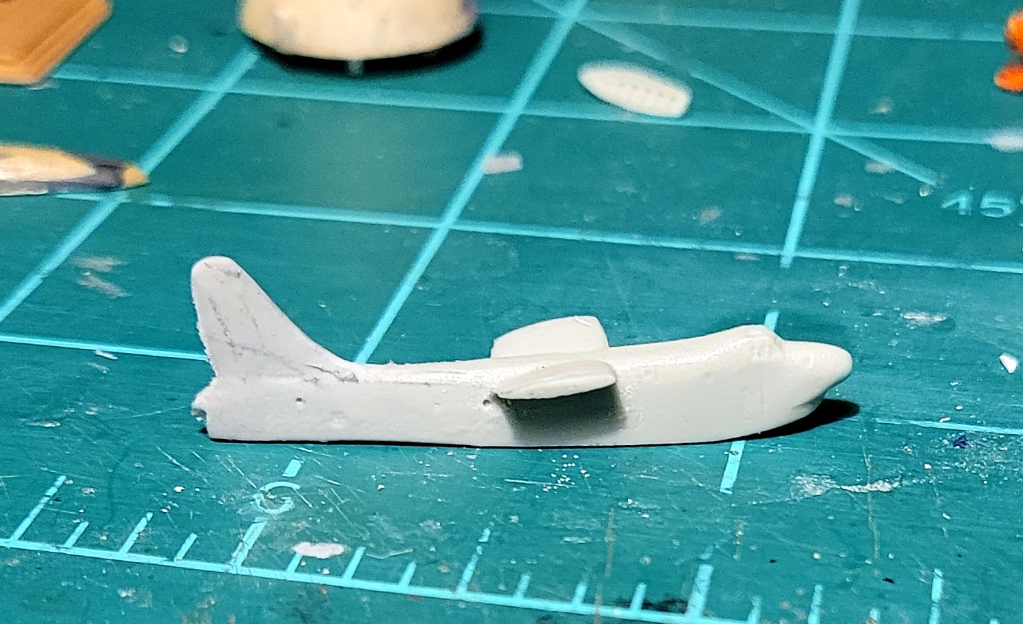 Marlins at anchor rest on one wing float or the other. I discovered some glaring flaws in the original castings. I'll fix those while I'm at it.
