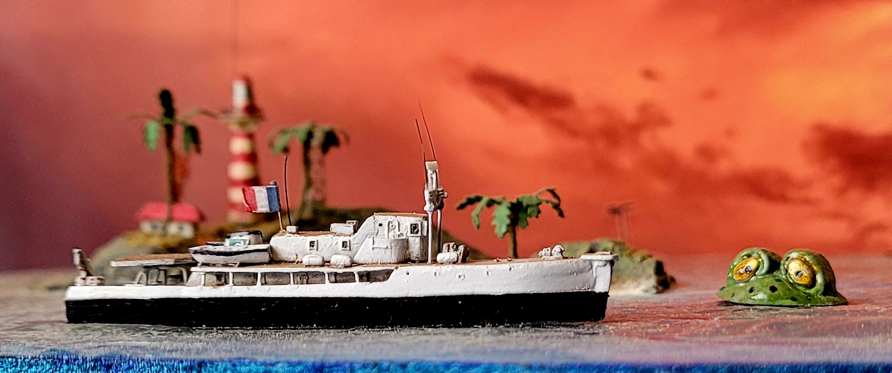 RV Calypso is a French flagged vessel. It HAD to come with some sort of Frog! He comes in the kit.I remember watch him on the TV when I was but a tad.