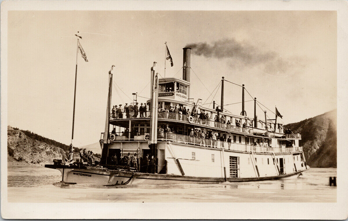 This is the cover picture. Steamboat SS Whitehorse, plying the treacherous 5-finger rapids of the Yukon river in the early 1900's.