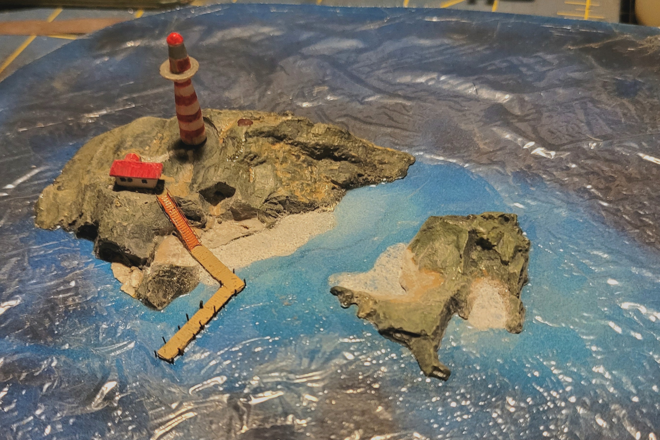 These are the original issue islands and lighthouse from the 2016 molds. A contemporary lighthouse and upgraded islands will be included in the limited re-issue of the TLAR models 1/700 US Coast Guard "Diorama-in-a-Box".