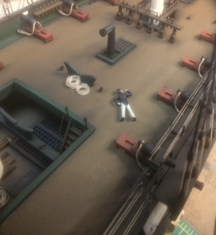 Starting to think about the sails. And how I want them to look. In general pulling off sails on a model ship well is a pretty tricky affair. In my opinion they can easily ruin an otherwise beautifully built model. On my 1/96 scale build all fabric/cloth type material is out of the question. As a matter of fact I don't think there's any material that's going to be ideal. There's going to be compromise. In my case after some experimenting Kleenex seems to be the choice for what I'm doing. Kleenex wouldn't work at all for displaying set sails. But I'm displaying the ship at anchor with sails furled, with the lower yard sails loosely furled (drying out).