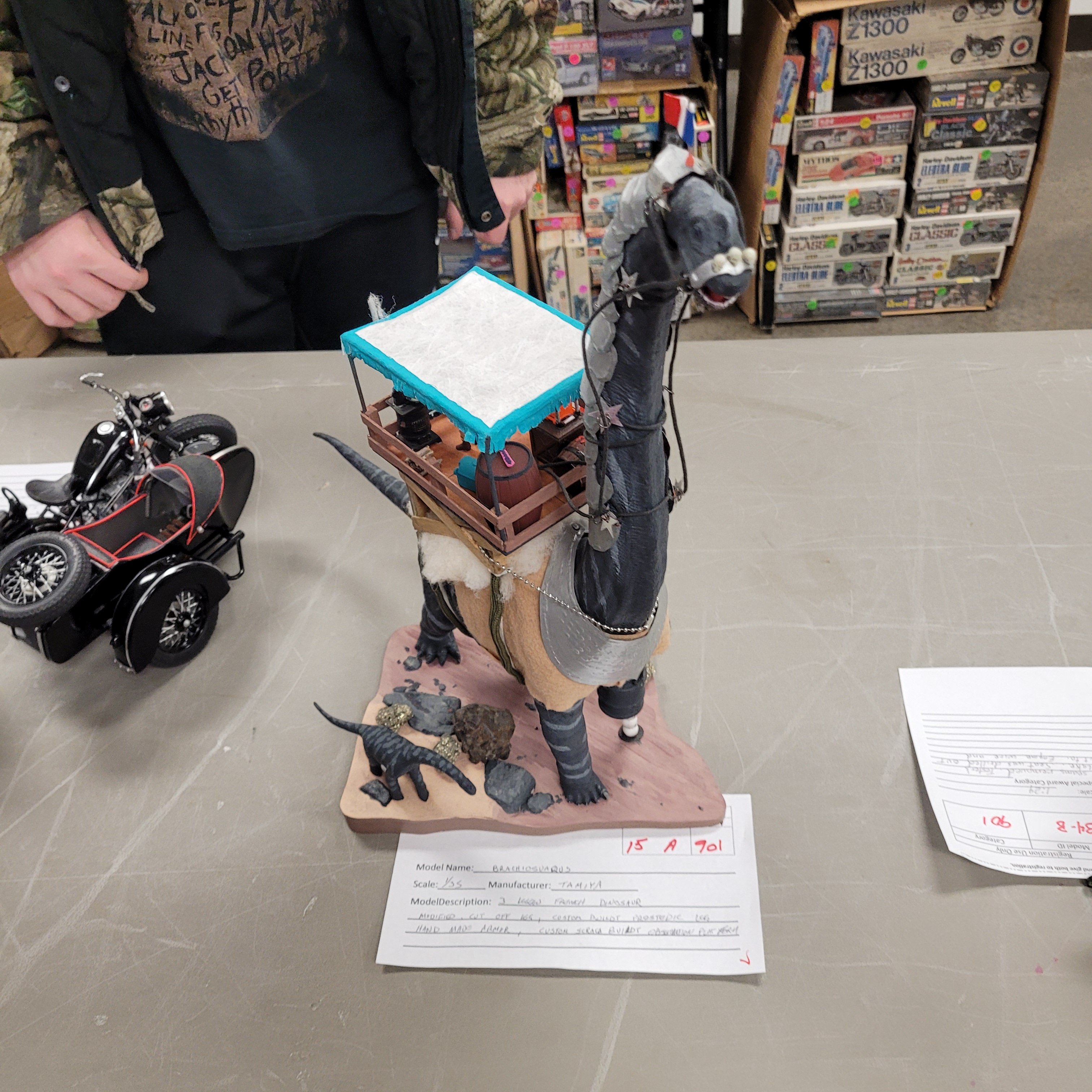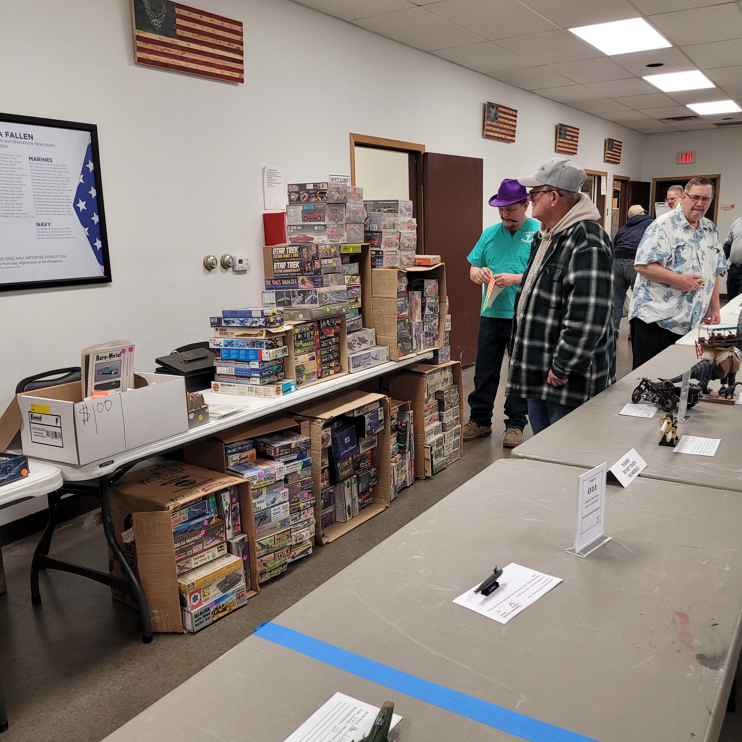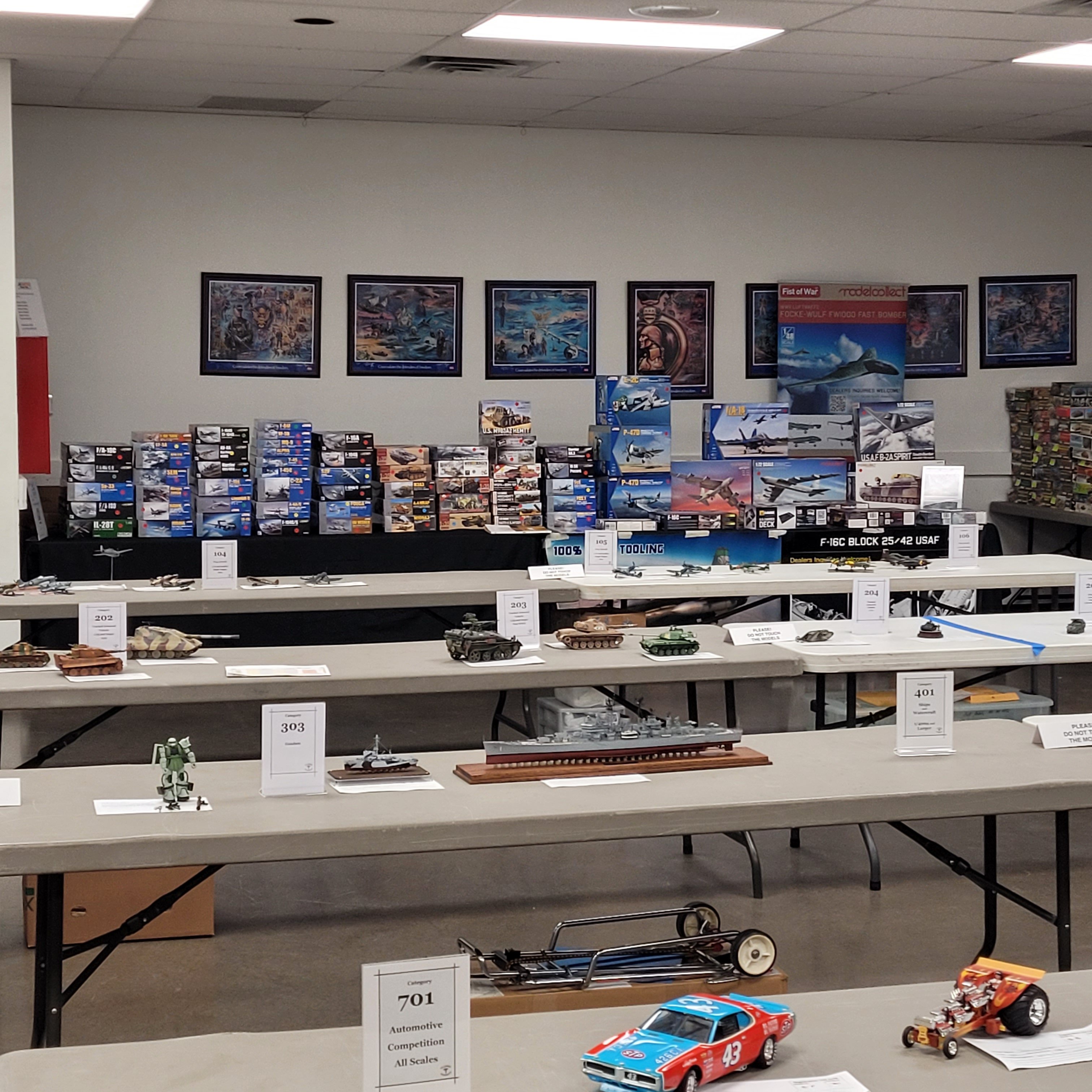 Vendors Mark Johnson, Virgil Stansbury and good ol' Larry Clausen set up in the registration room. Virgil tells me he's sold so much of his model kit collection that next year he won't be vending. Virgil wants to enter and play with the rest of us Hobby Hahnyaaks. "What? You're retiring from being RETIRED?!"