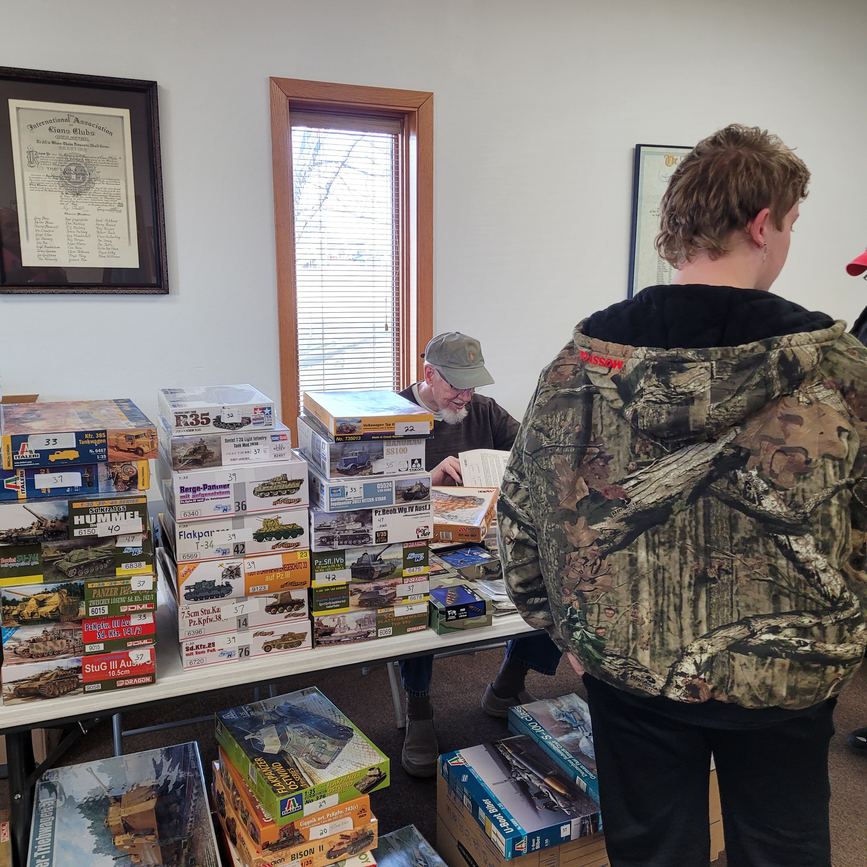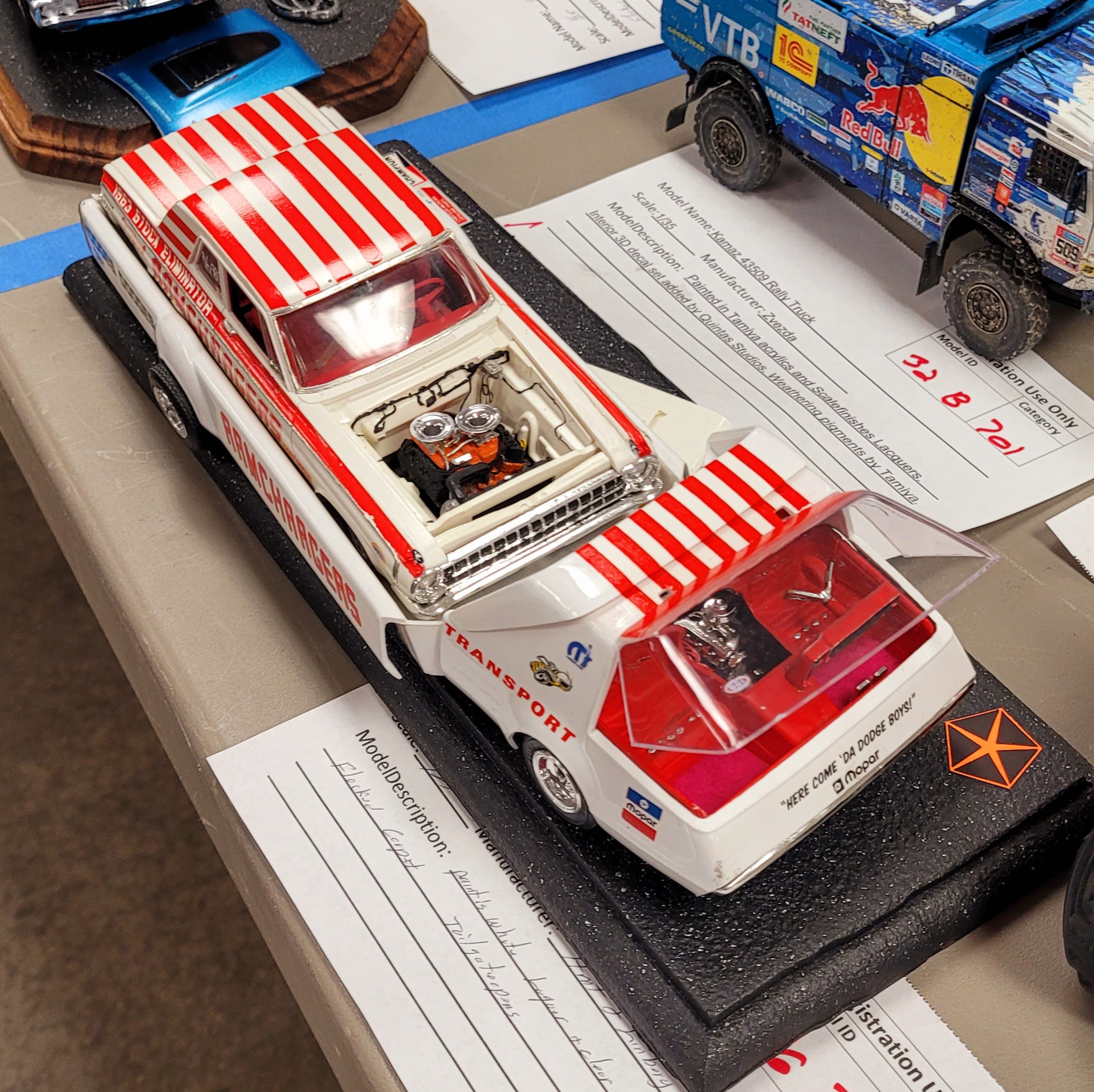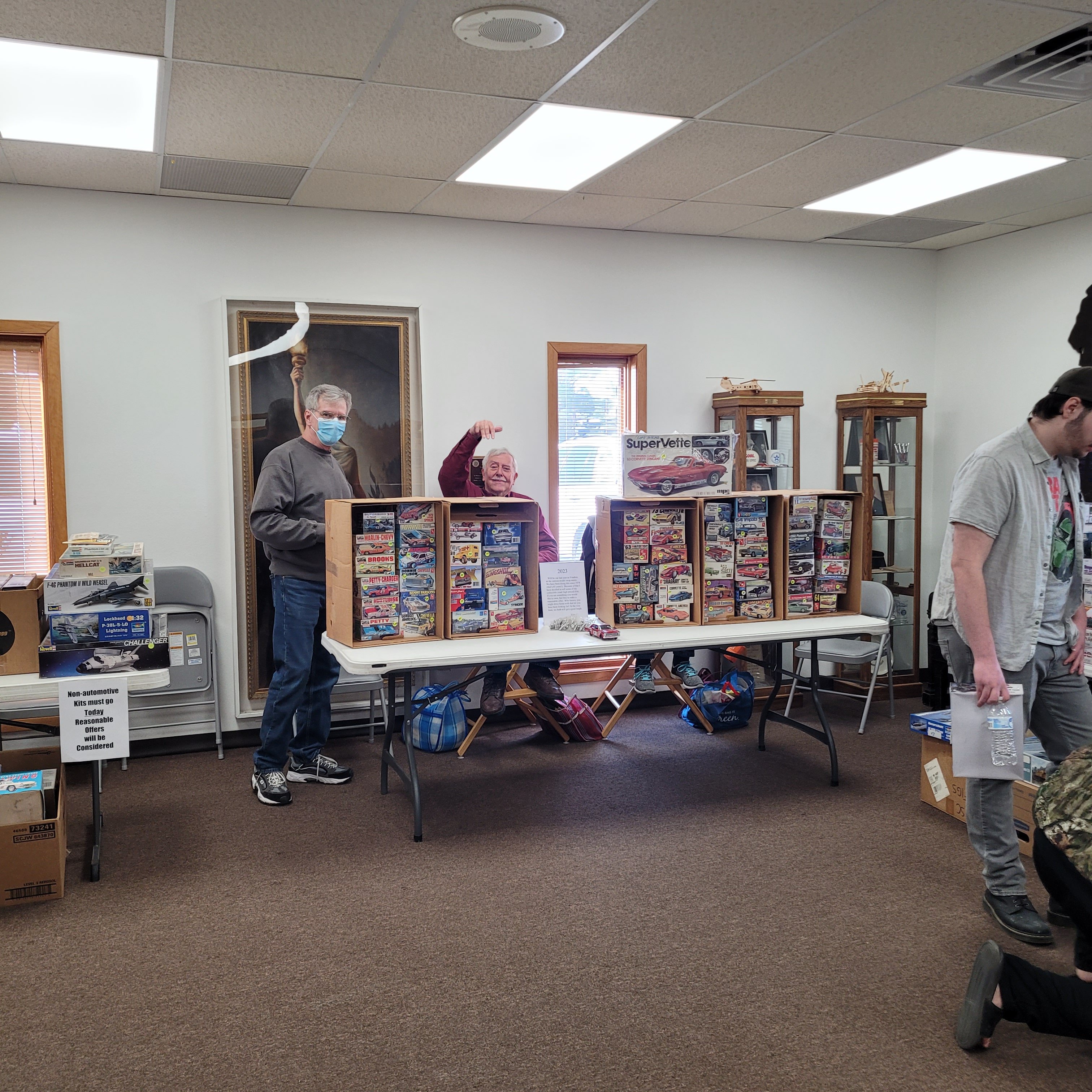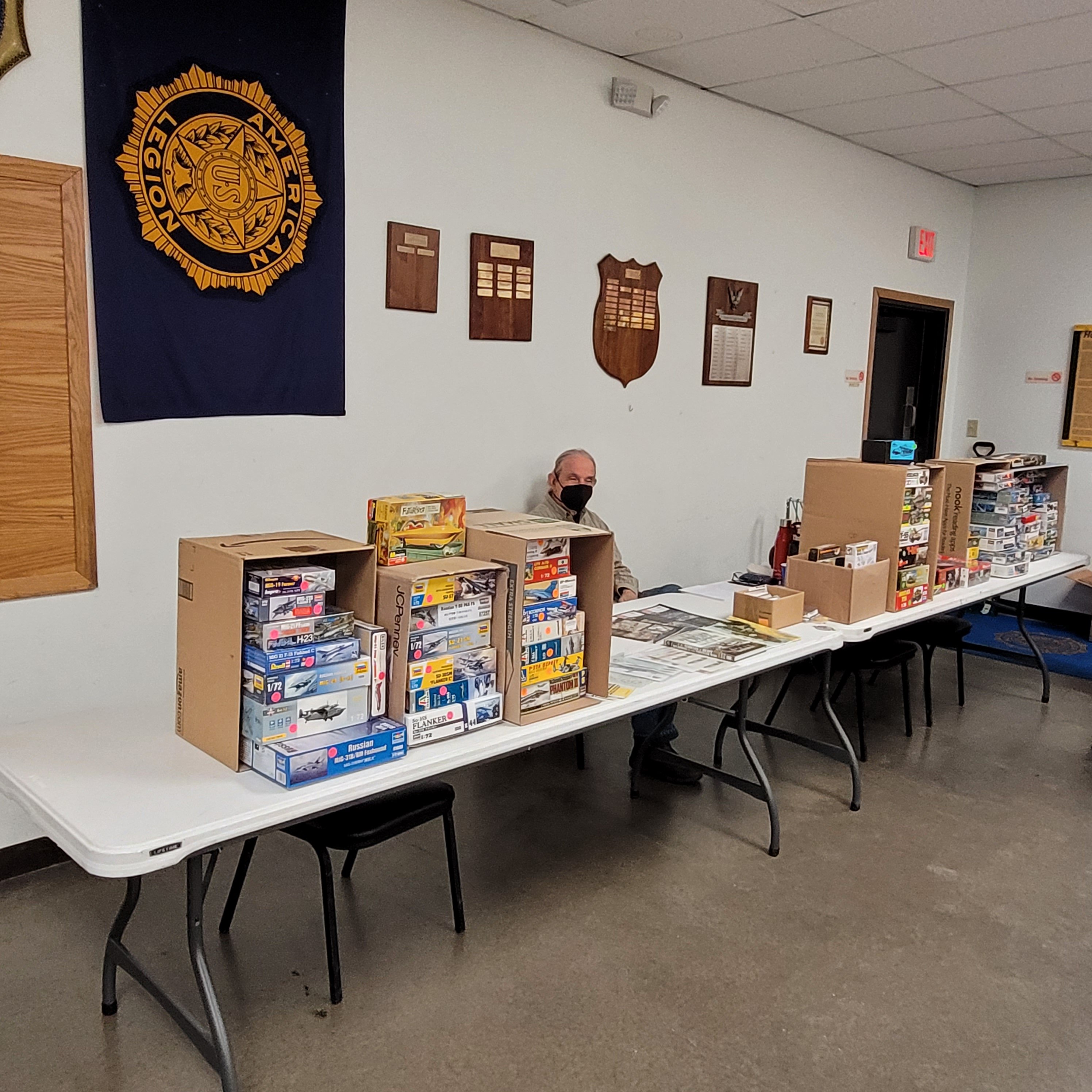 Vendors Mark Johnson, Virgil Stansbury and good ol' Larry Clausen set up in the registration room. Virgil tells me he's sold so much of his model kit collection that next year he won't be vending. Virgil wants to enter and play with the rest of us Hobby Hahnyaaks. "What? You're retiring from being RETIRED?!"