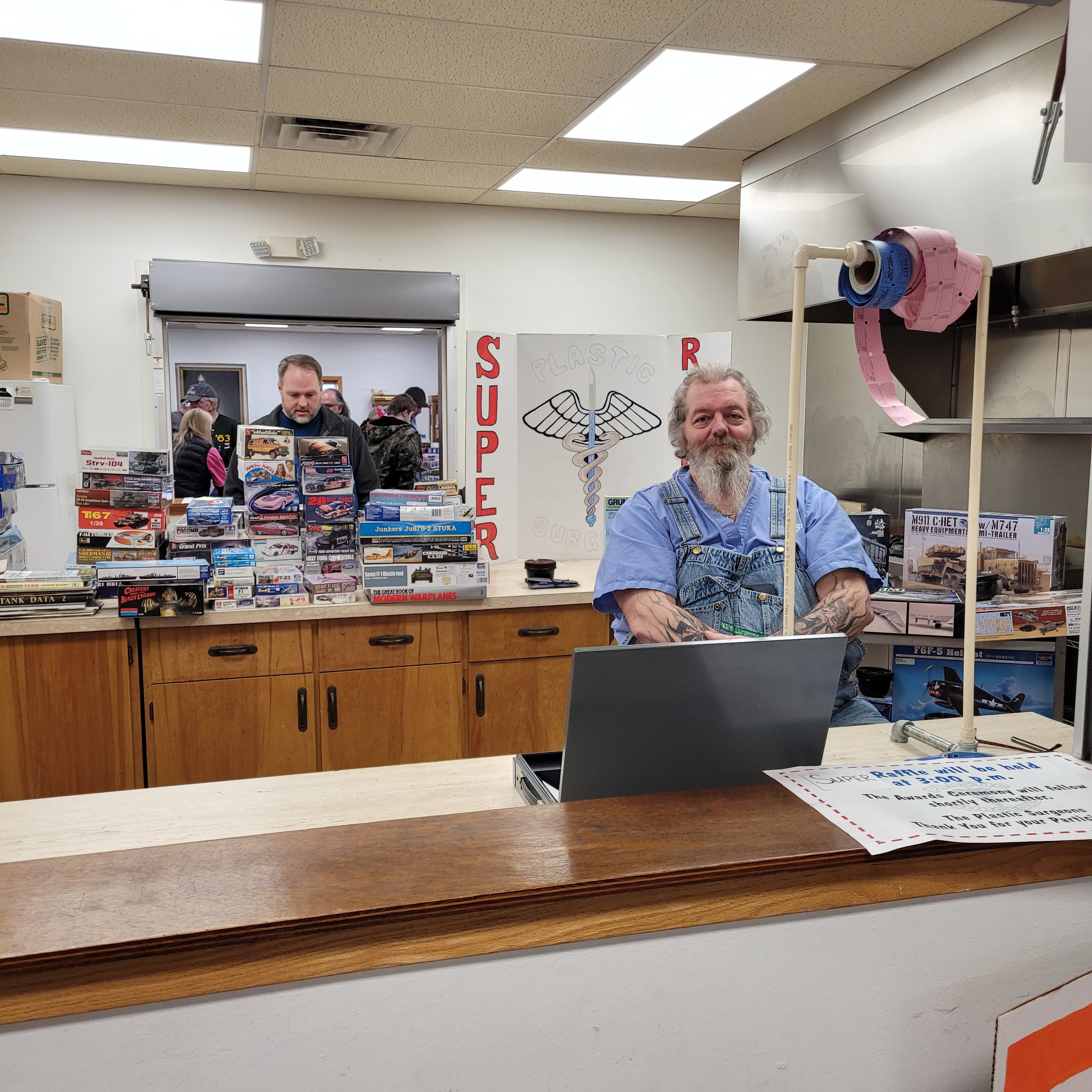 Aimee, Teresa, Bob Maloy and George Stevens handled registration. The game is afoot to see if the program the Mad City modelers use to project pictures of award-winning models will work this year. It was really close last year! As Plastic Surgeons M/C, I stand ready to "wing it" again if necessary.