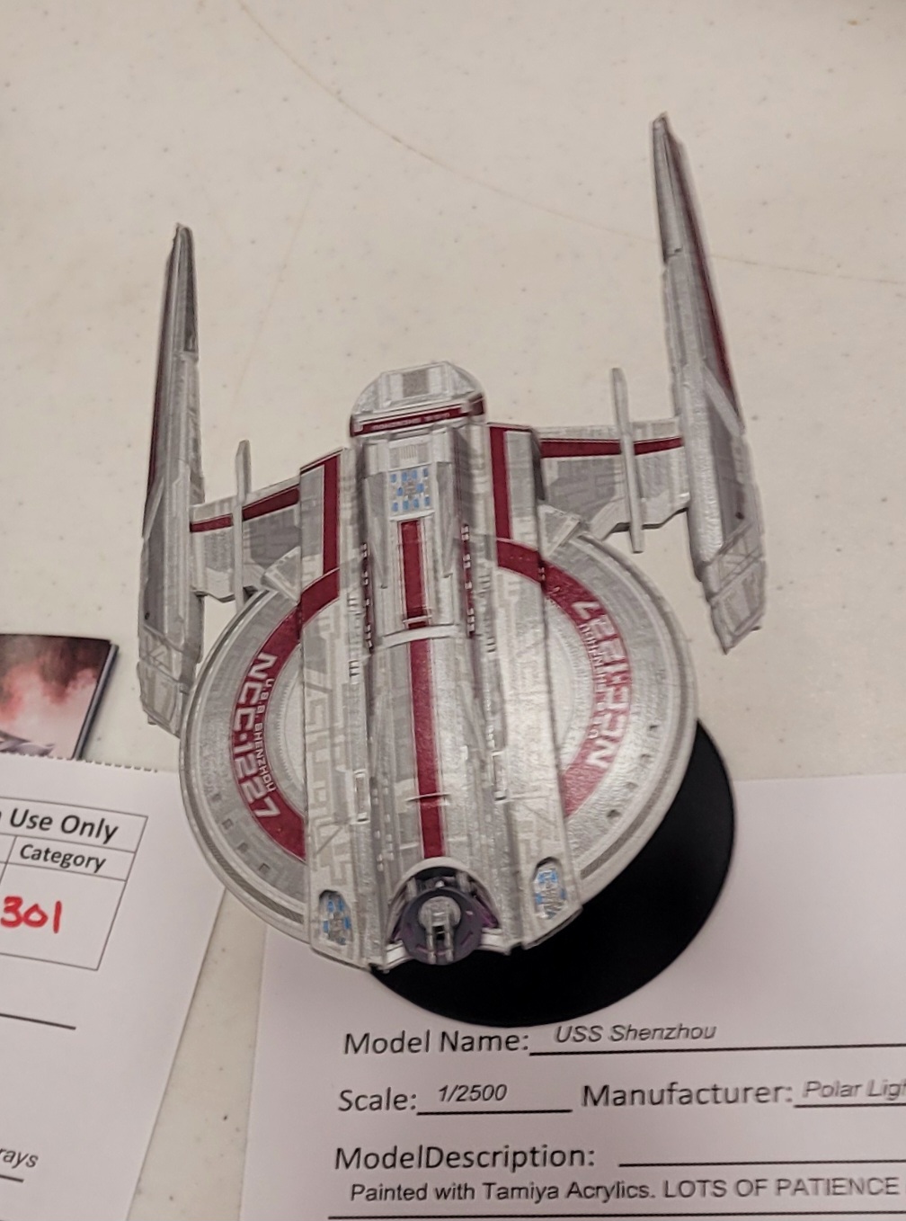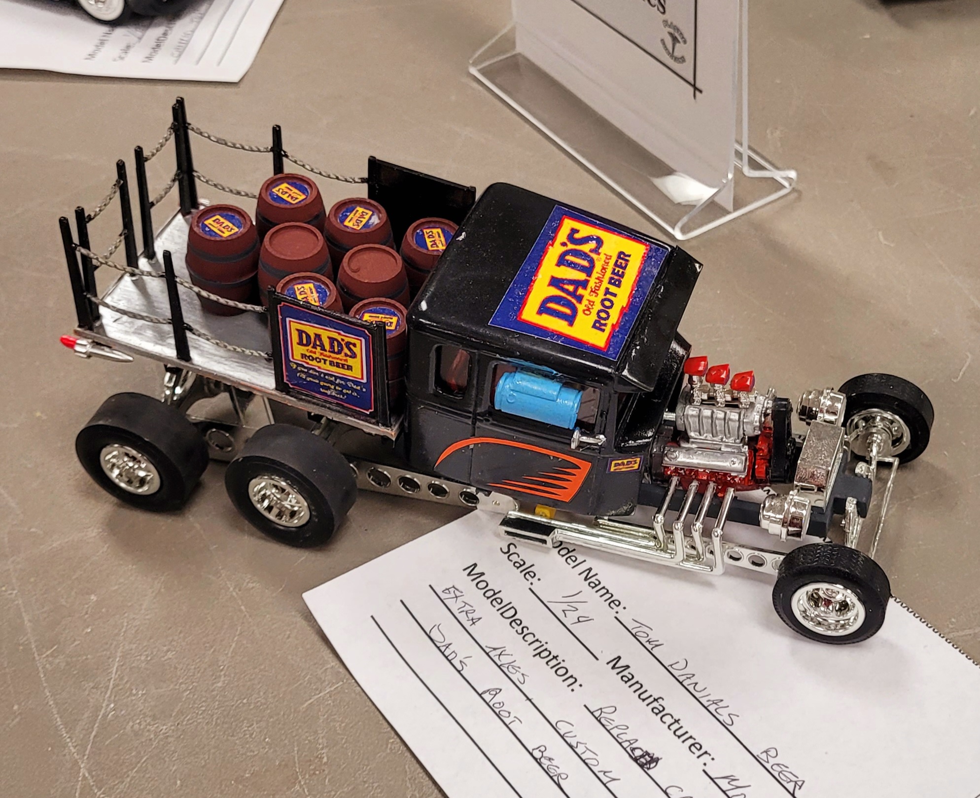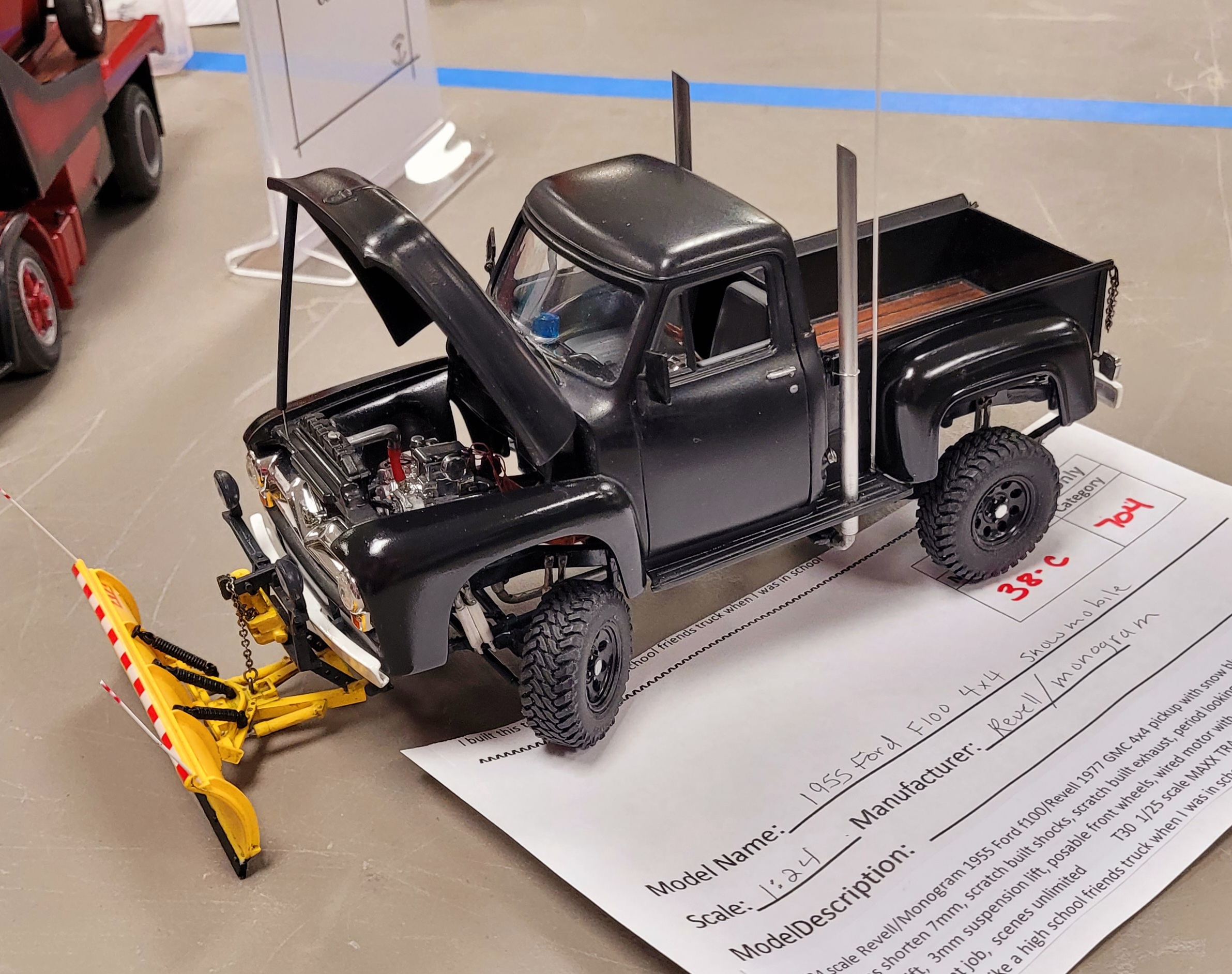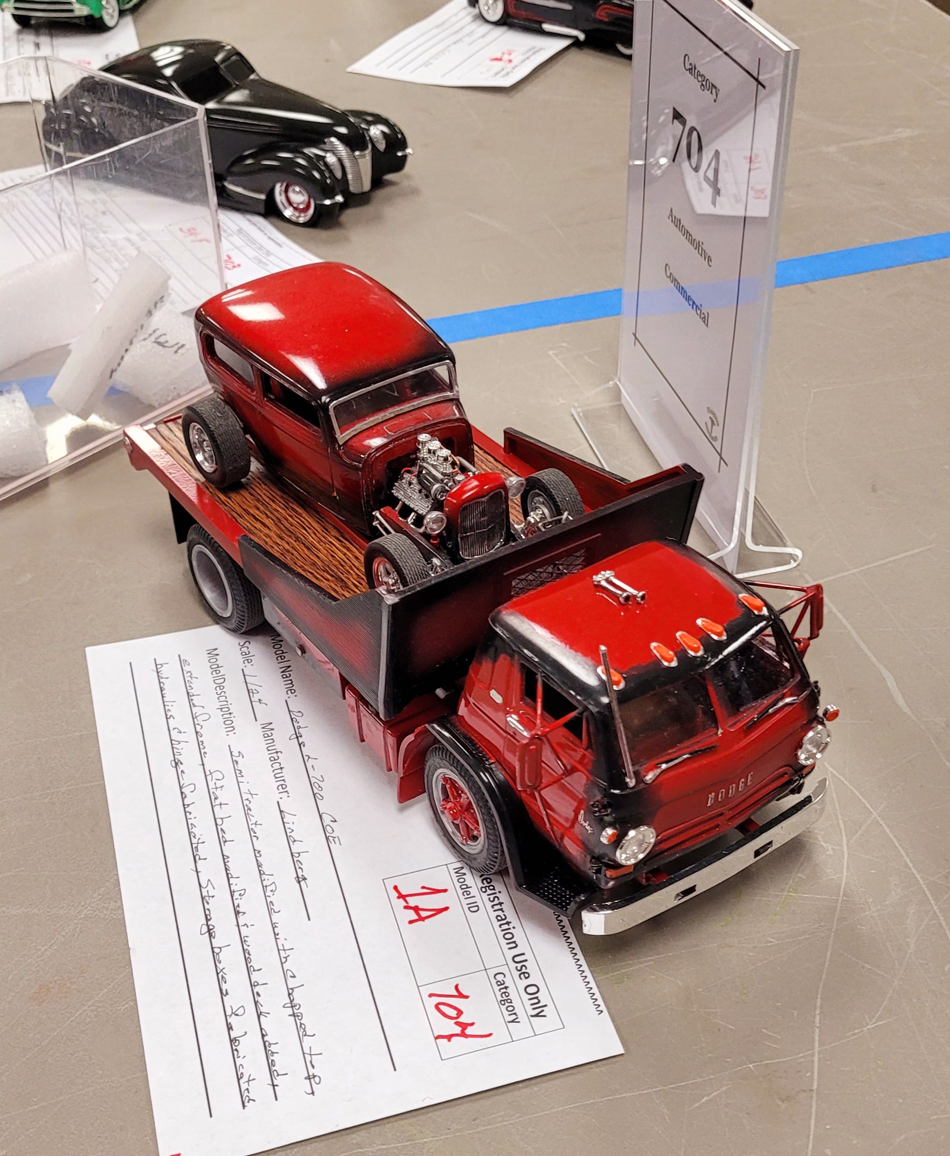 Shortly thereafter an unscheduled thermal event occurs. There wasn't an actual fire, but the smoke from his box alerted Ron to the effects of pilot lights on cardboard. One of his car model entries was slightly damaged by heat and smoke. The box was quickly moved and extinguished before the fire suppression system could activate. I found this ironic, since Ron had attempted a "Broken pipe-flooded venue" April Fool's joke on Aimee.