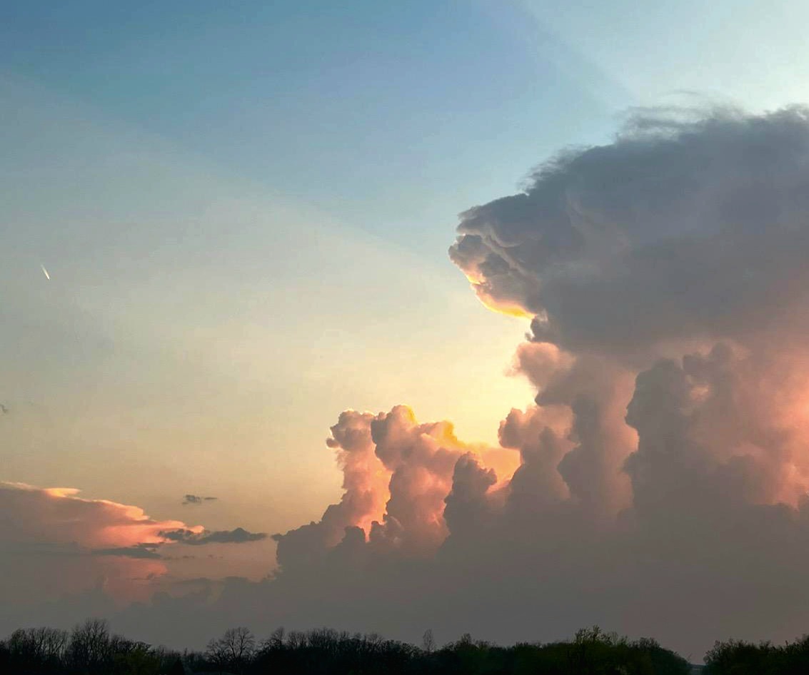 Call sign "Boat tail 712" departs as the rosy fingers of dawn creep into the windy morning sky.