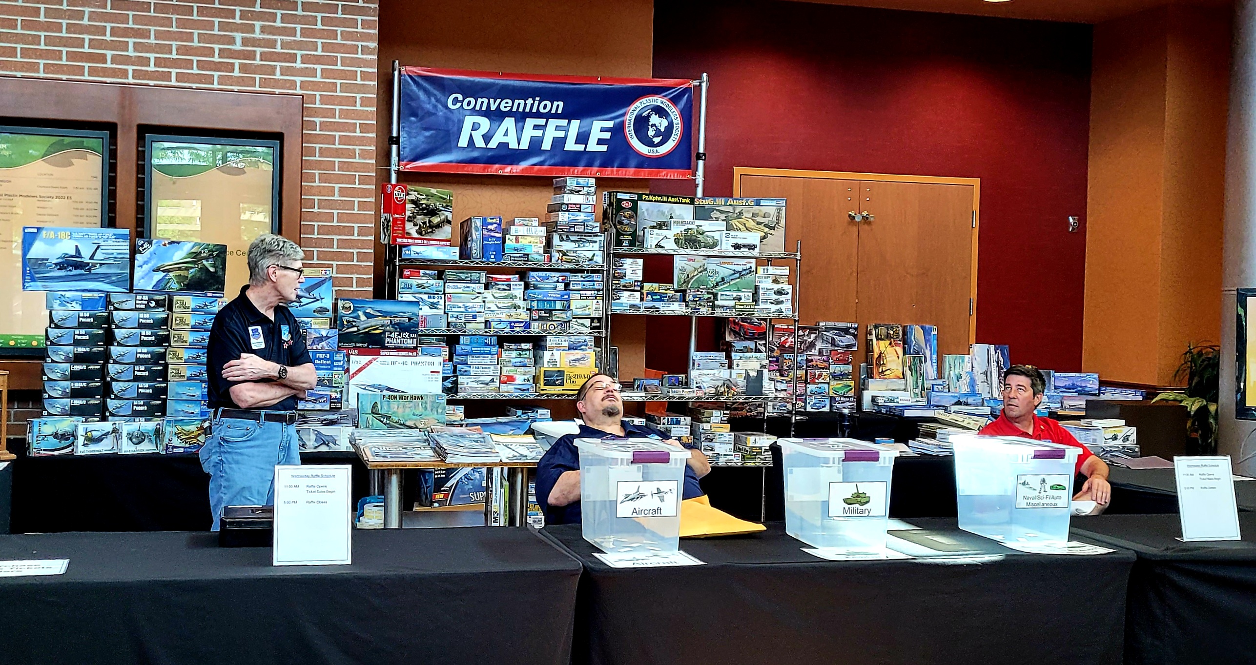 Raffle tickets are being sold but no drawings will occur until Thursday. Patience, Raffle Vultures! Not much happens before 1300 on Day One.