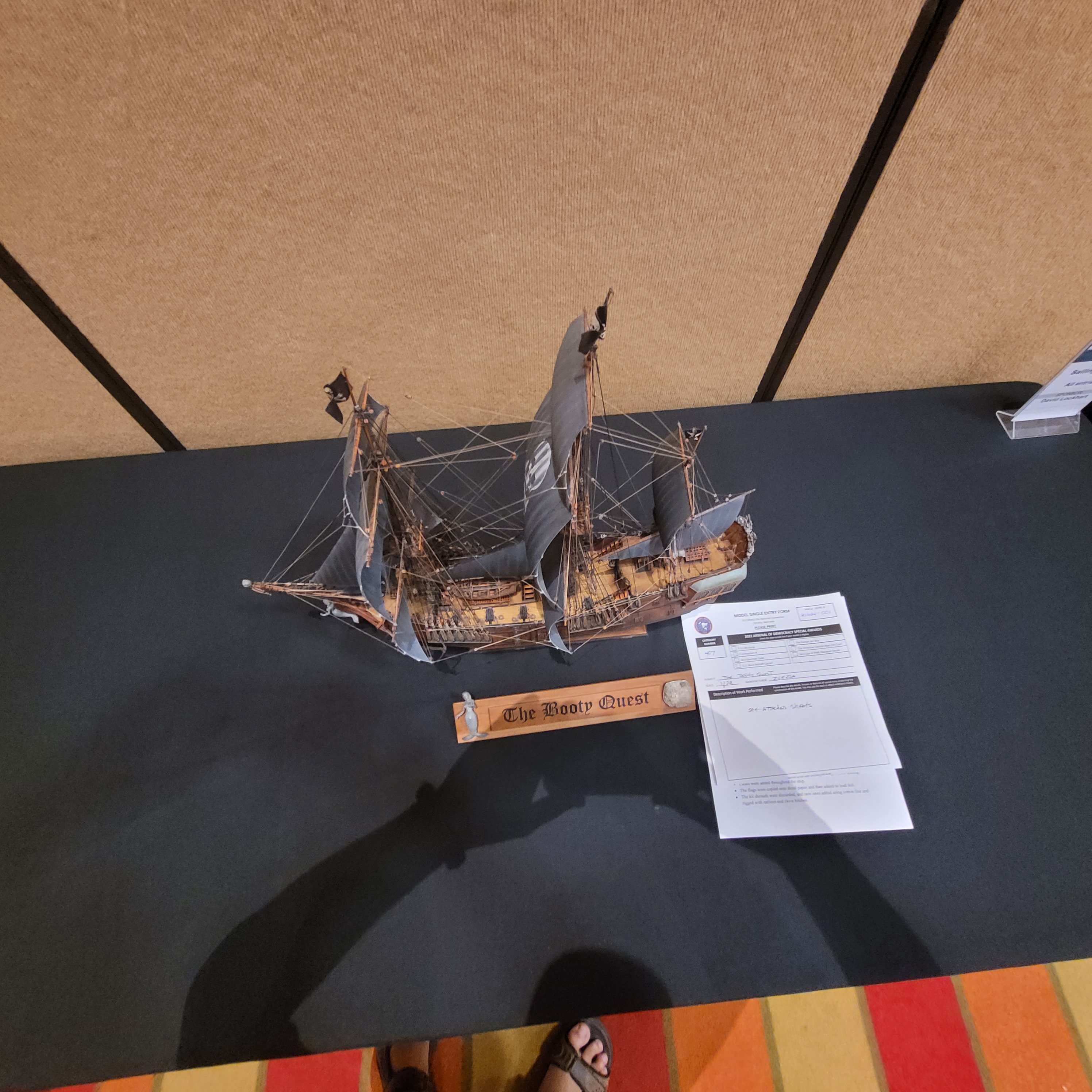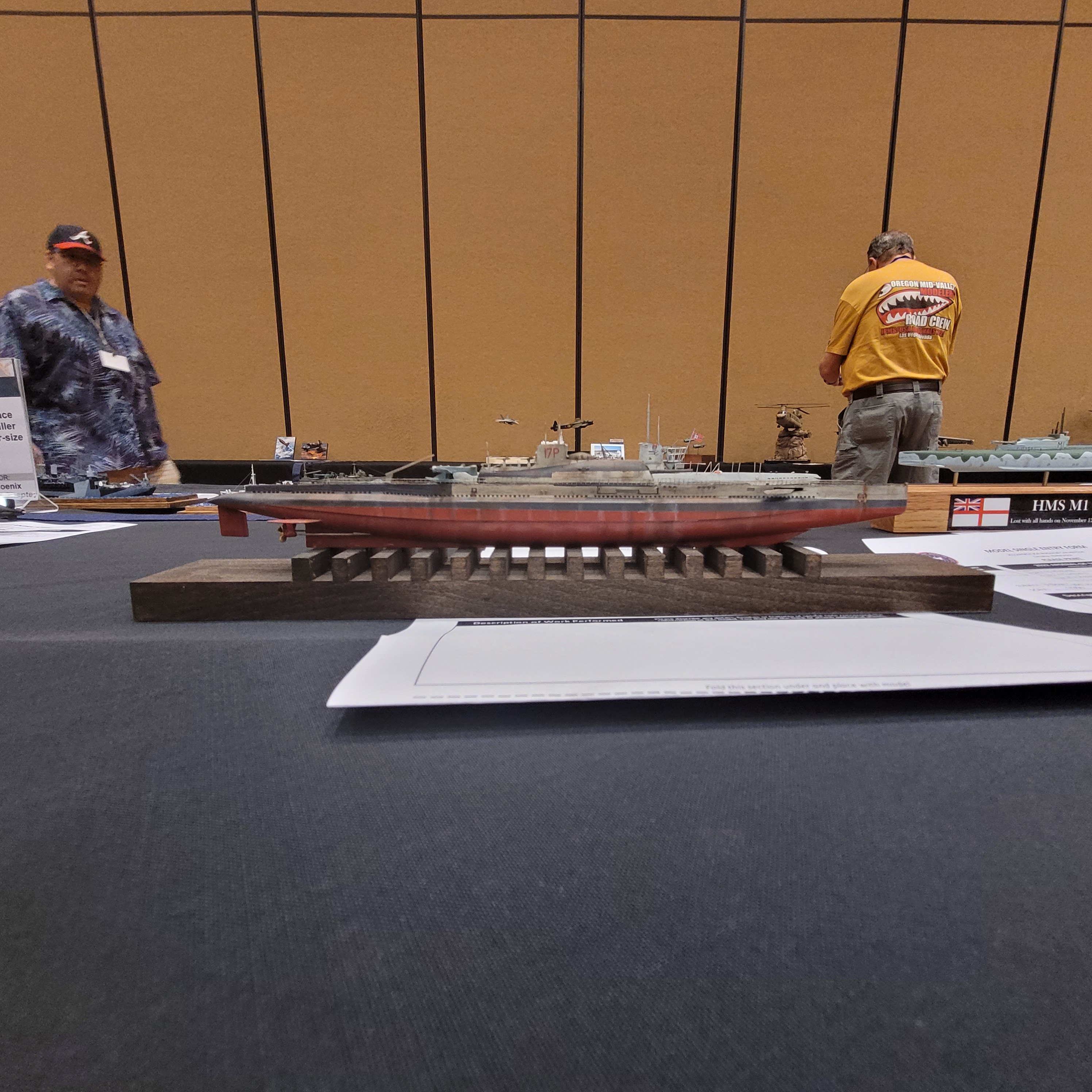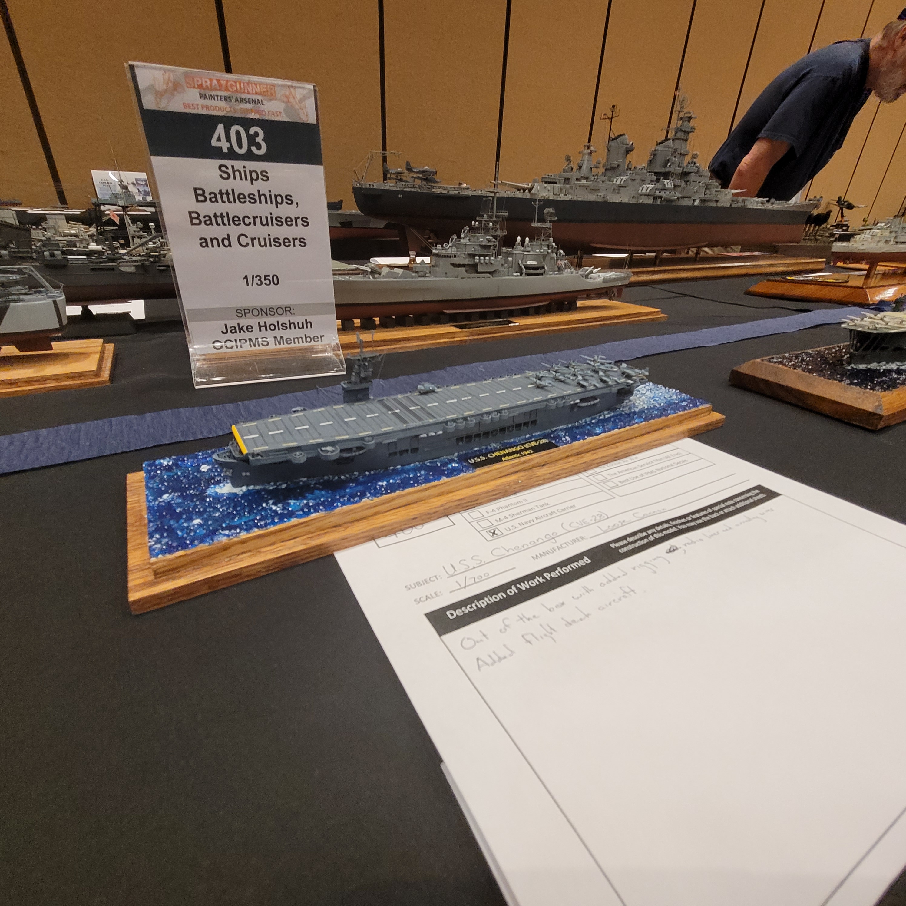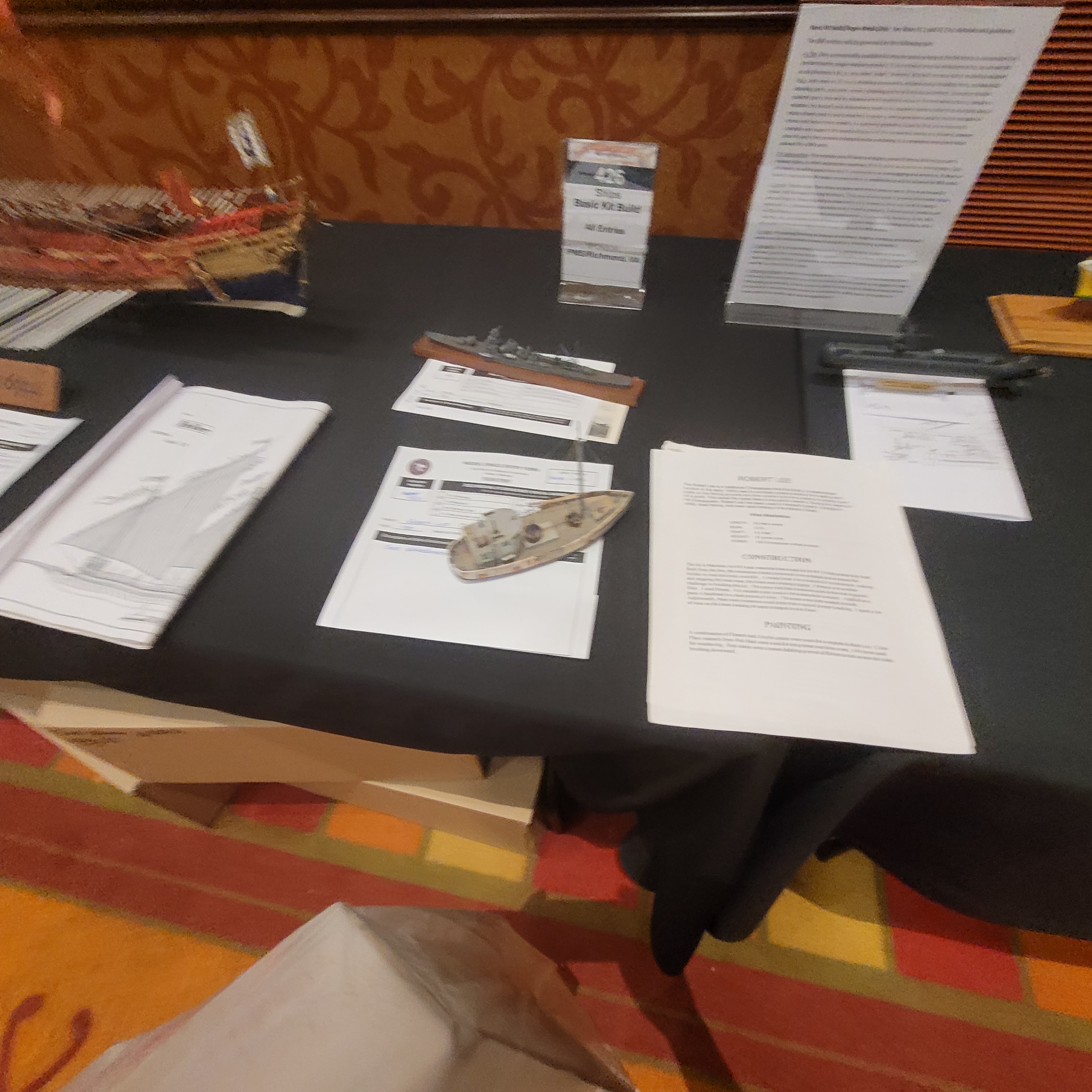 The Model Room DAY One. "Smile Richard! You're going to famous!" Richard Sliwka is laying out his 20 model ship entries.