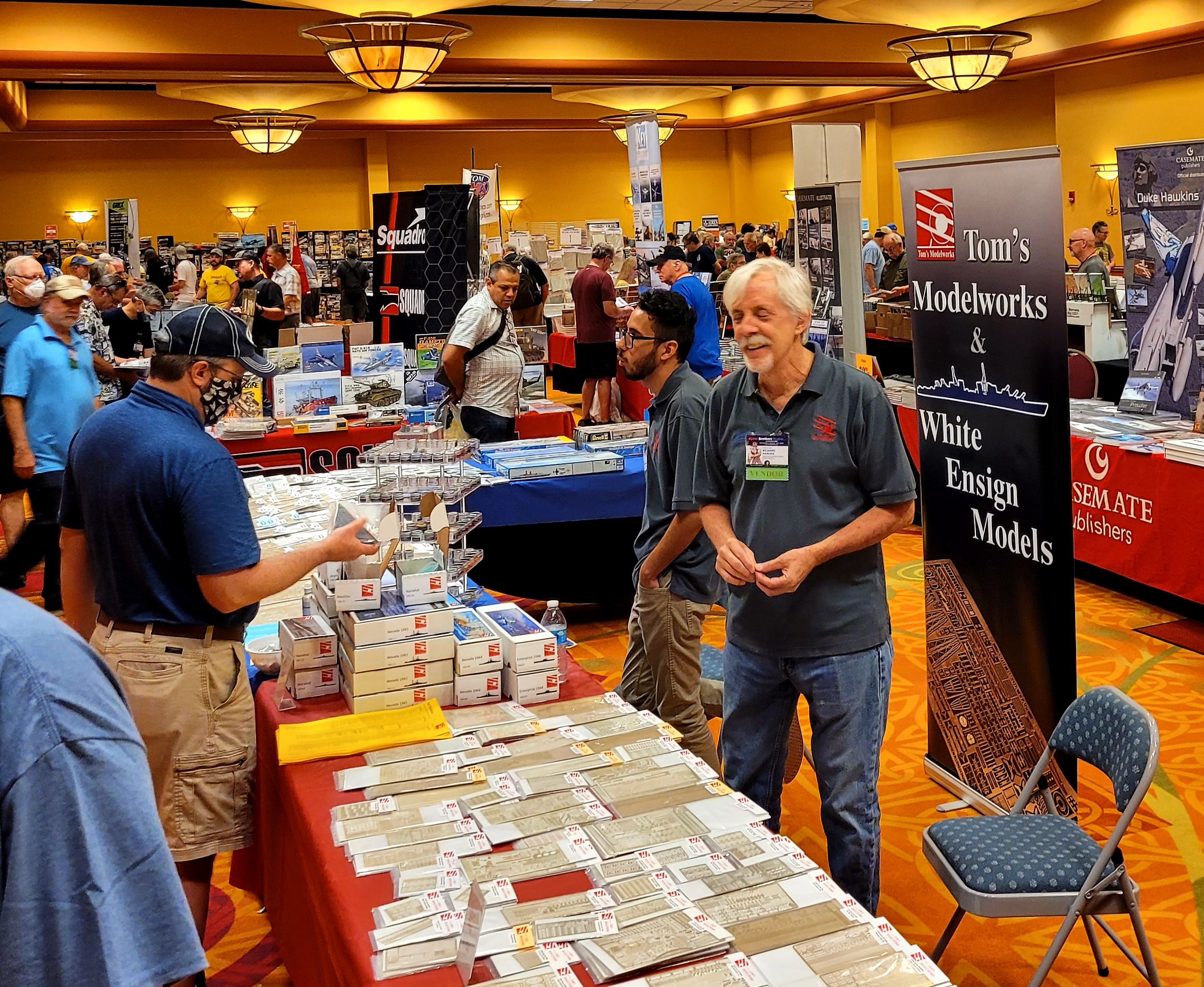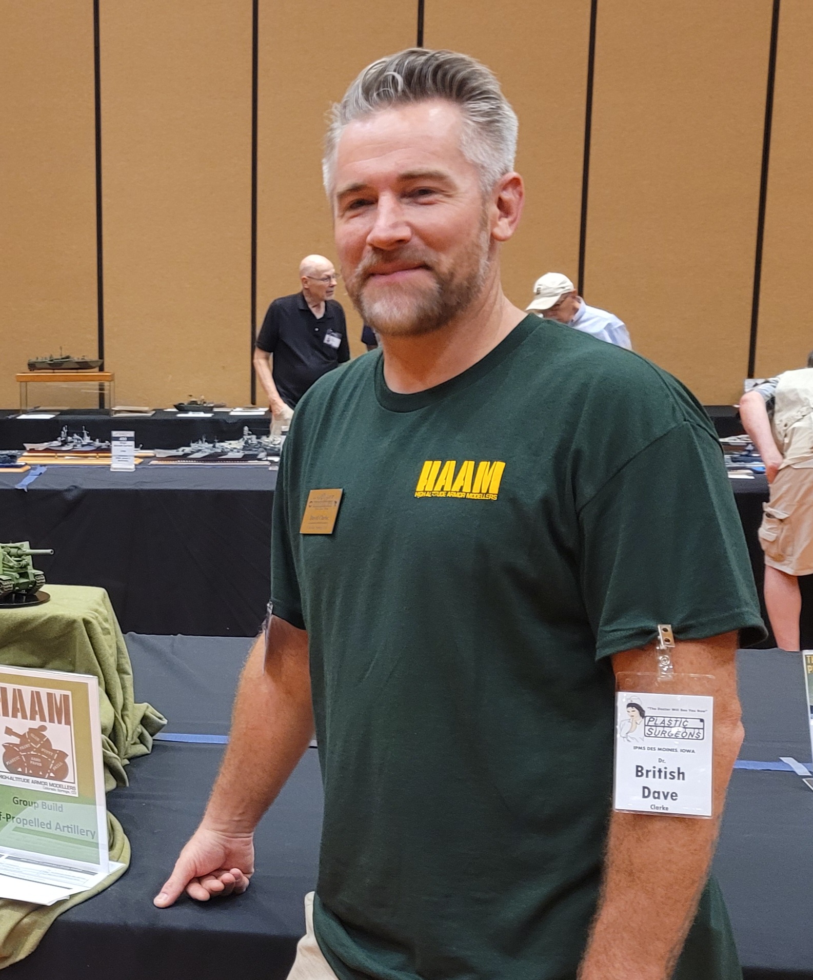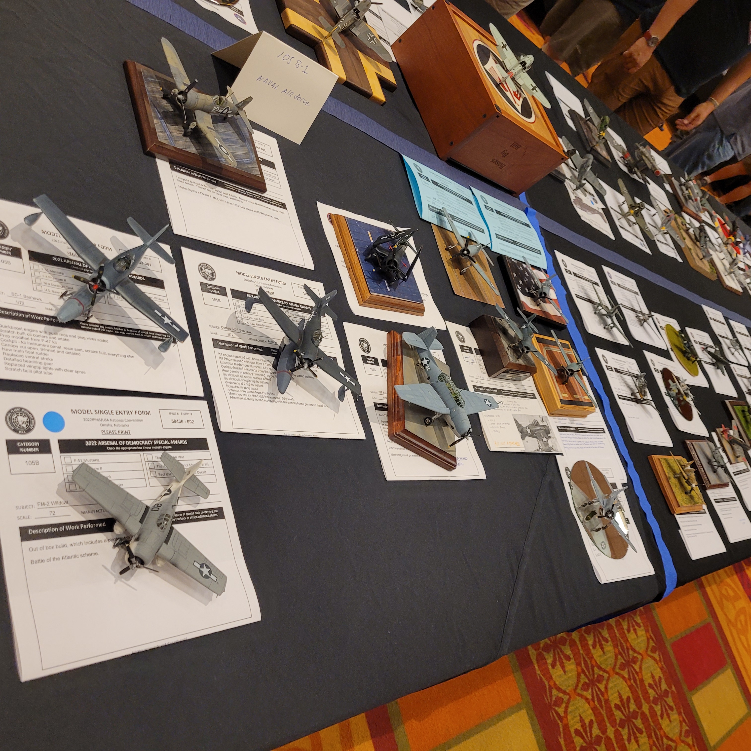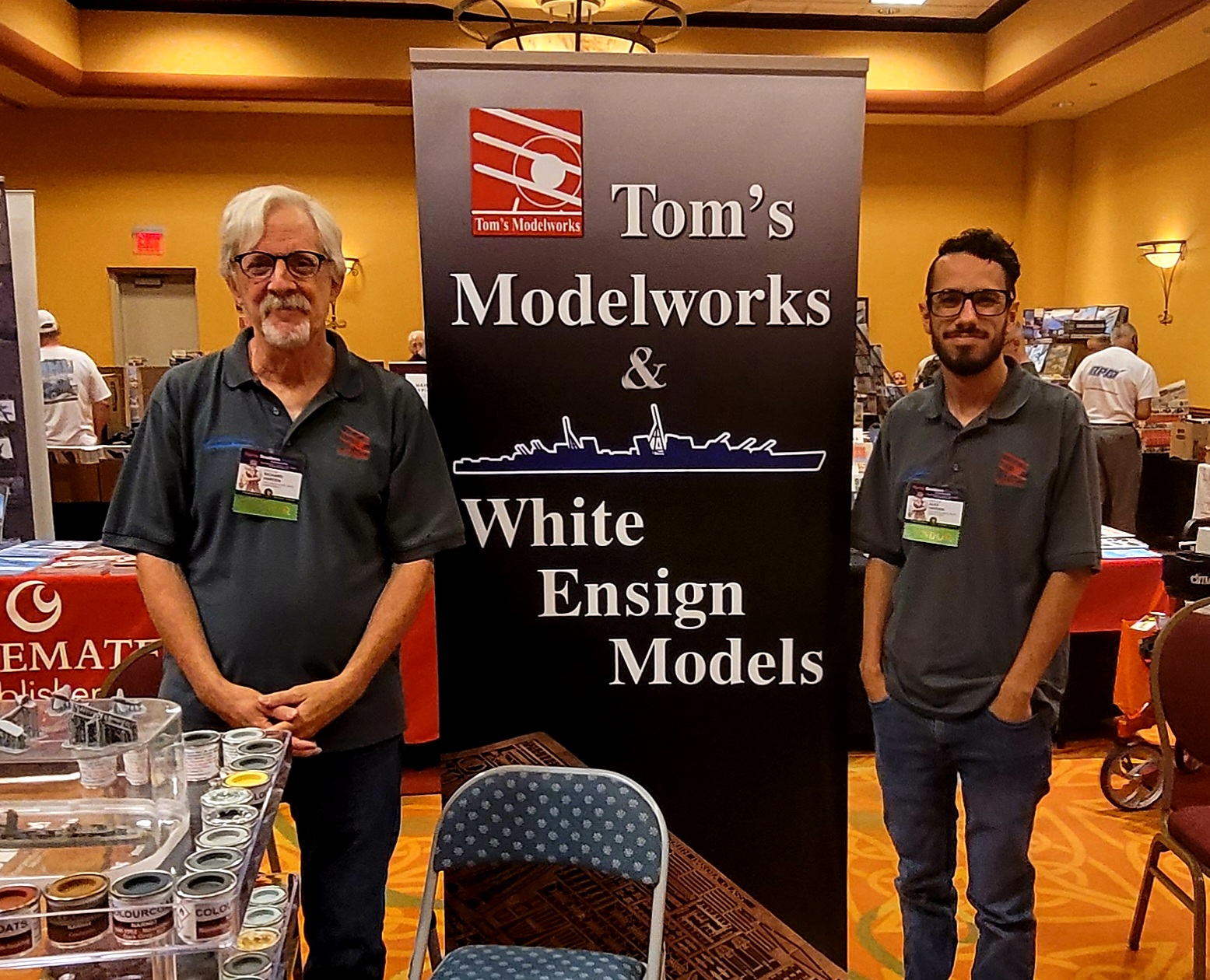 The Model Room DAY One. "Smile Richard! You're going to famous!" Richard Sliwka is laying out his 20 model ship entries.
