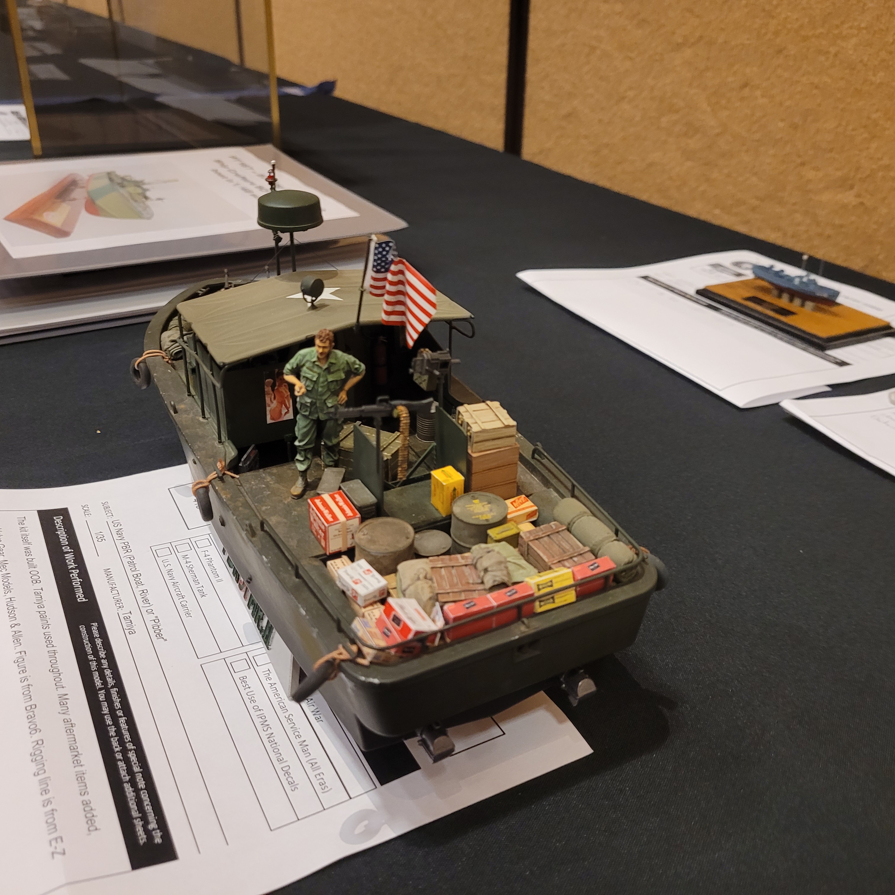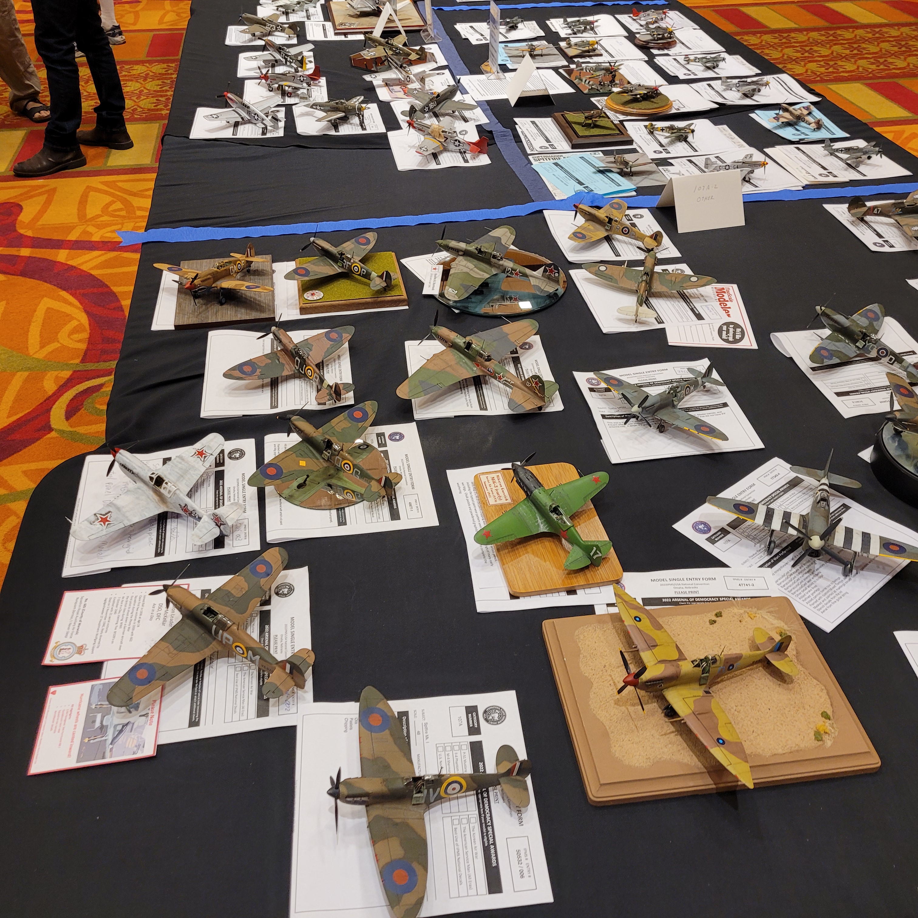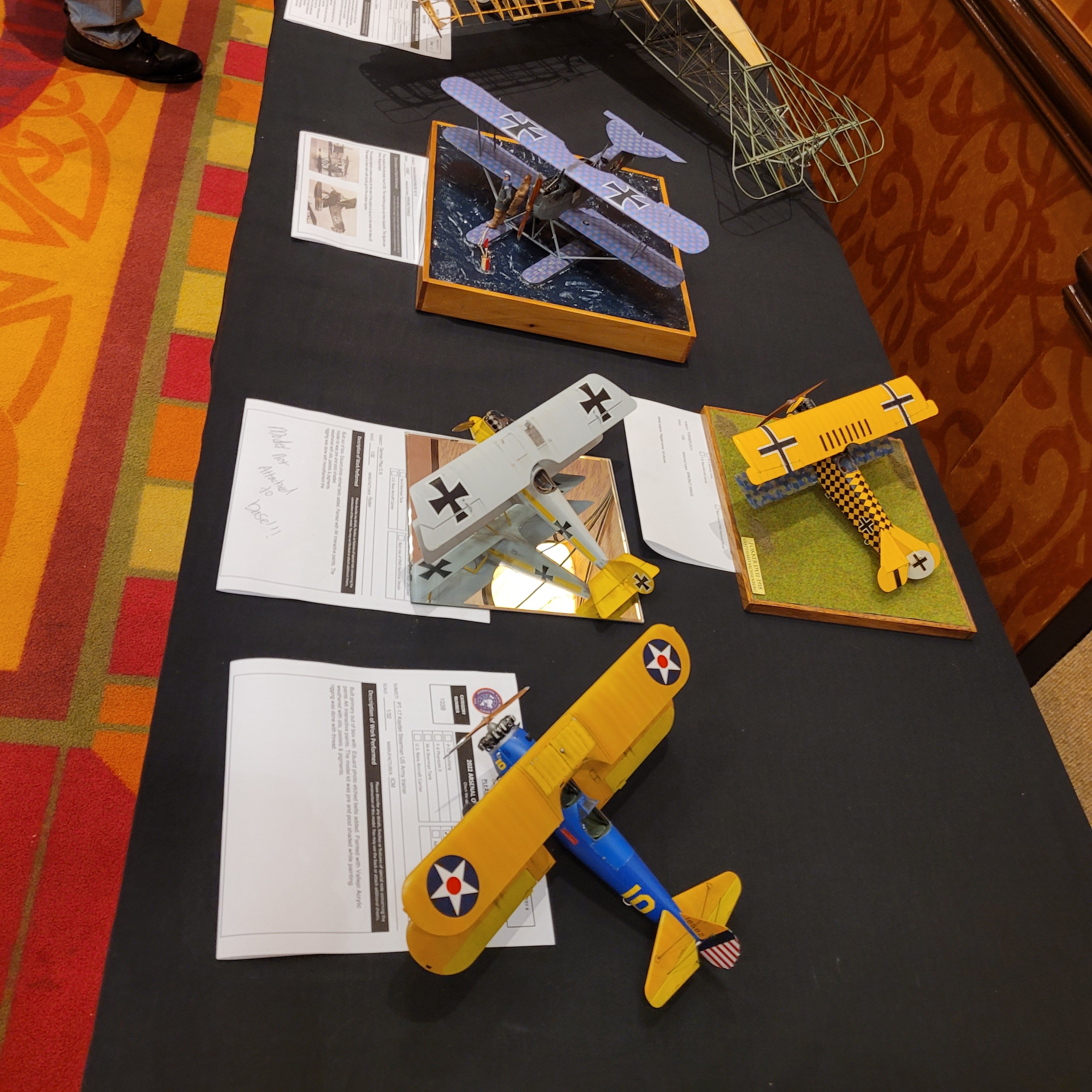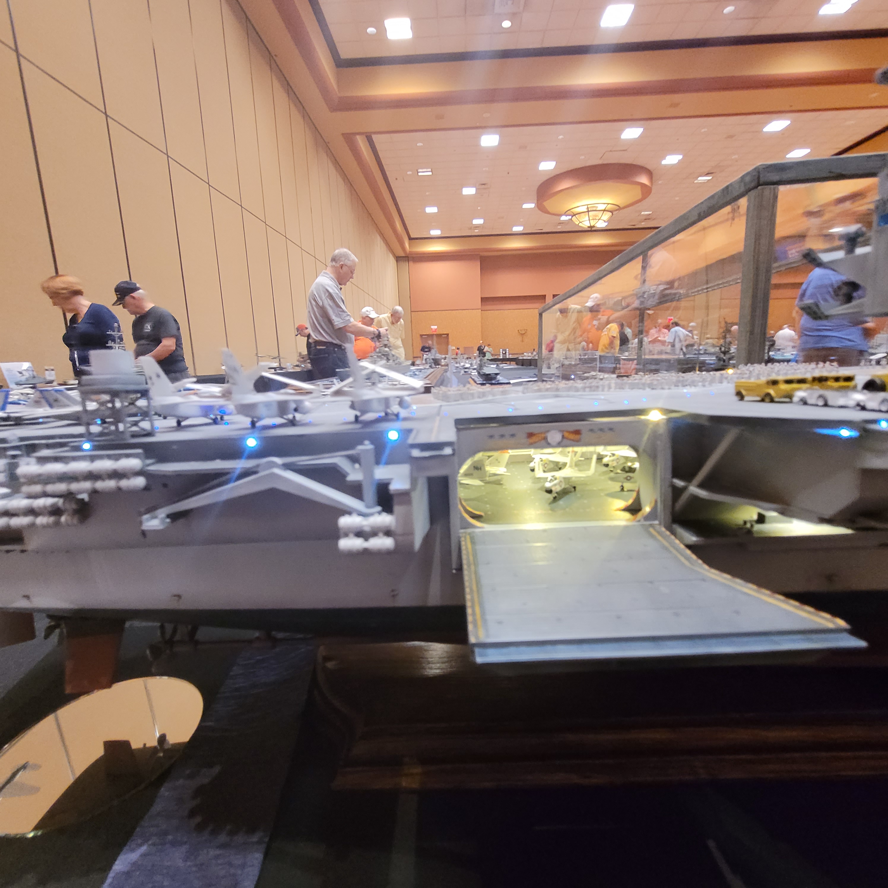 The Model Room DAY One. "Smile Richard! You're going to famous!" Richard Sliwka is laying out his 20 model ship entries.