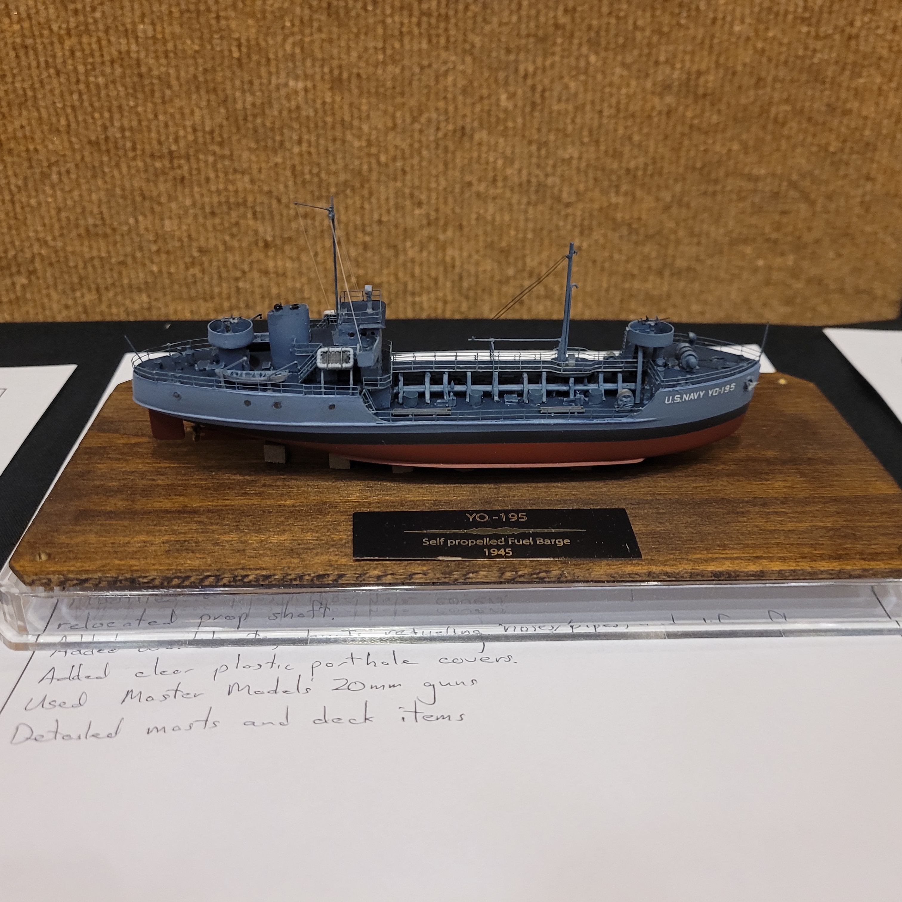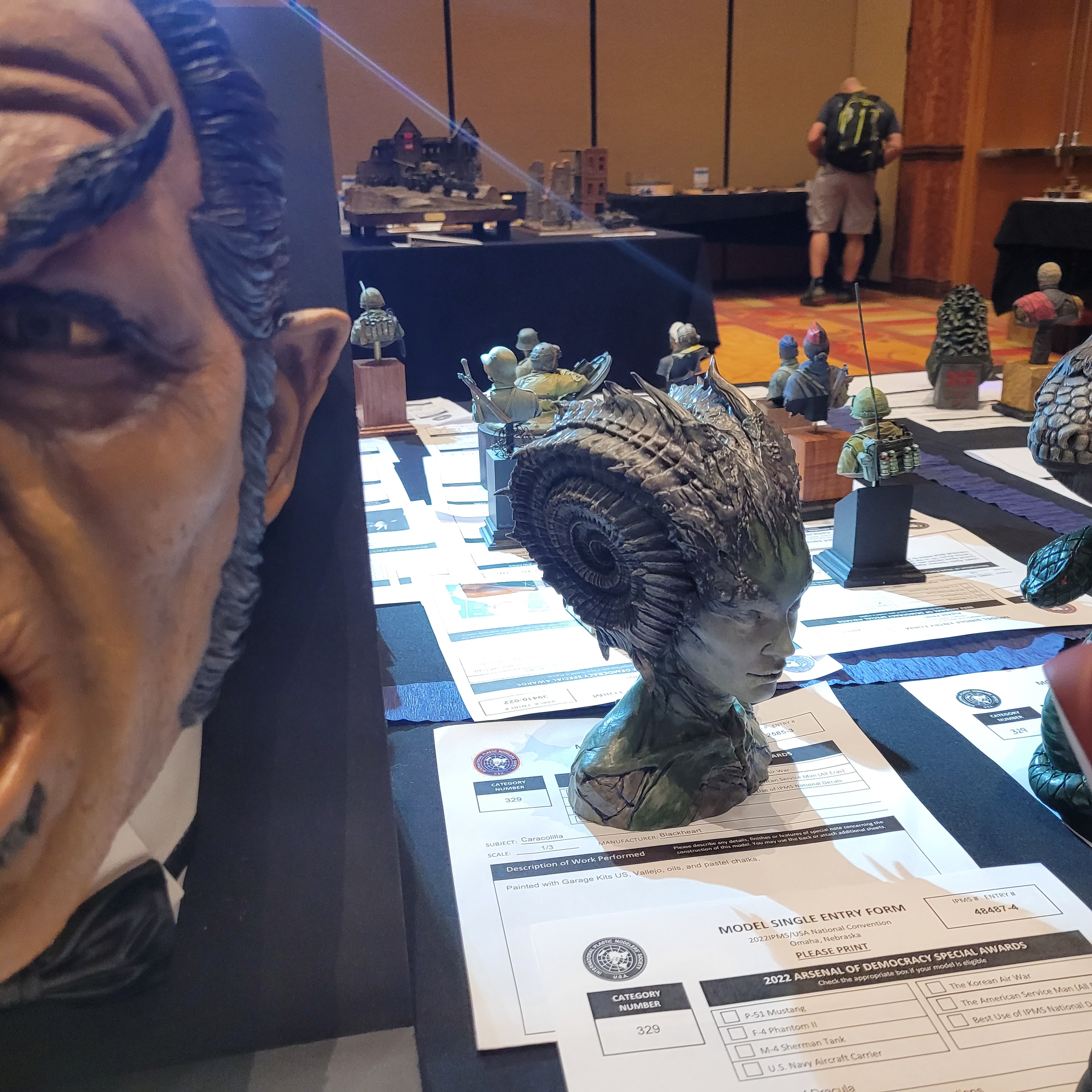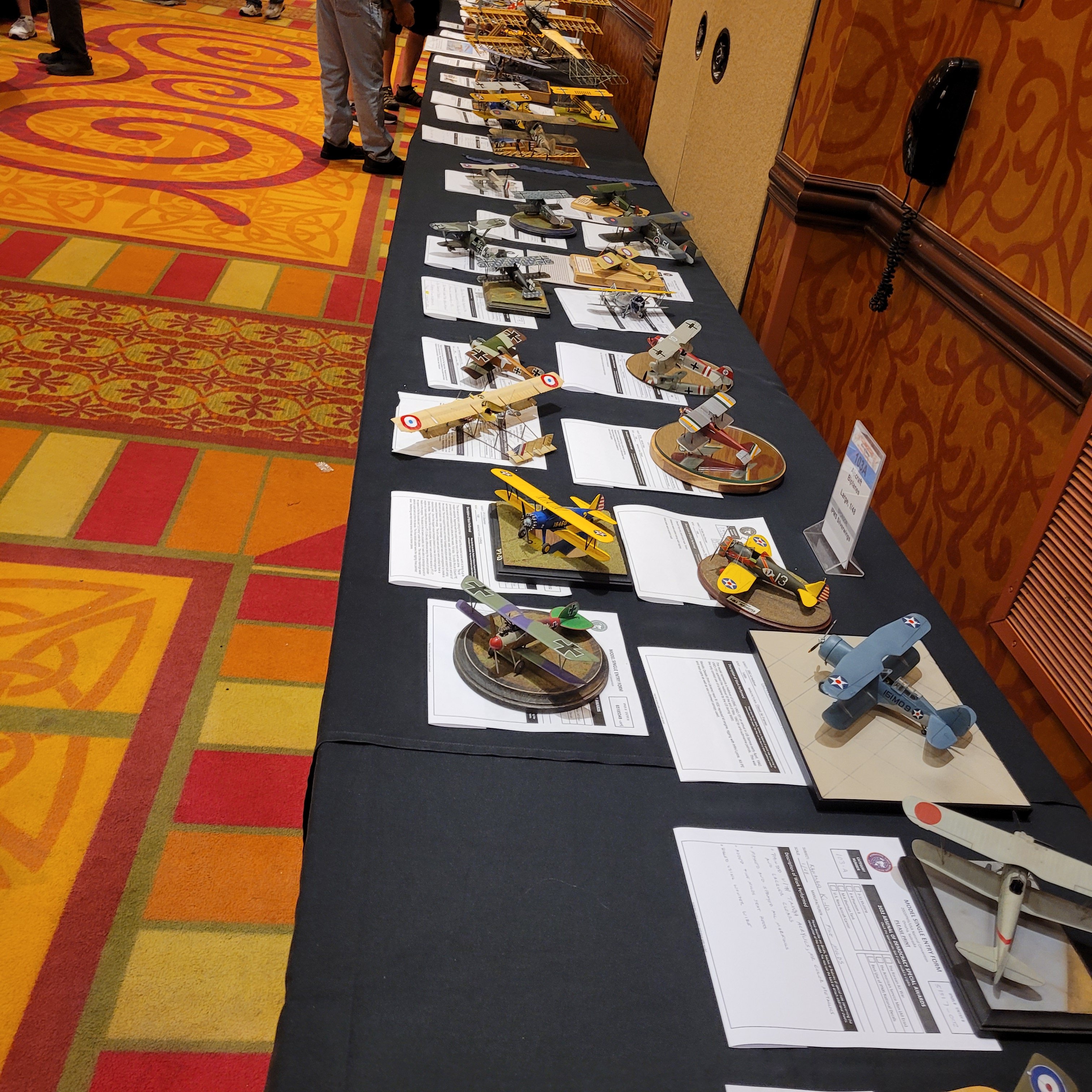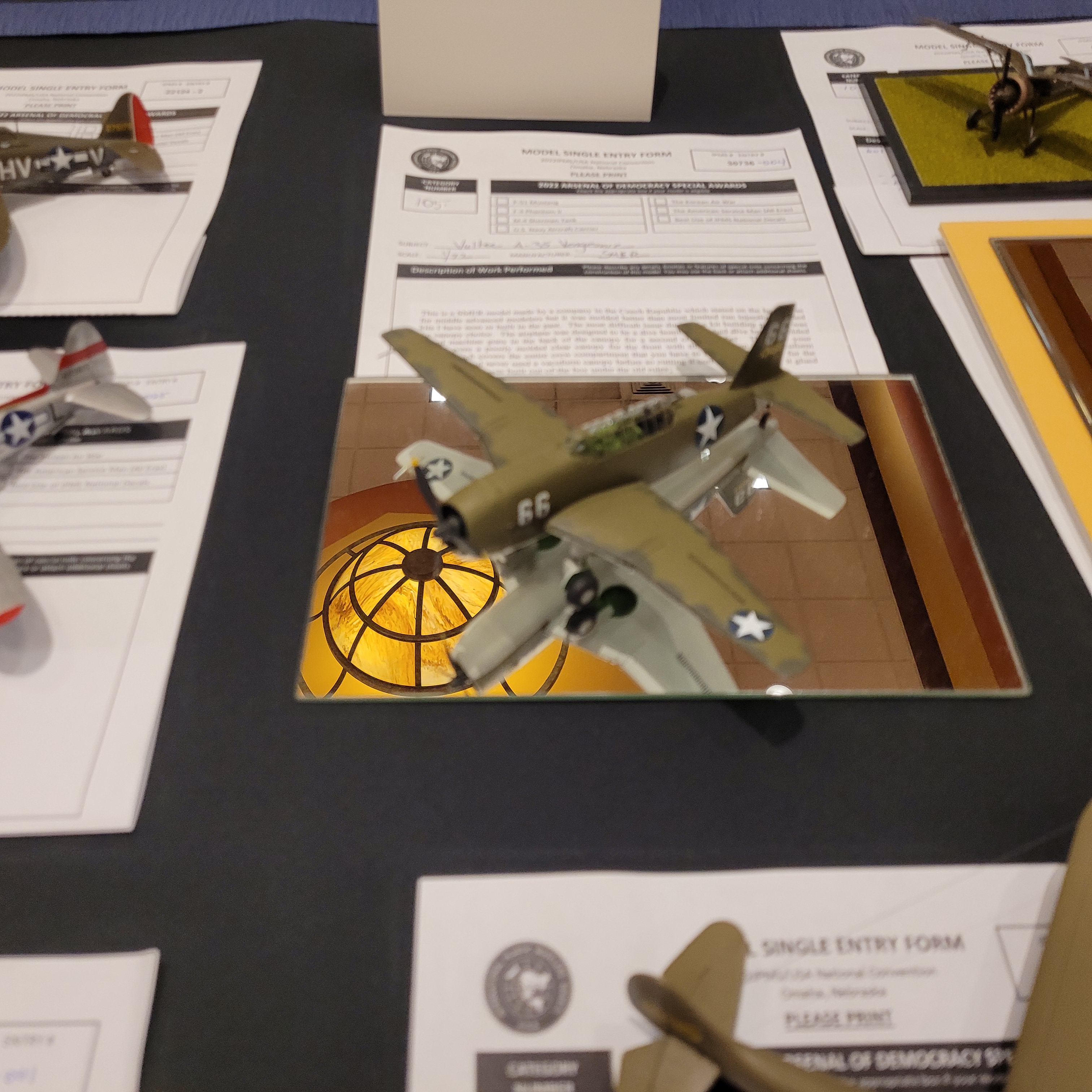 The Model Room DAY One. "Smile Richard! You're going to famous!" Richard Sliwka is laying out his 20 model ship entries.