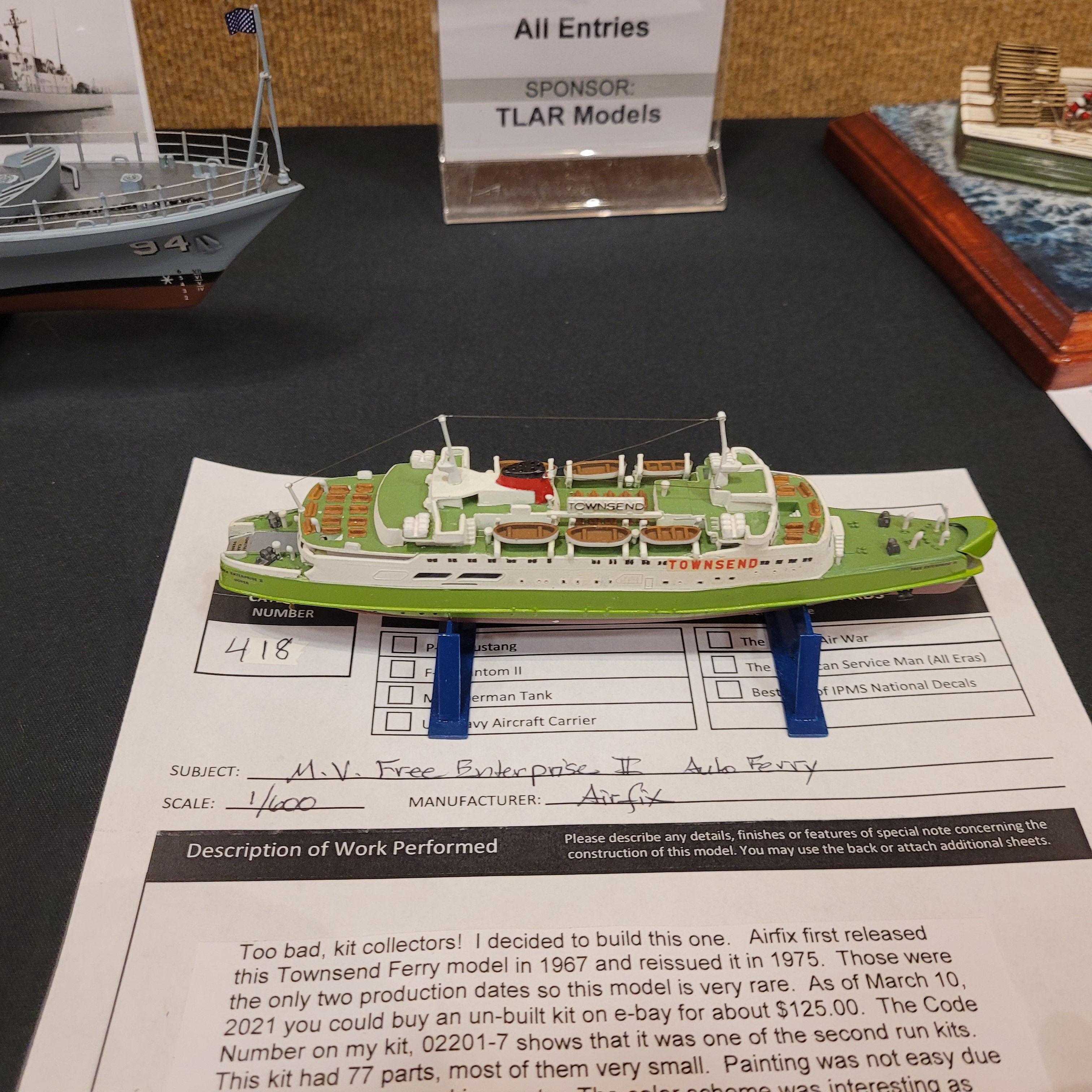 3 Of Richard's model ships occupy space in Convention Category 418 that TLAR Models sponsored this year.