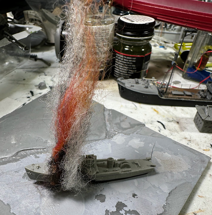 See here, 1/700 US Navy YMS-304 as she is hit by an acoustic mine off UTAH Beach, 30 July 1944. My YMS-1 Mold was holding air, so I had several castings with big cavities in their waterlines. A bit of mold tooling fixed the bubble problem. The in-progress, mined 1/700 YMS model is posed on one of the Masters for the TLAR Models 322 Base.