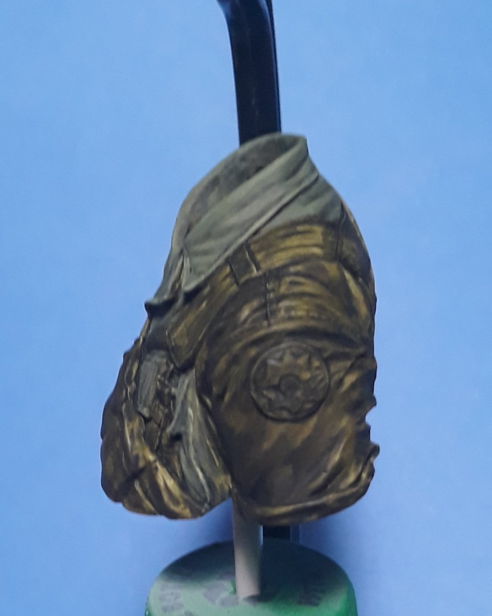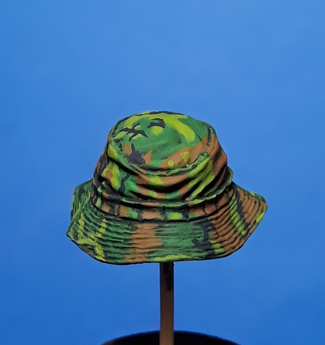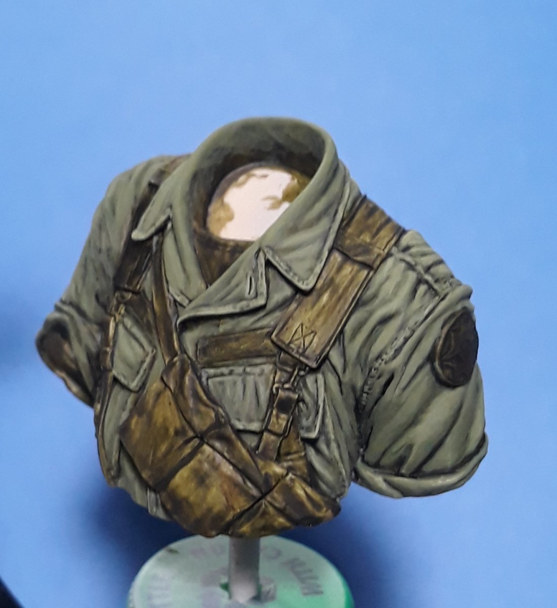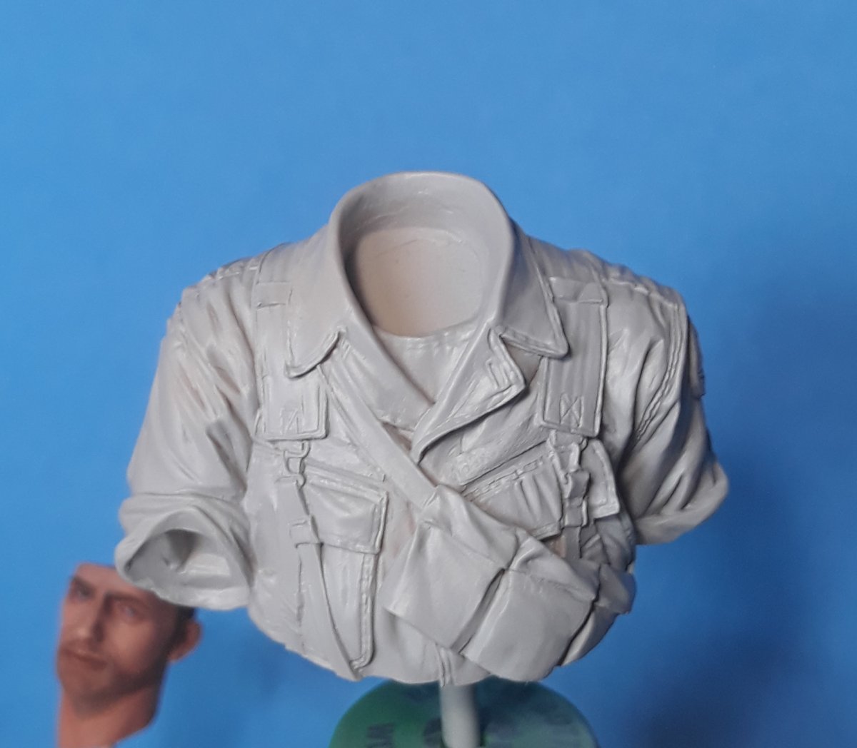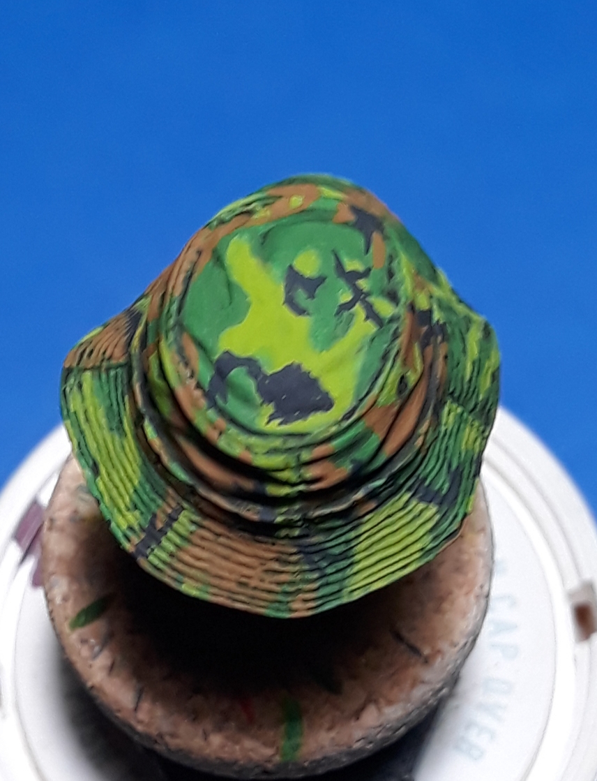 I decided to try out some of Calvin Tan's new face painting techniques that use AK Interactive's QuickGEN and GEN 3 paints. To do so, I am going to slightly convert and paint this bust from Young Miniatures. Instead of him being from the 1st CAV, I am scraping away the 1st CAV patch and will replace it with the 9th Infantry Division patch. I am also replacing the M16 with the M203 grenade launcher with just an M16. The bust does not have any grenade bandoleers nor a grenadier's vest, just a bulge in one of the pockets of the M16 bandoleer that indicates a 40mm grenade, but that is not how a grenadier would have carried his rounds. I am redoing that particular pocket to eliminate that feature.