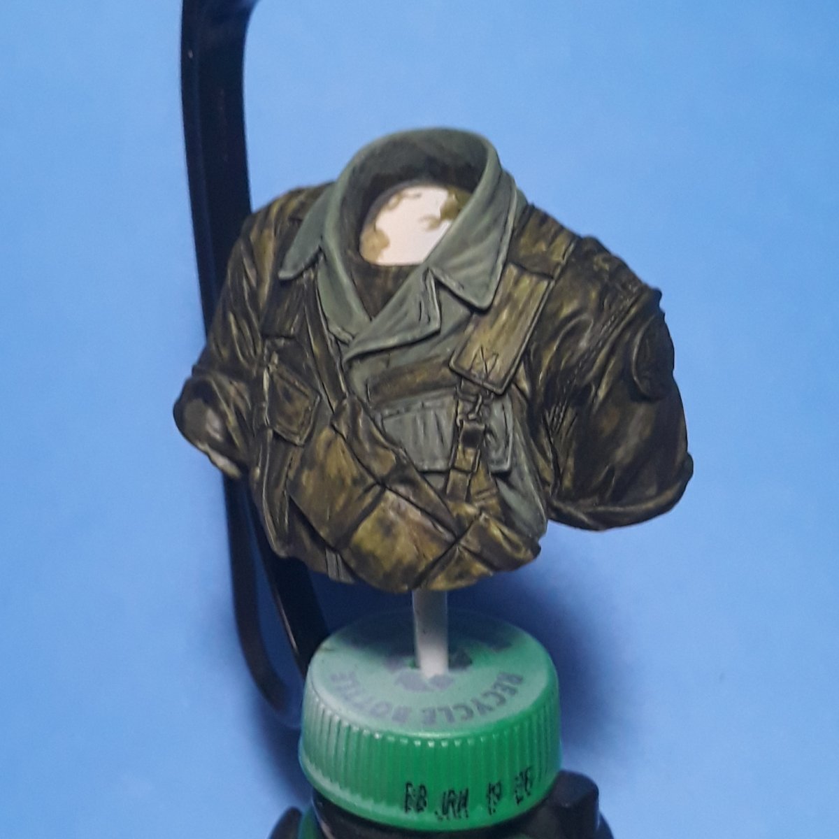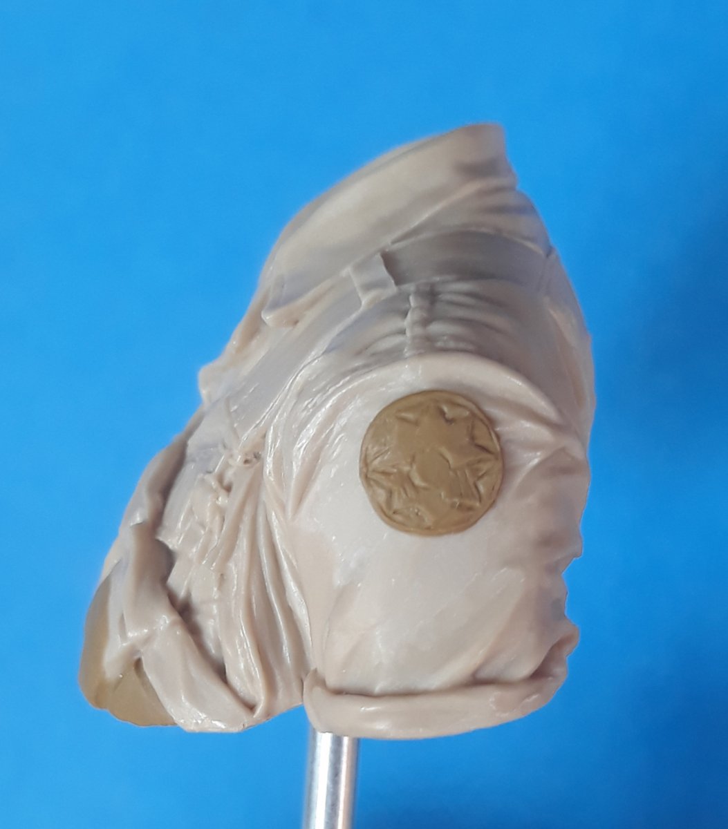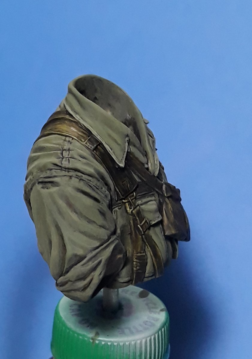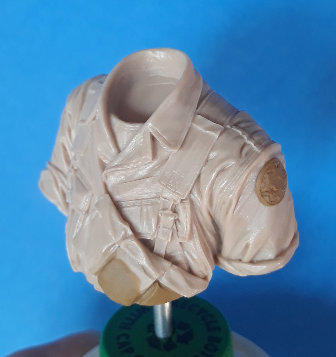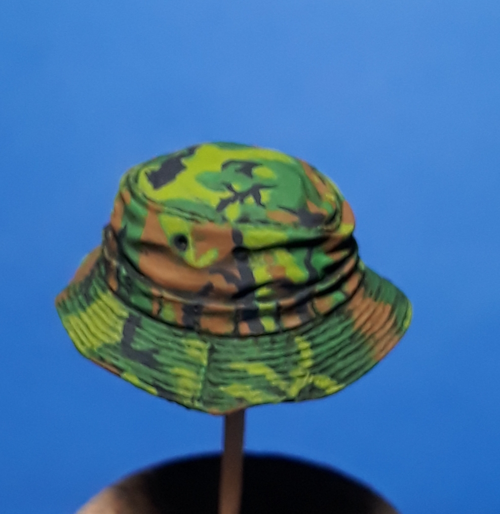 I decided to try out some of Calvin Tan's new face painting techniques that use AK Interactive's QuickGEN and GEN 3 paints. To do so, I am going to slightly convert and paint this bust from Young Miniatures. Instead of him being from the 1st CAV, I am scraping away the 1st CAV patch and will replace it with the 9th Infantry Division patch. I am also replacing the M16 with the M203 grenade launcher with just an M16. The bust does not have any grenade bandoleers nor a grenadier's vest, just a bulge in one of the pockets of the M16 bandoleer that indicates a 40mm grenade, but that is not how a grenadier would have carried his rounds. I am redoing that particular pocket to eliminate that feature.