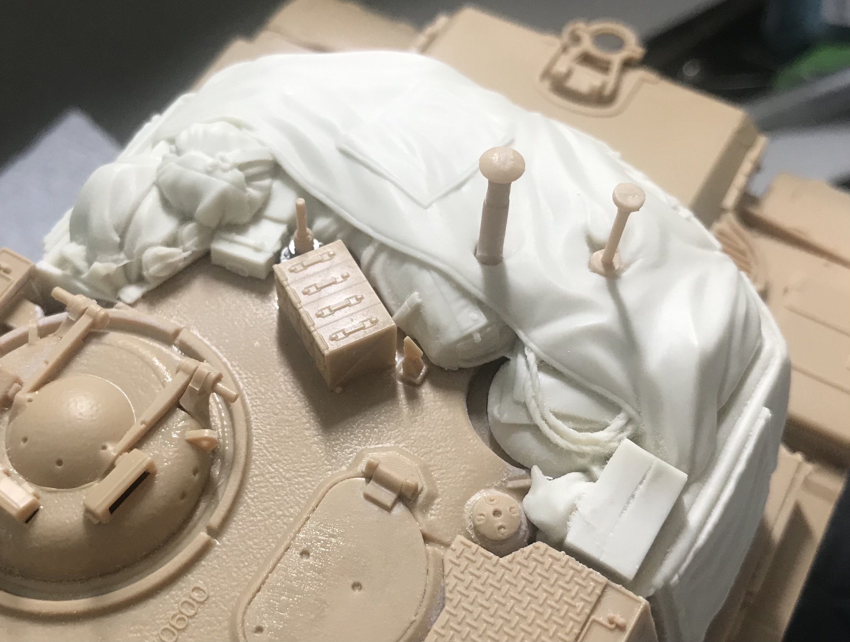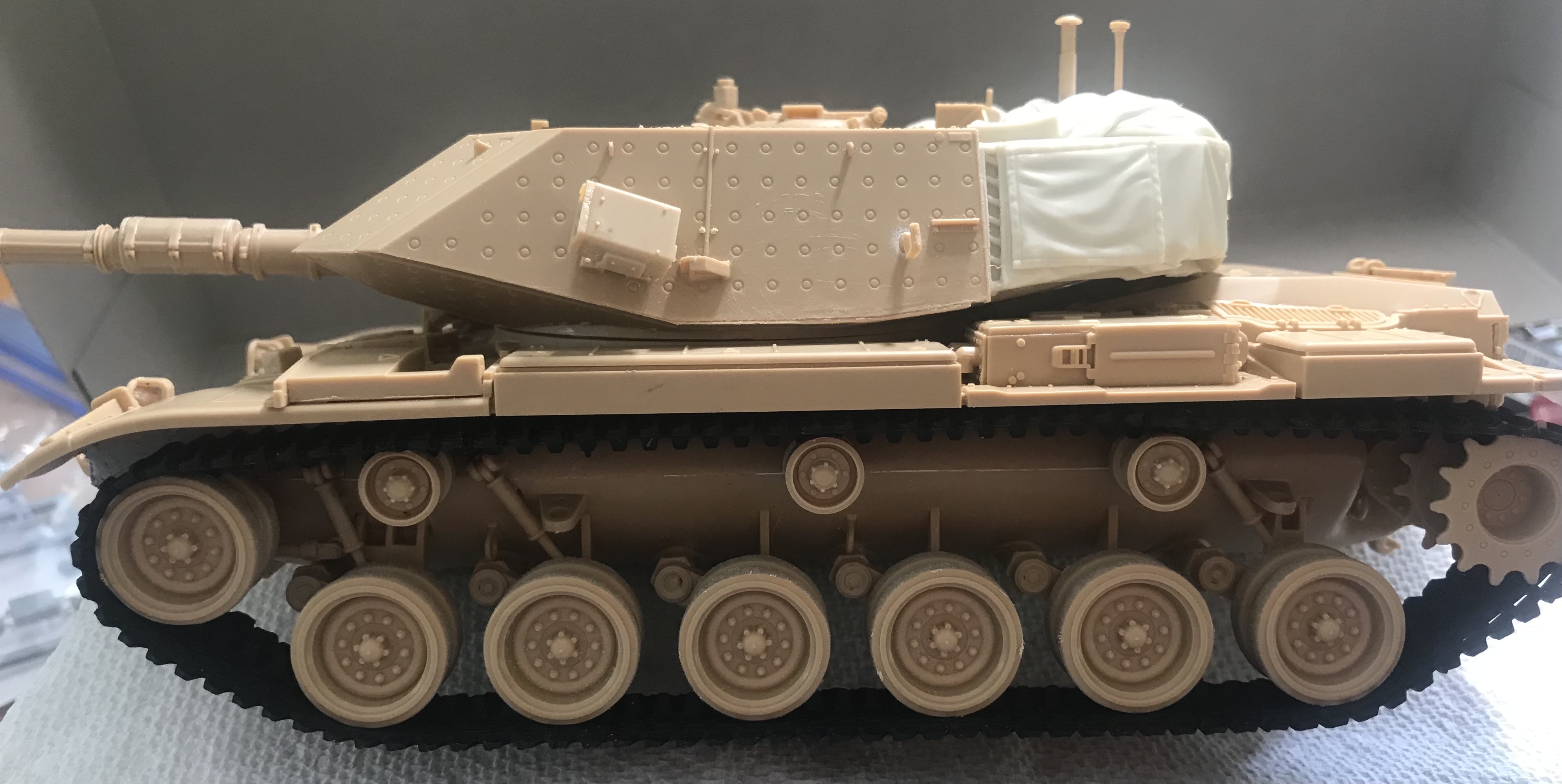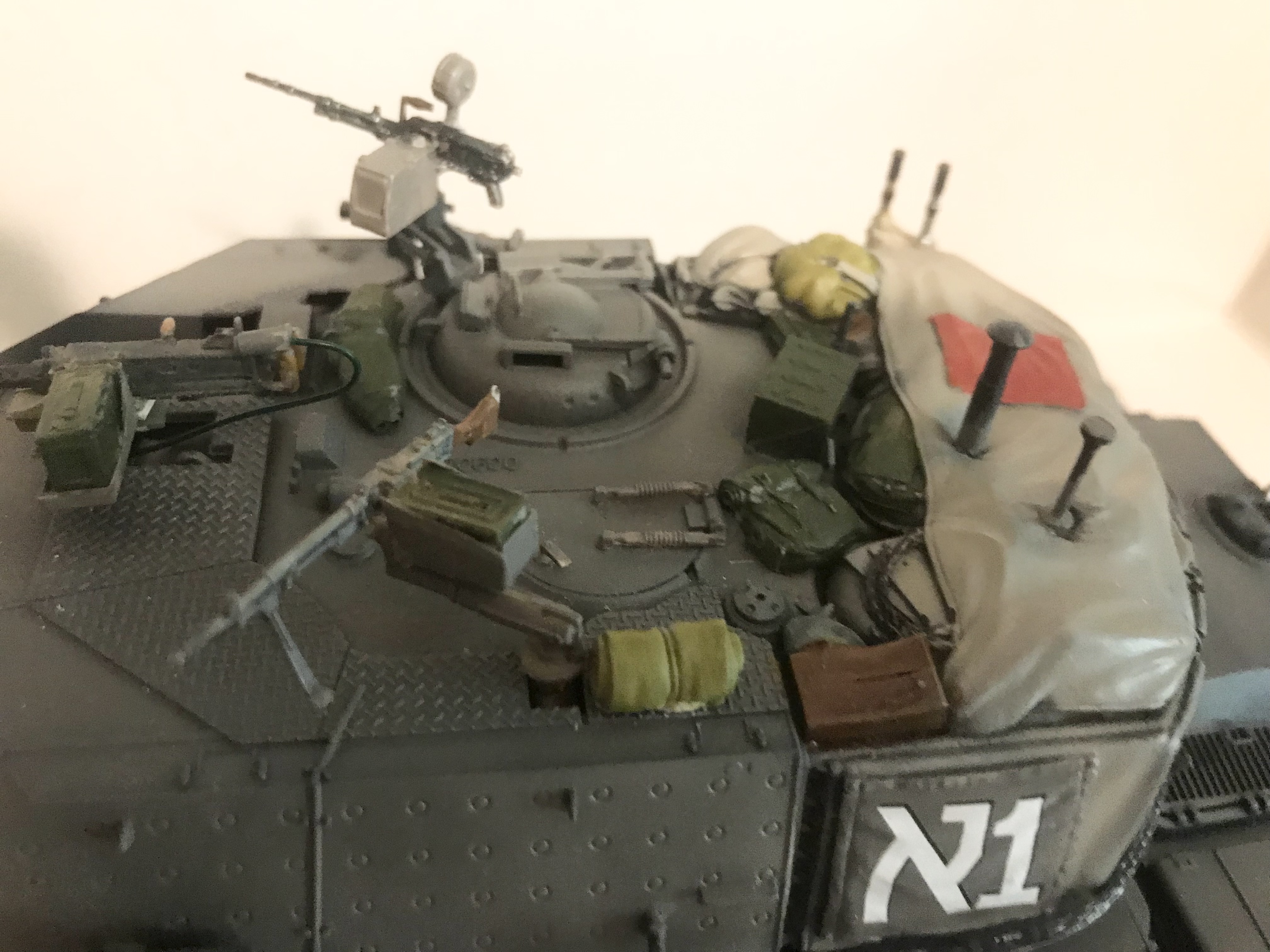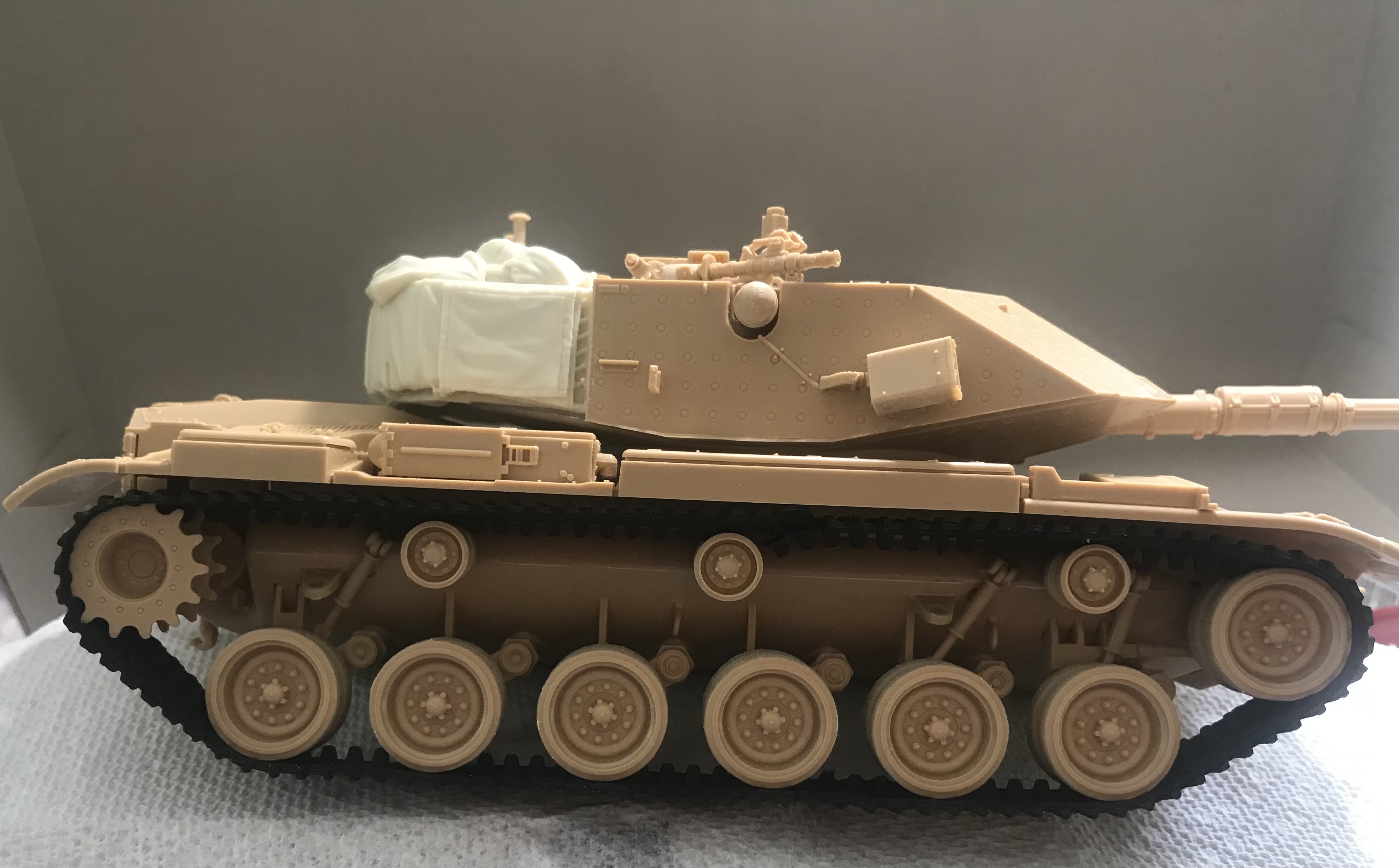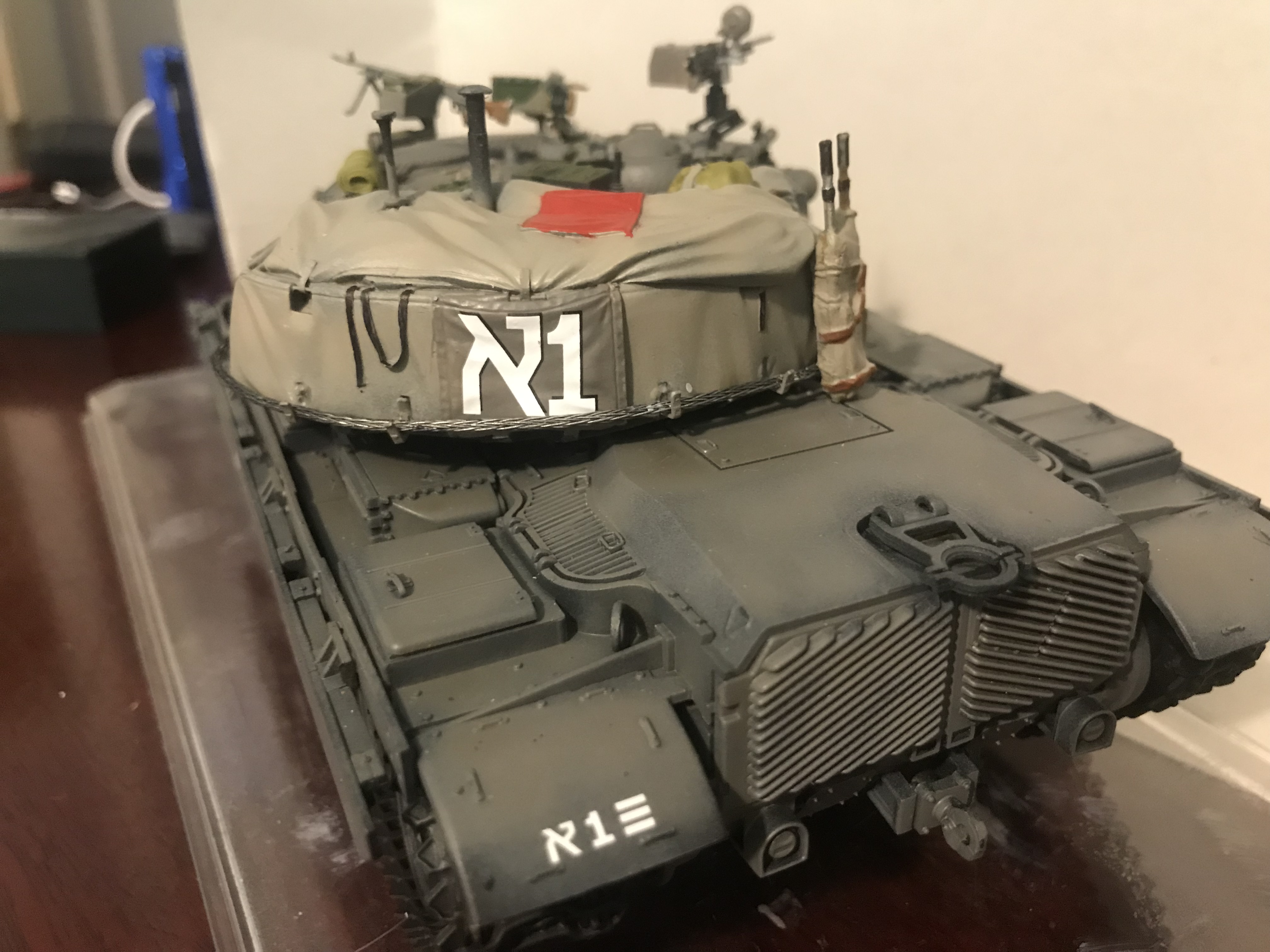So in my continuing quest of “All things Israeli” I started this 1/35 Academy Magach 7C Gimel. Lower hull is pretty much a repeat of the ancient M60. Unlike more expensive kits like Meng with their exact fit, many of the 7C parts, while really well molded, have a fit that is in-exact at best, so I had to supplement some styrene sheet as shown. Really coming along nice though. The Legend Resin basket requires a lot of time with your rotary tool, but wow does it ever look great! Just a few bits and bobs to go, and she’ll be ready for prime & paint!