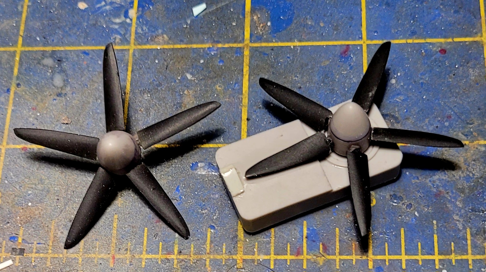 While Carl and I were blabbing last night, I put the Rotol props together. I'm definitely going with the 5-bladed fans!