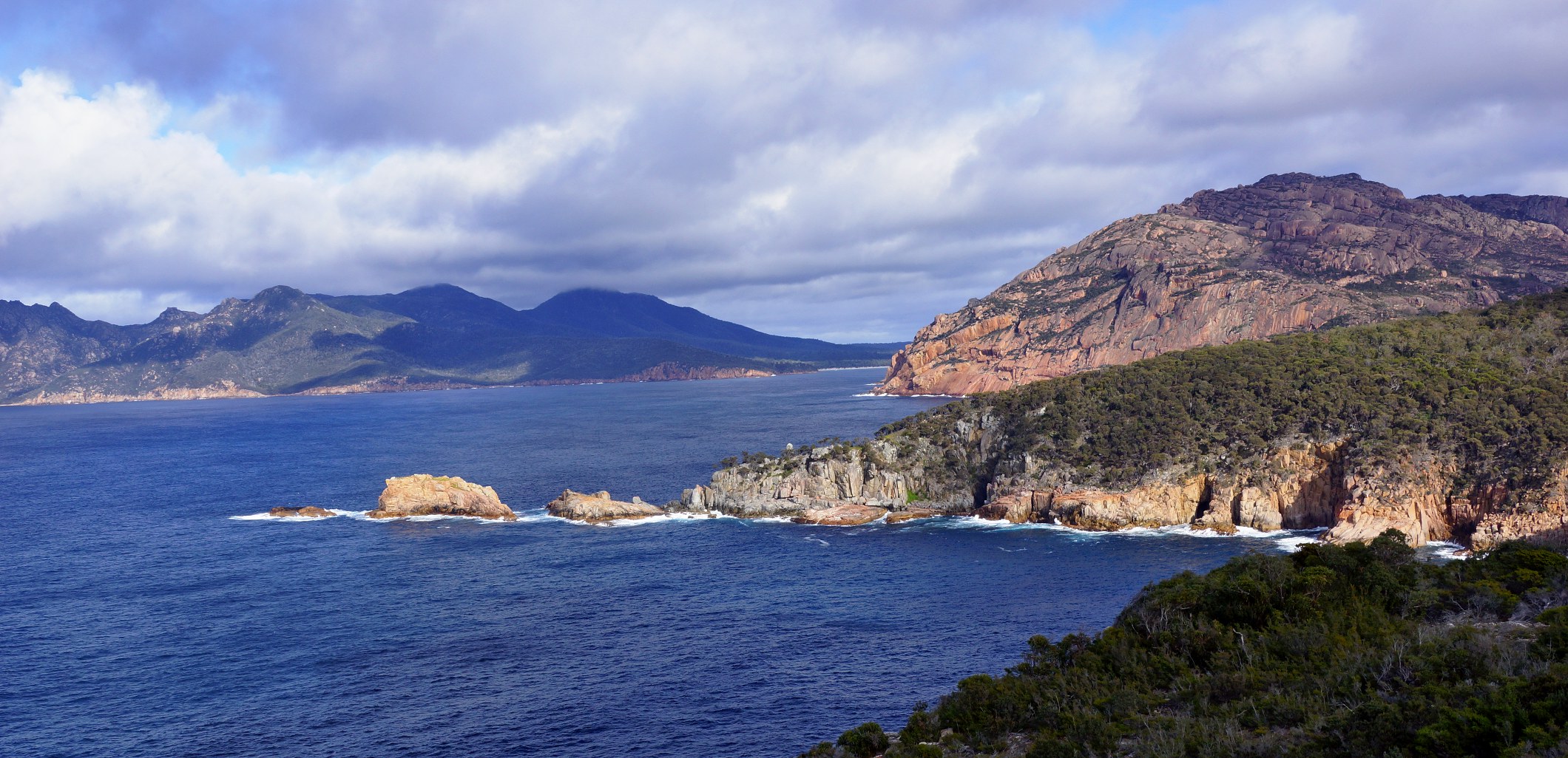 Coles bay - spectacular rock formations with Wineglass bay on the other side.