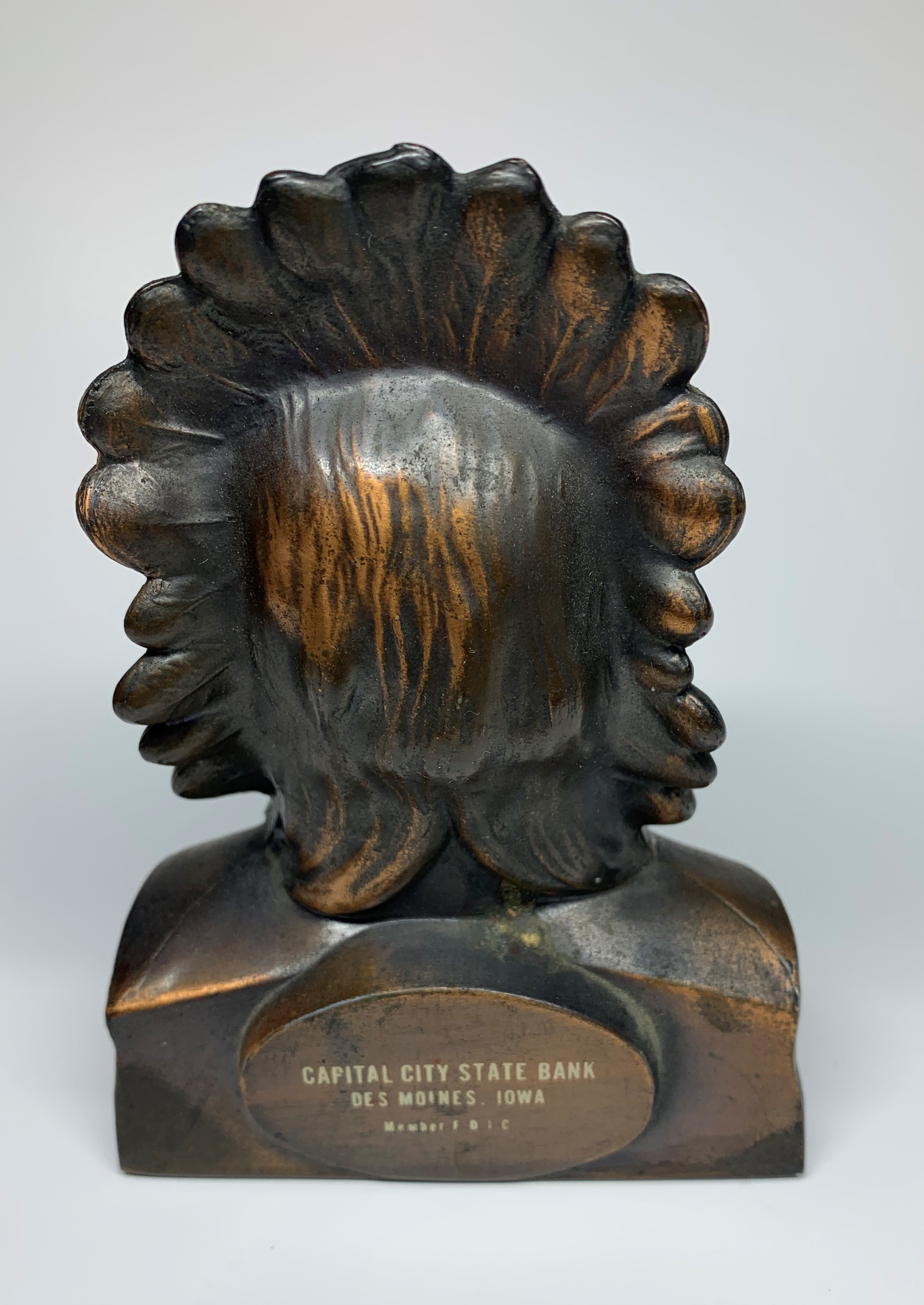 My old Indian Head bank that Dad brought me. I lost the key and there's still some coins inside. I think it came to me in 1962.