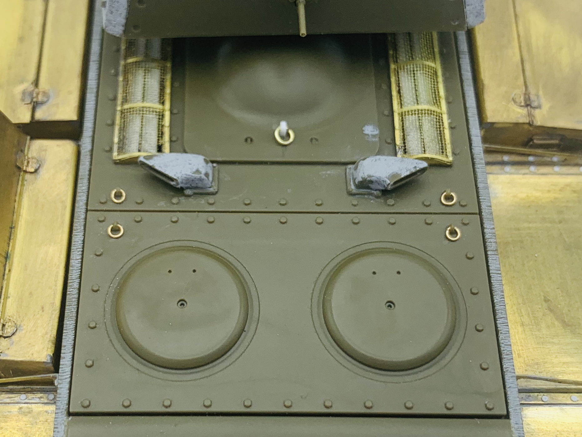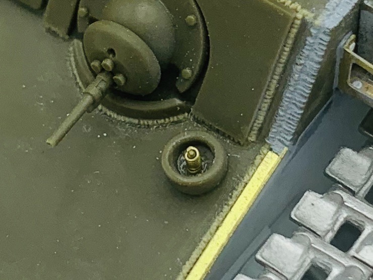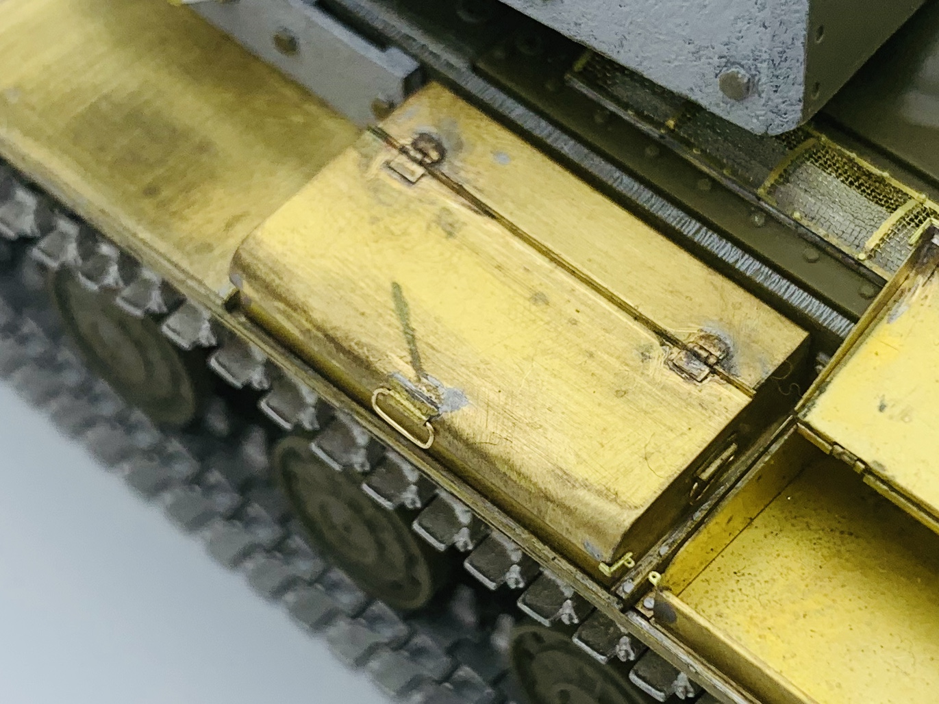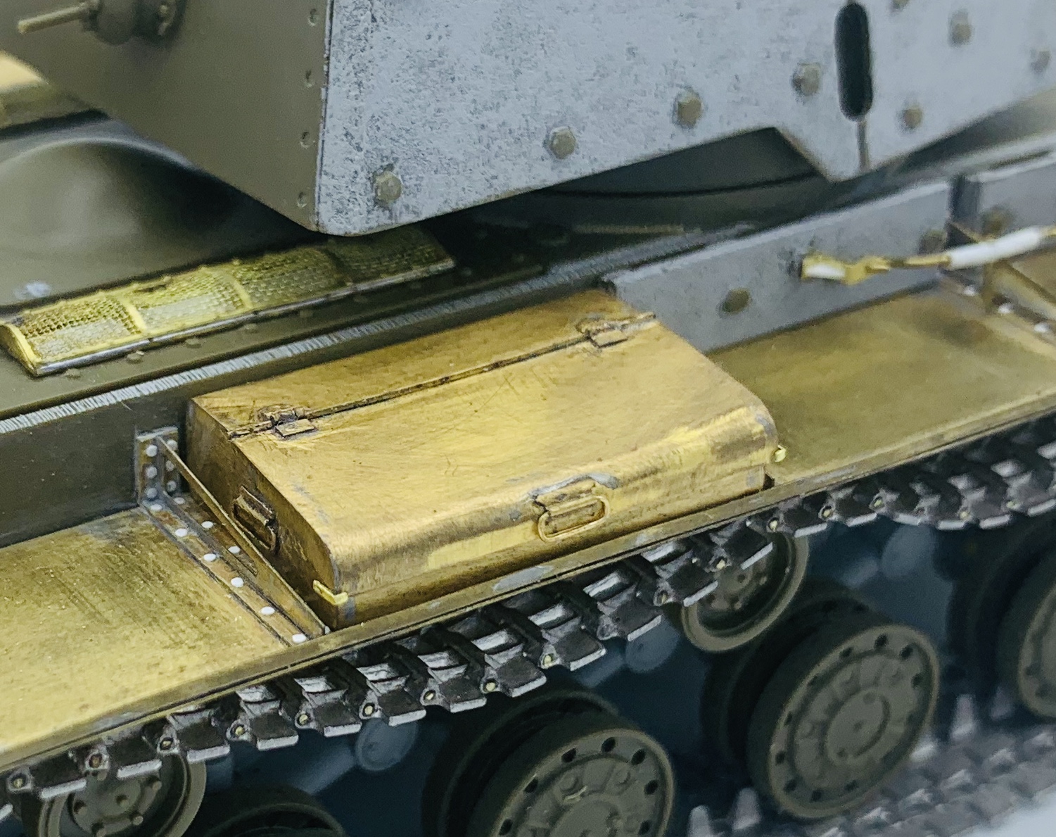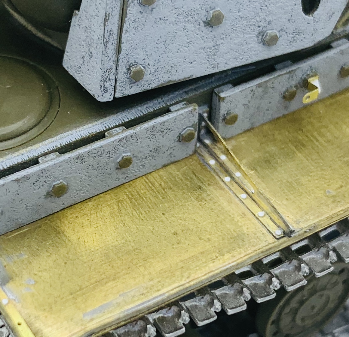 This was a build I finished a couple of months ago. It is Tamiya’s 1/48th scale KV1 with Appliqué Armor. It was a fun project and went surprising well. As with many Tamiya 1/48th scale kits, the detail was very soft on some areas. I added the flame cuts to the whole kit as well as weld beads as they are not represented on the kit. I decided to use stretched sprue to save myself some time. The flame cuts were made using the side of an Xacto blade and blended in with Tamiya extra thin. The armor texture was done using Mr. Surfacer 500, stippled with a brush and sanded down. The fenders, tool boxes, air intakes and other details are from Aber. I was going to use the Aber barrel but it is grossly under scale from what I can see, so I went with the kit barrel. I also added the lifting handles to the rear deck using .32 wire. The bolts on the fenders were done using RP Toolz punch and die set. They are slightly out of scale but look good to me. I made the headlight bulb by melting solder on the soldering iron and allowing it to ball up. I also added the air intake louvers with plastic strip. Lastly I used Fruil Model tracks. Thanks for taking a look and any comments and critiques are appreciated.