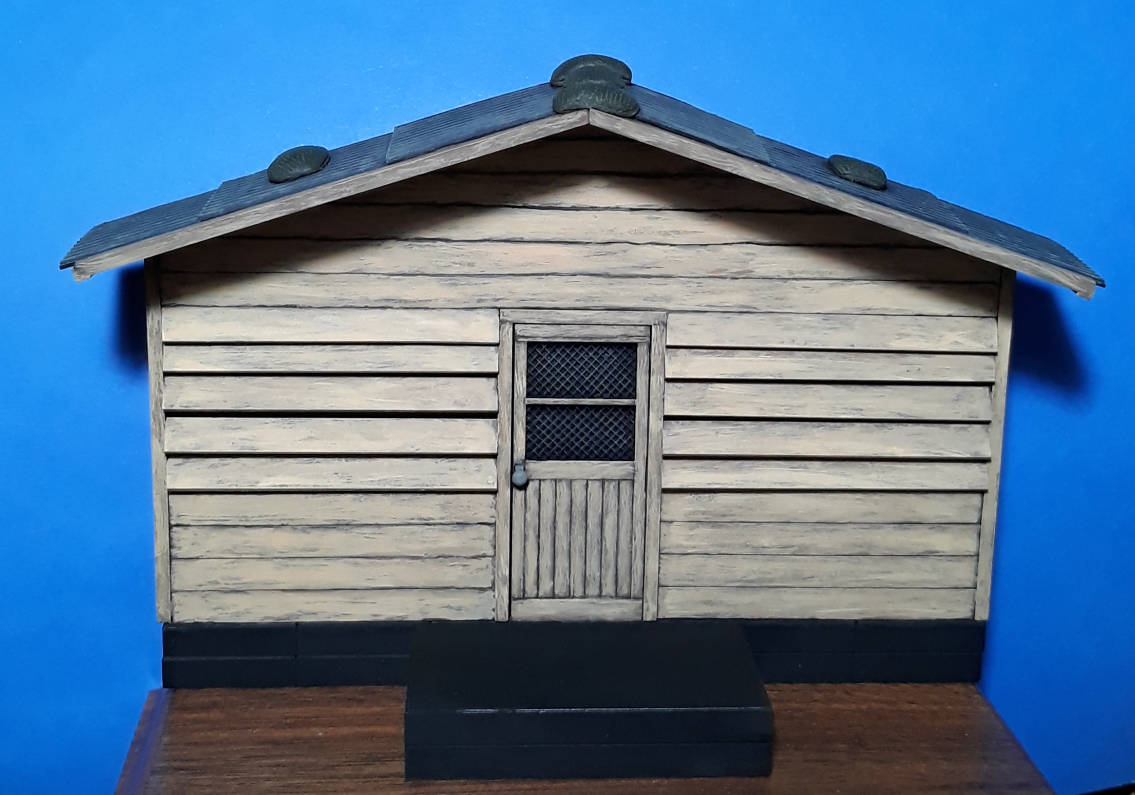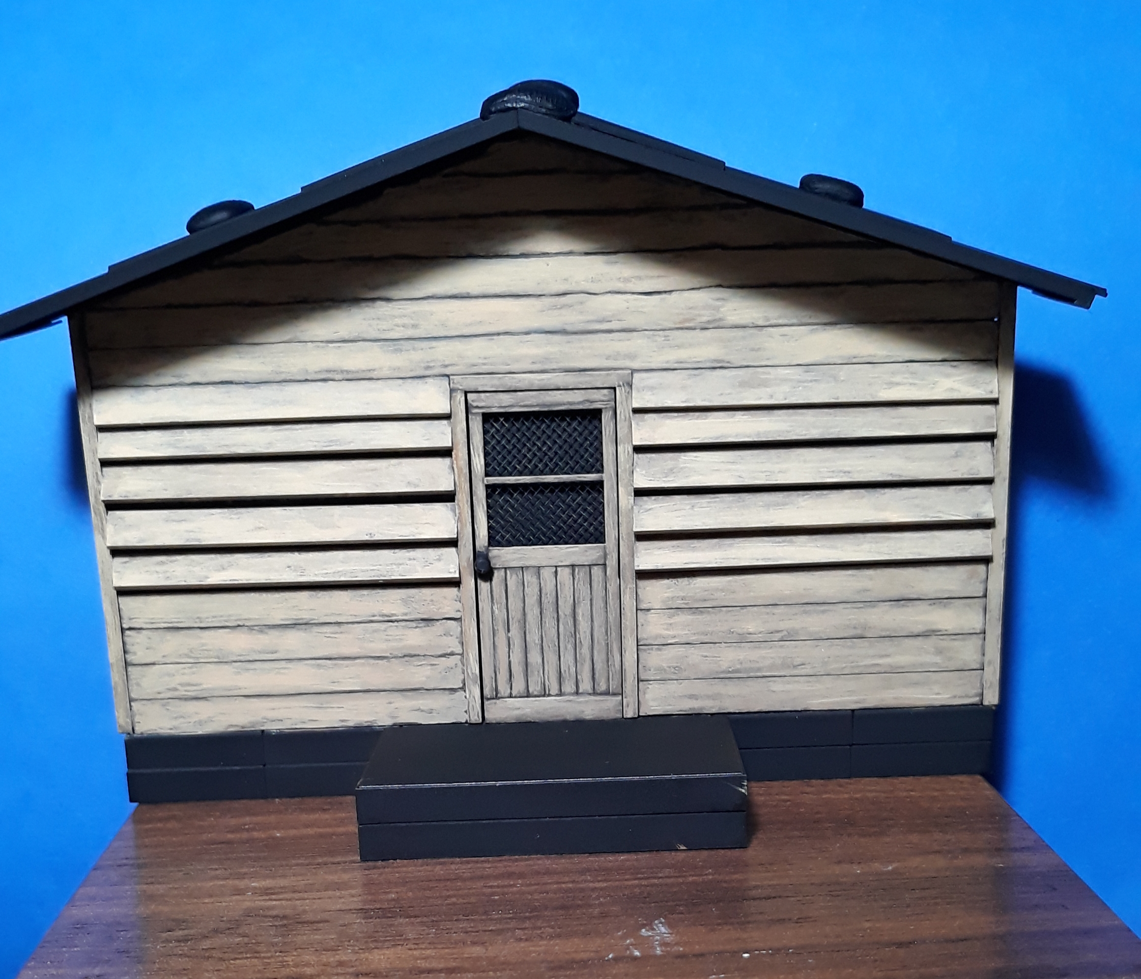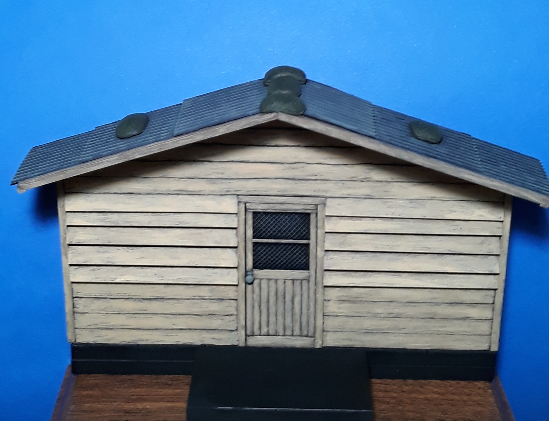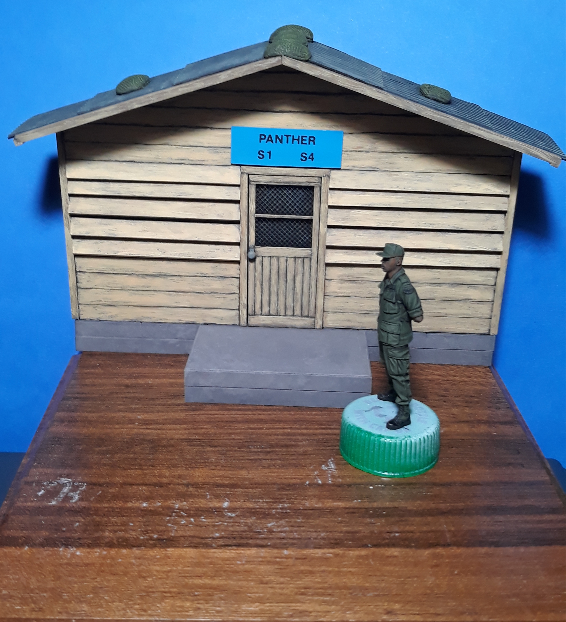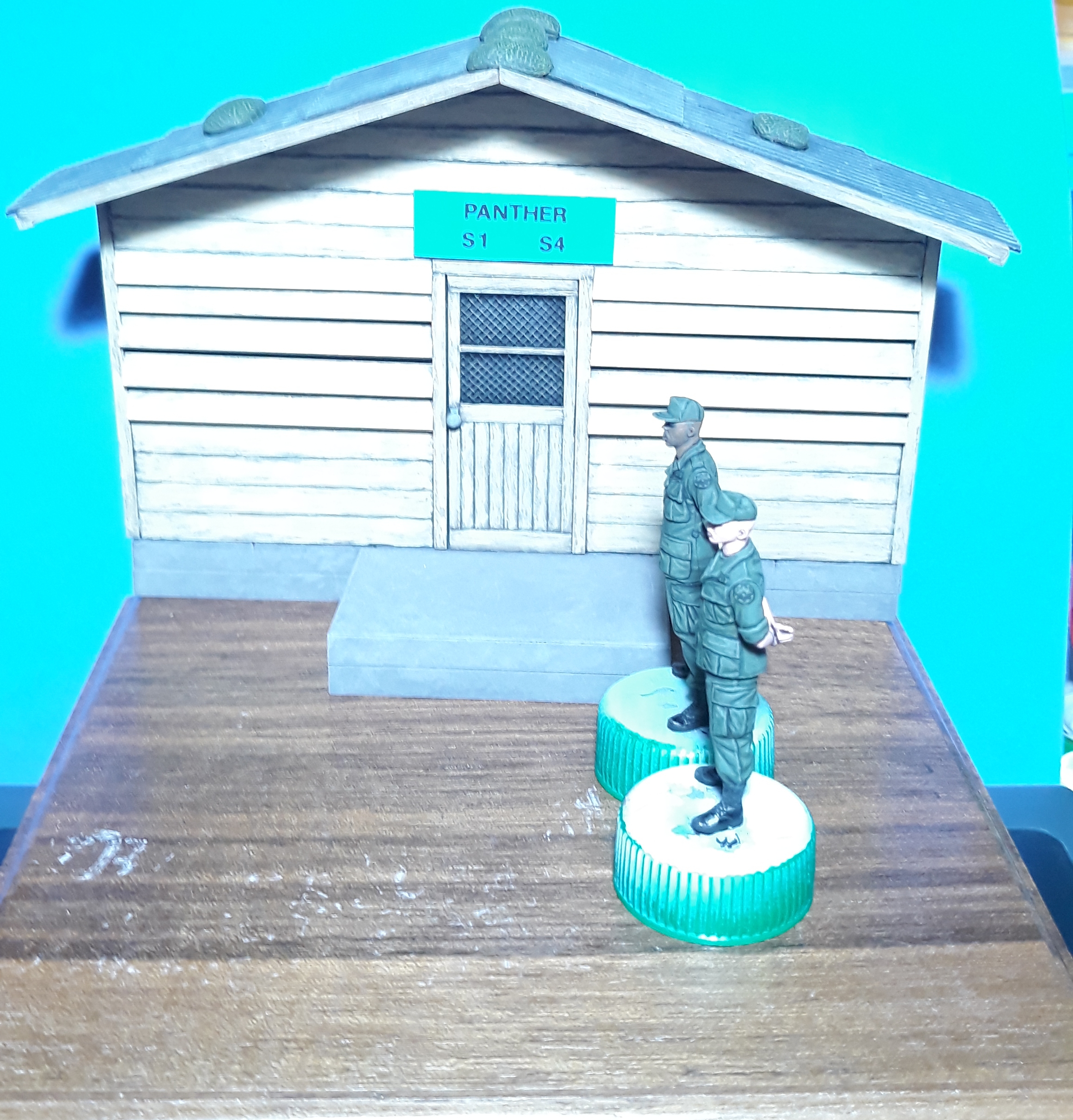 Since I like having some sort of background to my dioramas now, I decided to make a facade of one of the several versions of HQ/Admin buildings that had been built at Camp Bearcat.