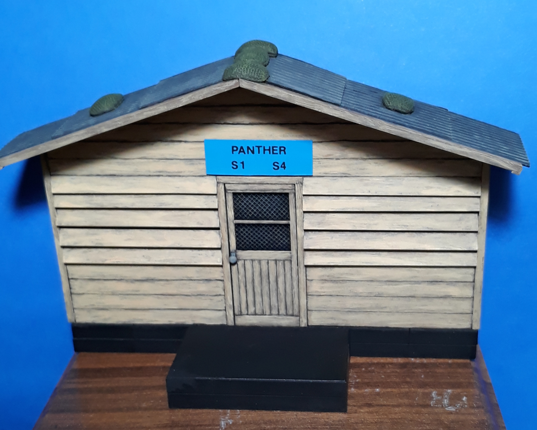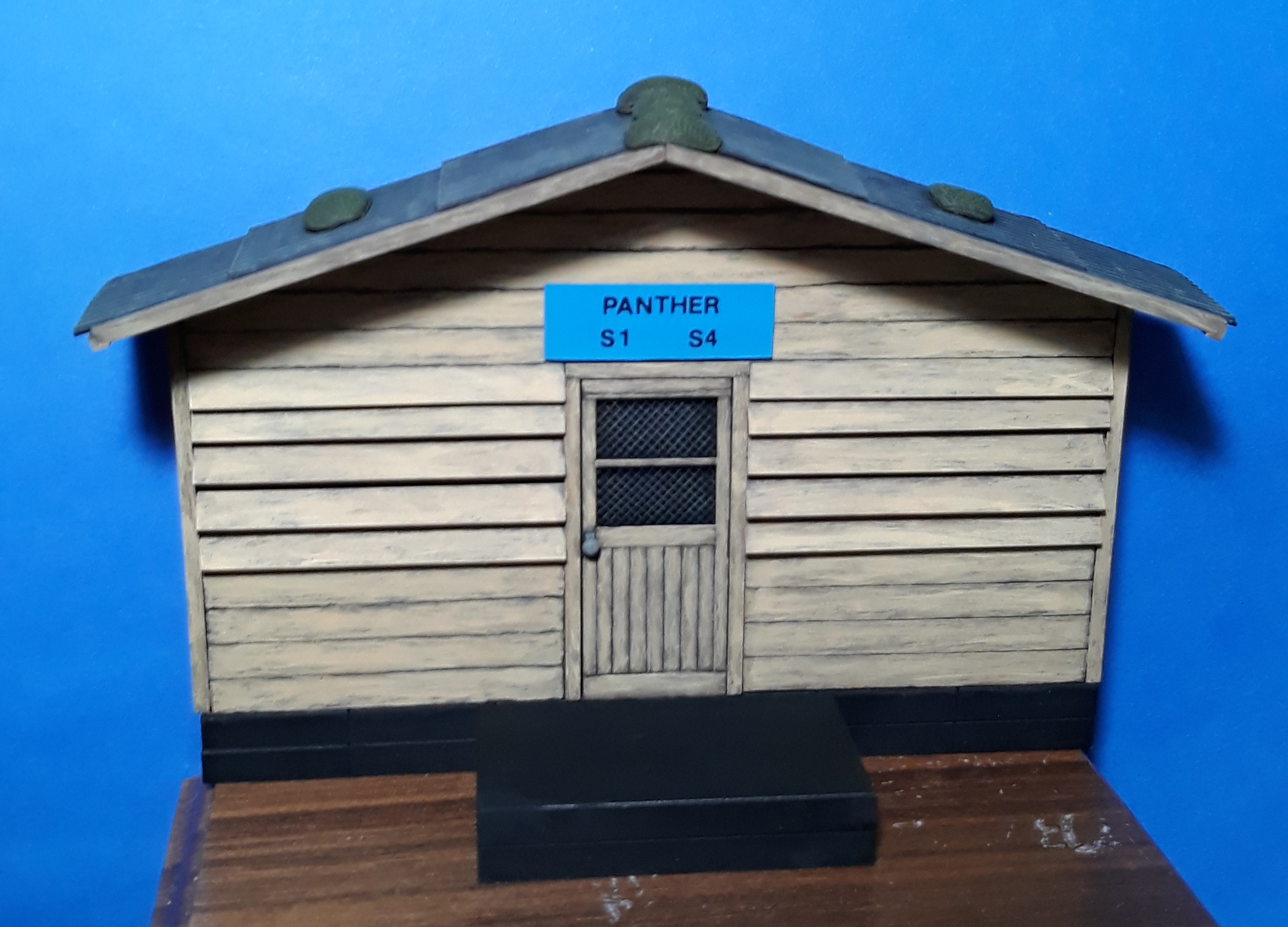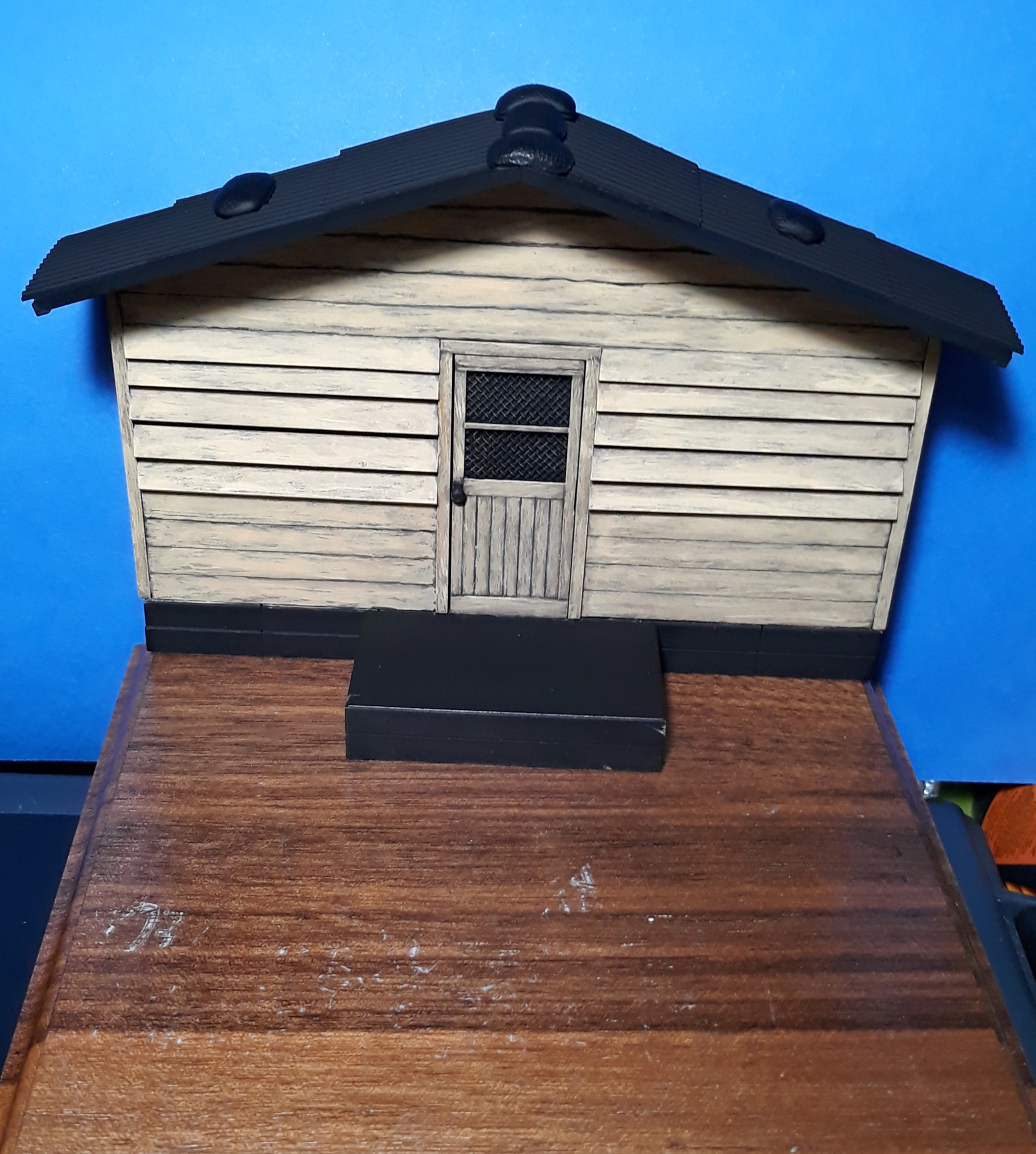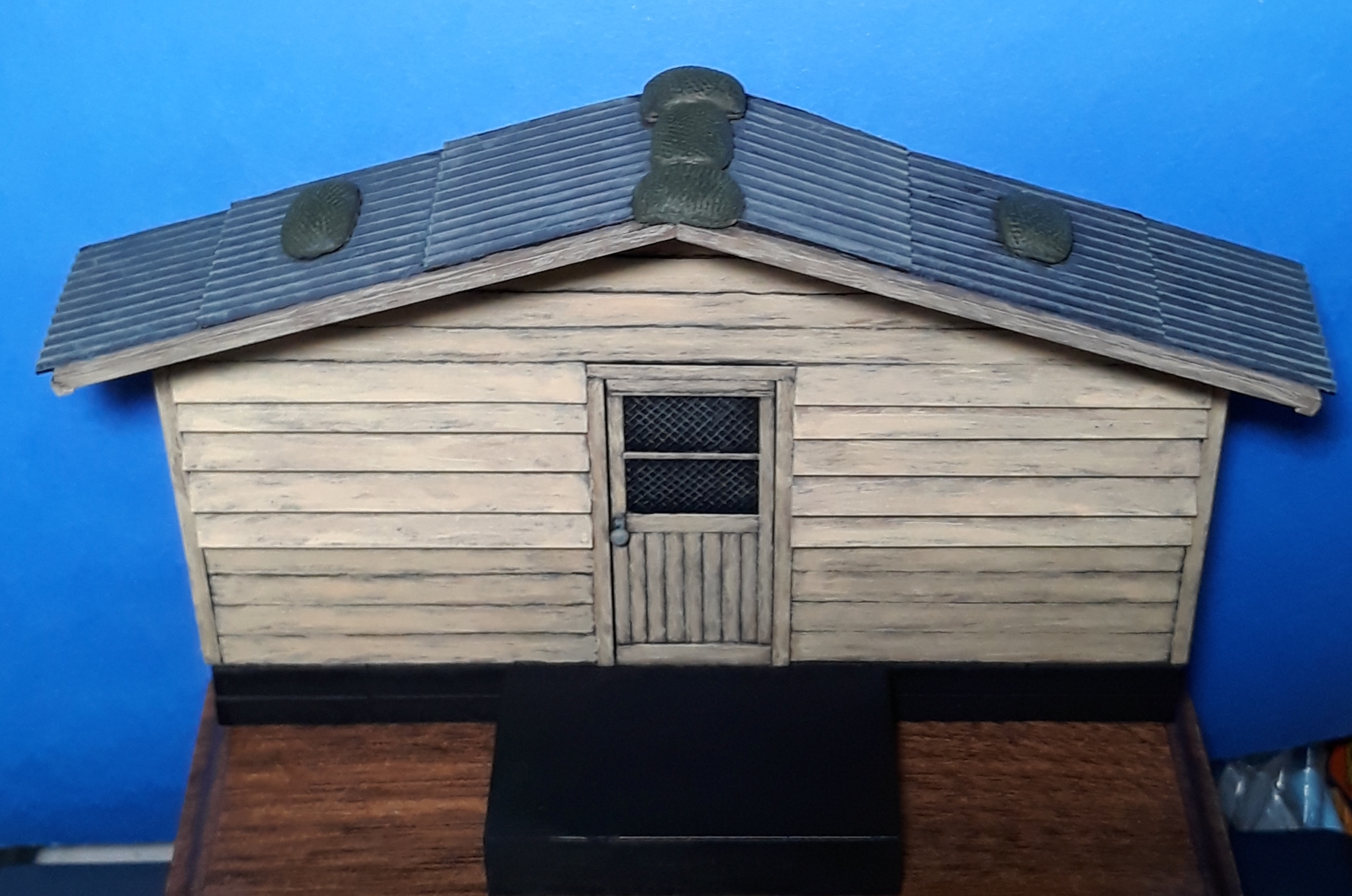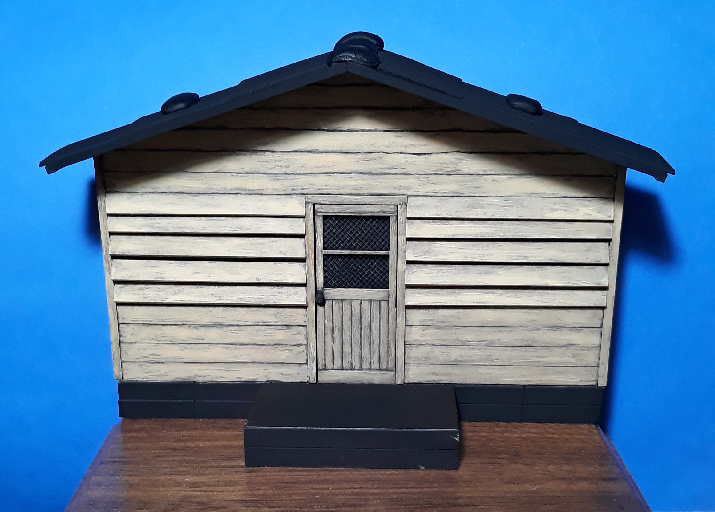 Since I like having some sort of background to my dioramas now, I decided to make a facade of one of the several versions of HQ/Admin buildings that had been built at Camp Bearcat.
