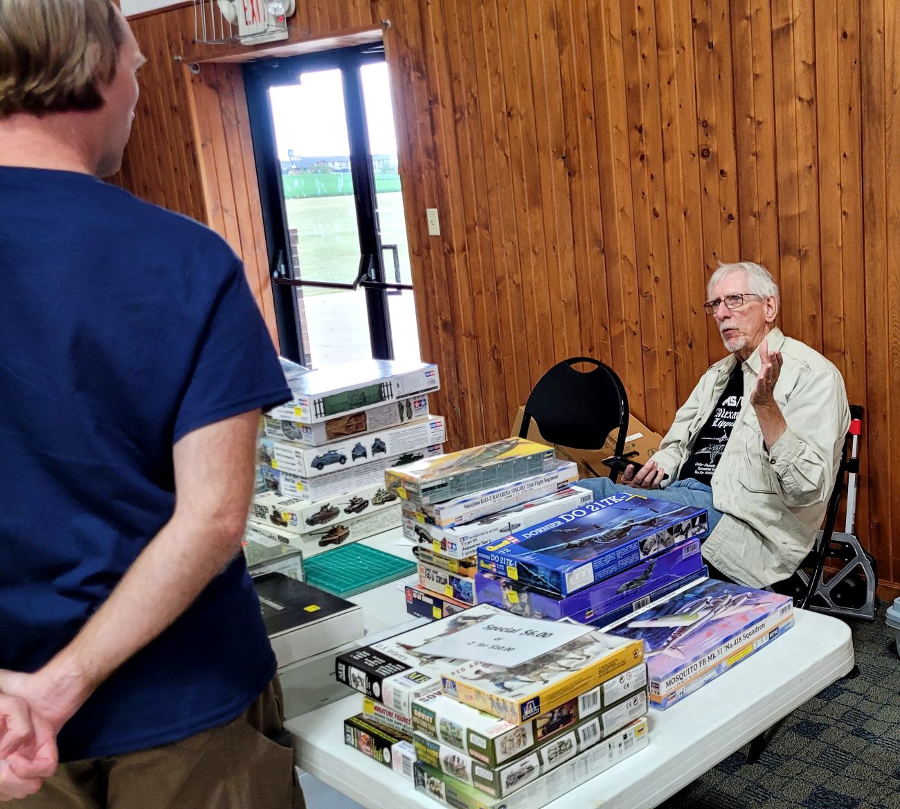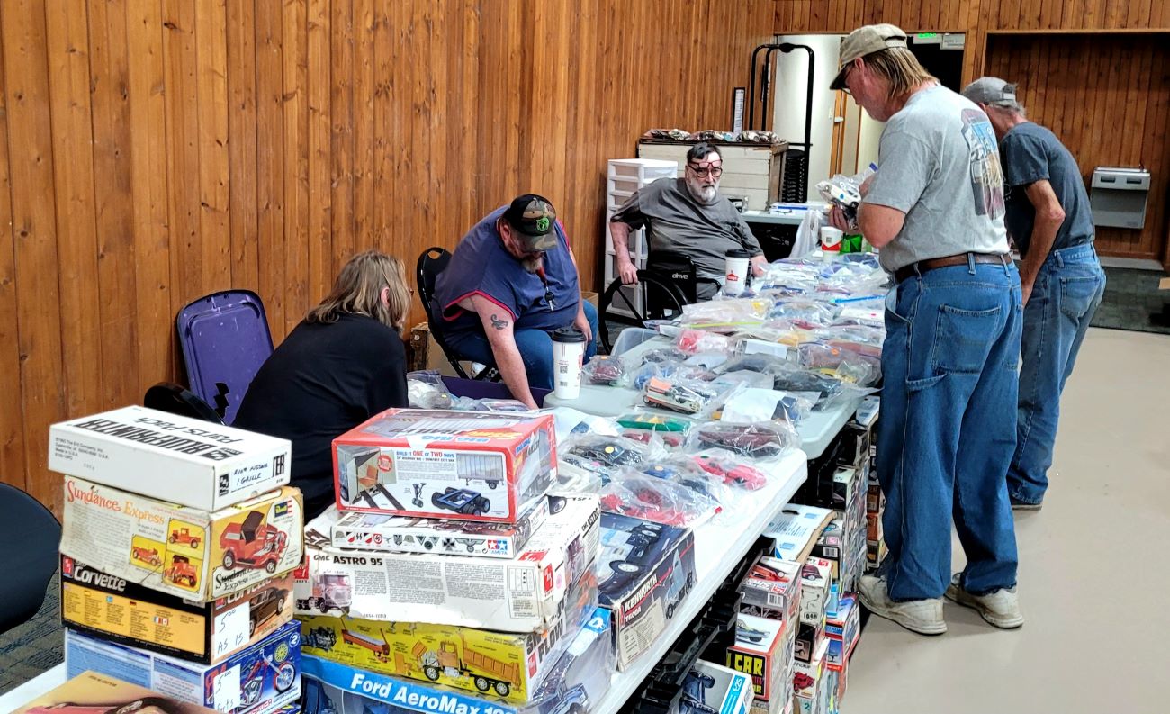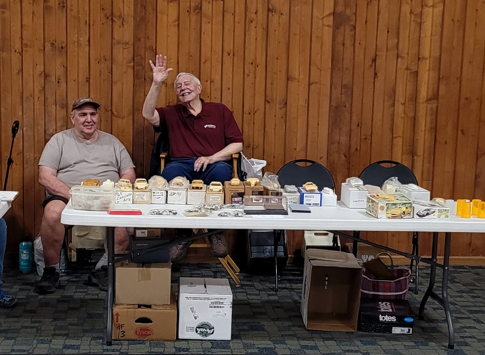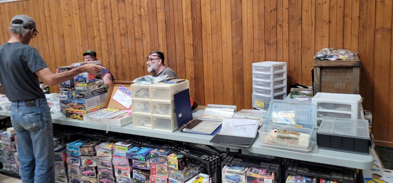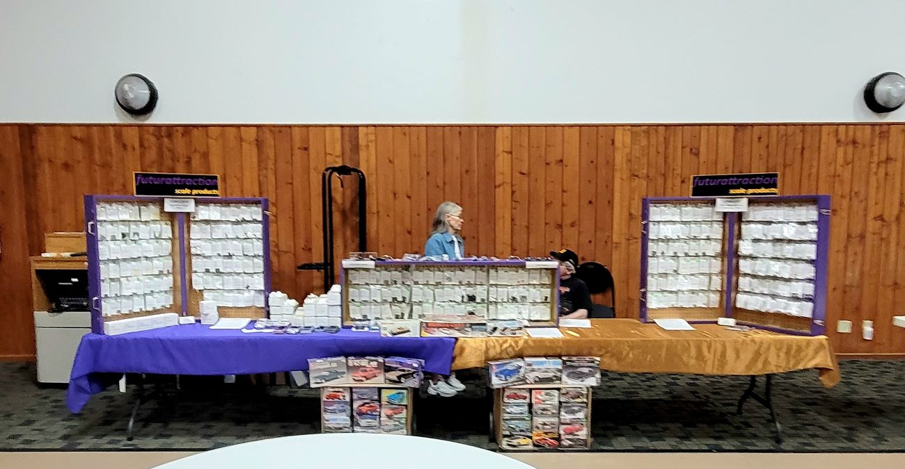 Virgil Stanbary and Big Bill Robertson hold down the fort selling Virgil's 1/24 & 1/25 resin car body selection. Virgil prefers 1/43 car models these days. "More space". He's a great guy and a fine model builder! Larry Claussen enters and vends as well. Another good friend of ours!