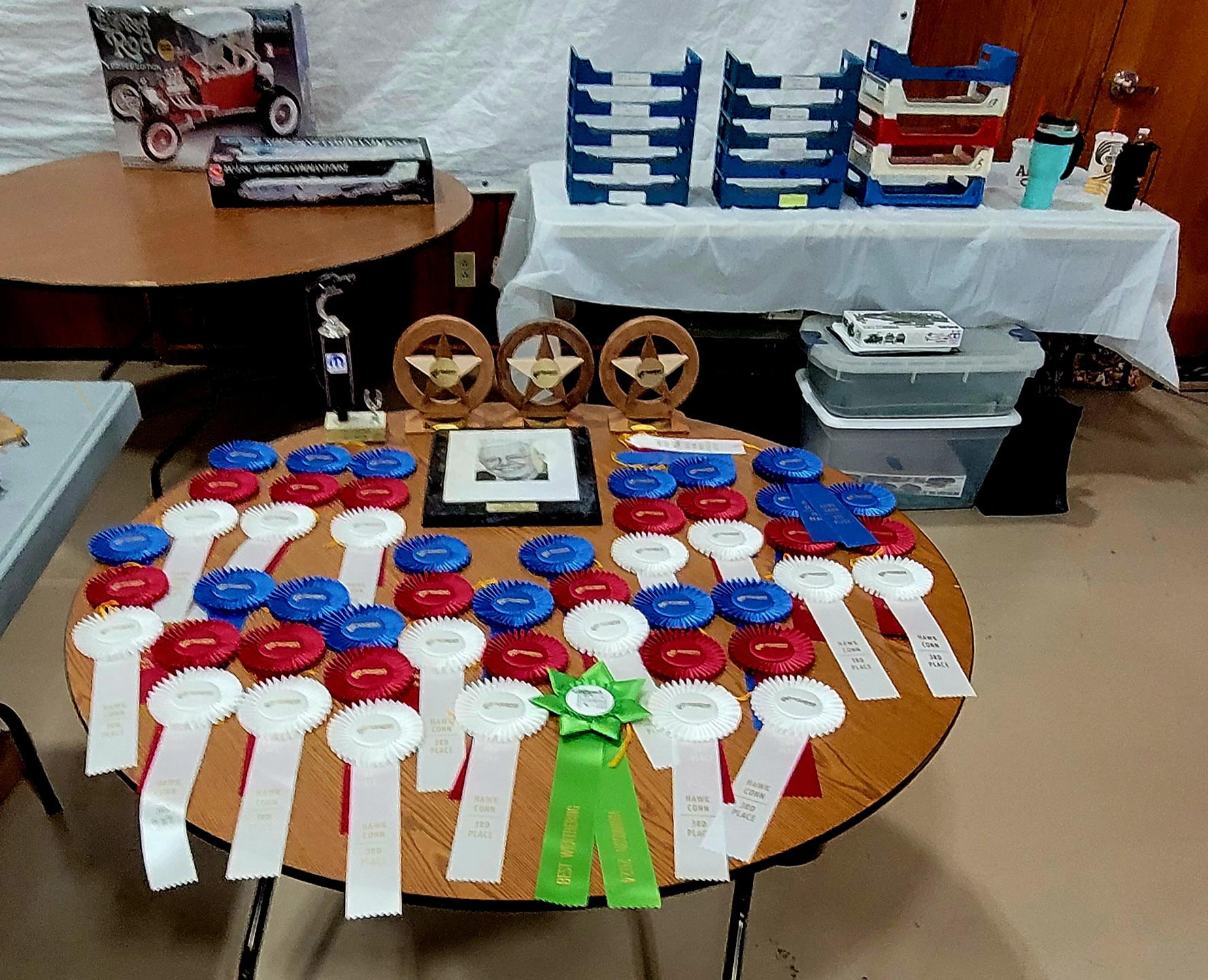 We bought our customary $40.00 (48) raffle tickets for the Show raffle. There were some commentary on "That lady over there wins all the raffle prizes". Look! Support the Club! Buy the raffle tickets! Enter the show! The Hawkcon 2024 raffle was a little short on armor kits and not as large as other club contest raffles are, but bear in mind, this is their 2ND show! The raffle went until all the prizes had been claimed, just as it should.