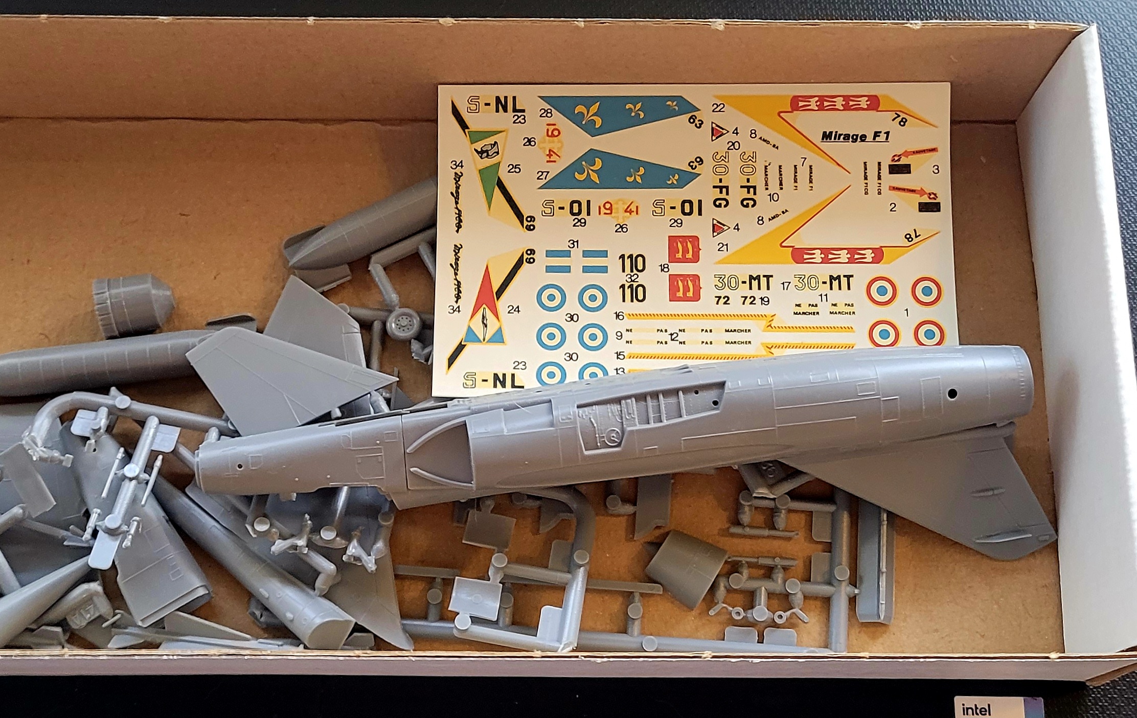 This 1/72 Mirage F1 kit is pretty nice for being a vintage kit that I had little appreciation for. I figger, it was started already, just as well make the best of it!