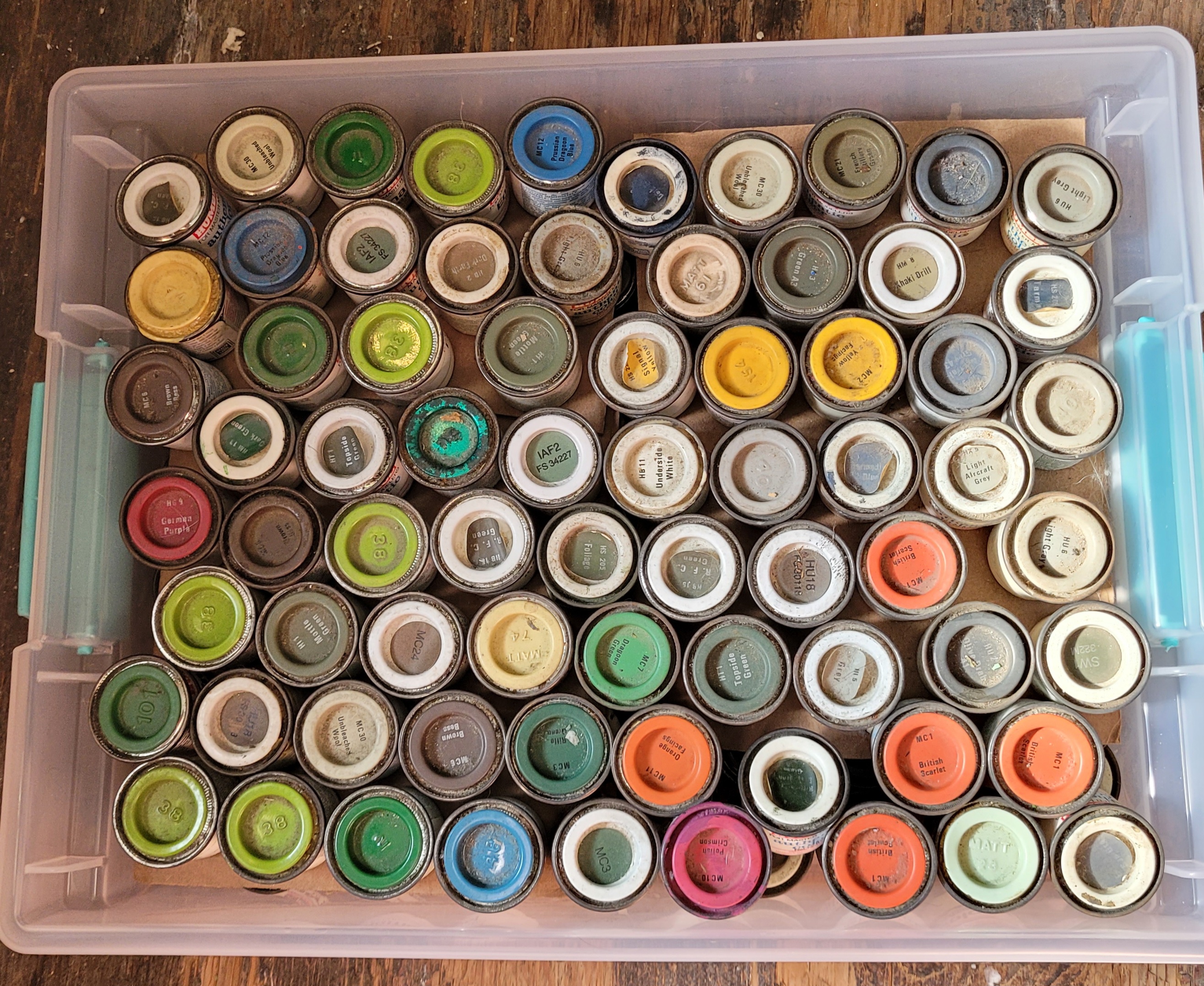 I have a bunch of Humbrol enamel paint tinlets here.