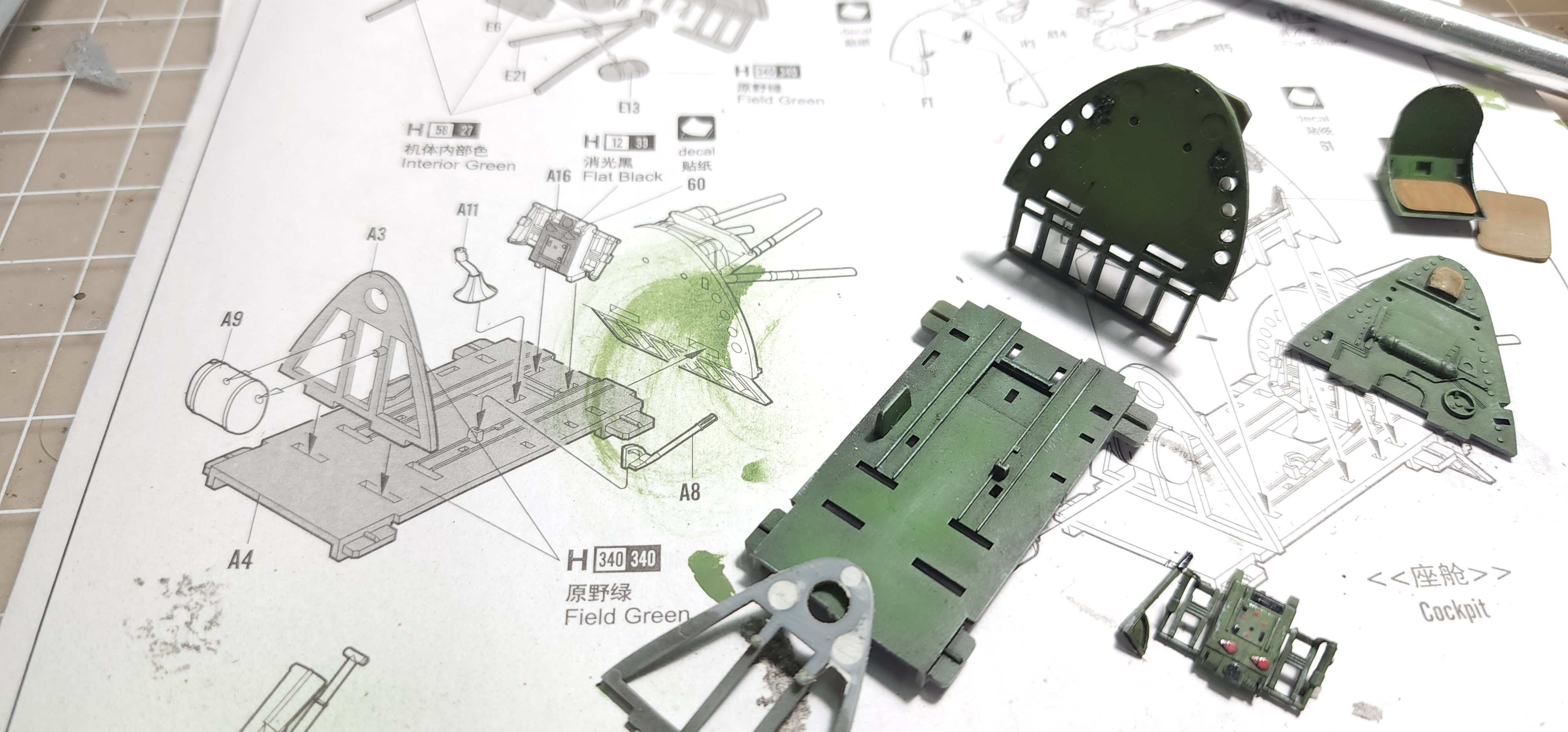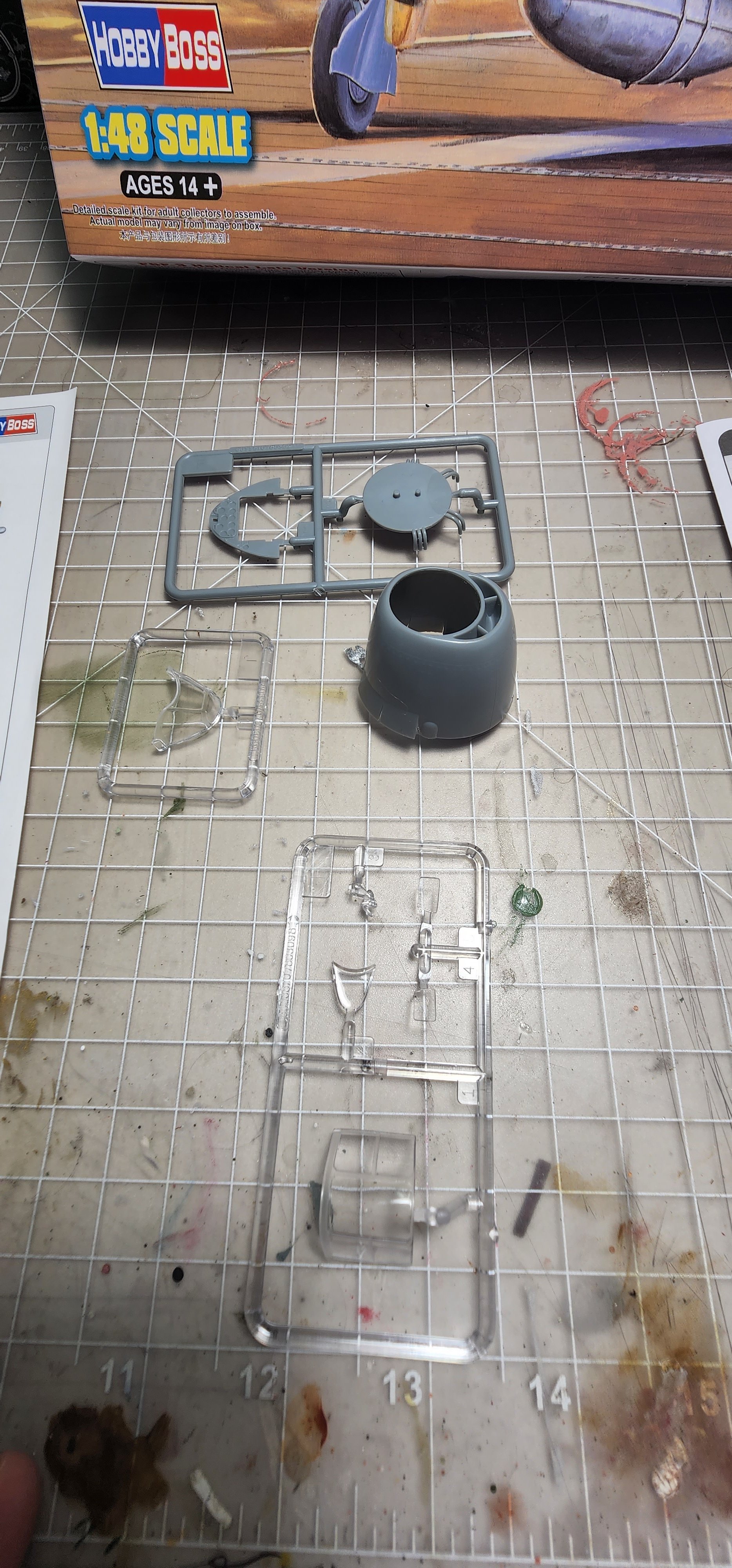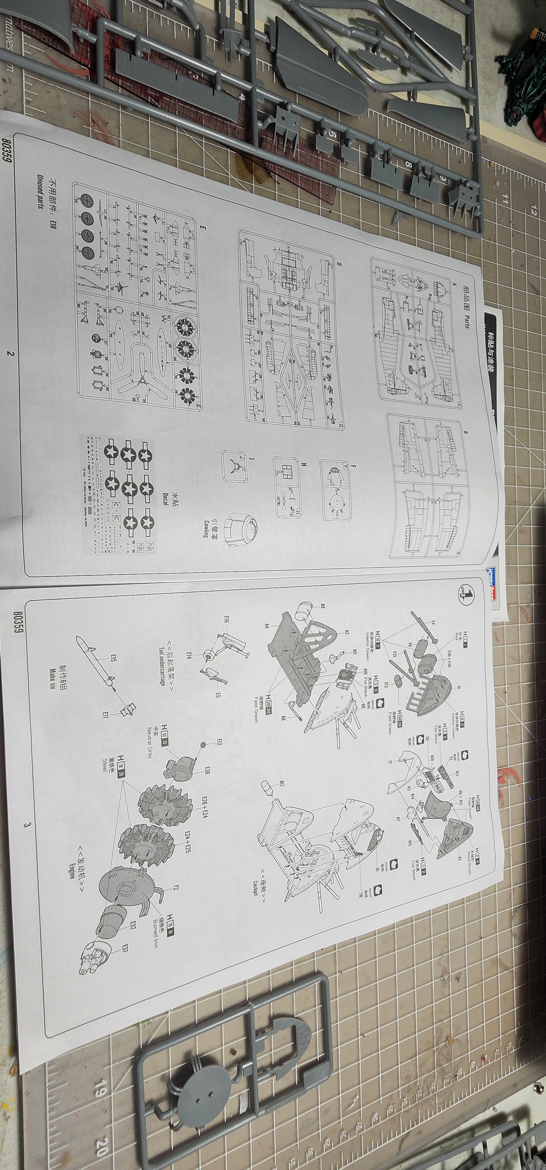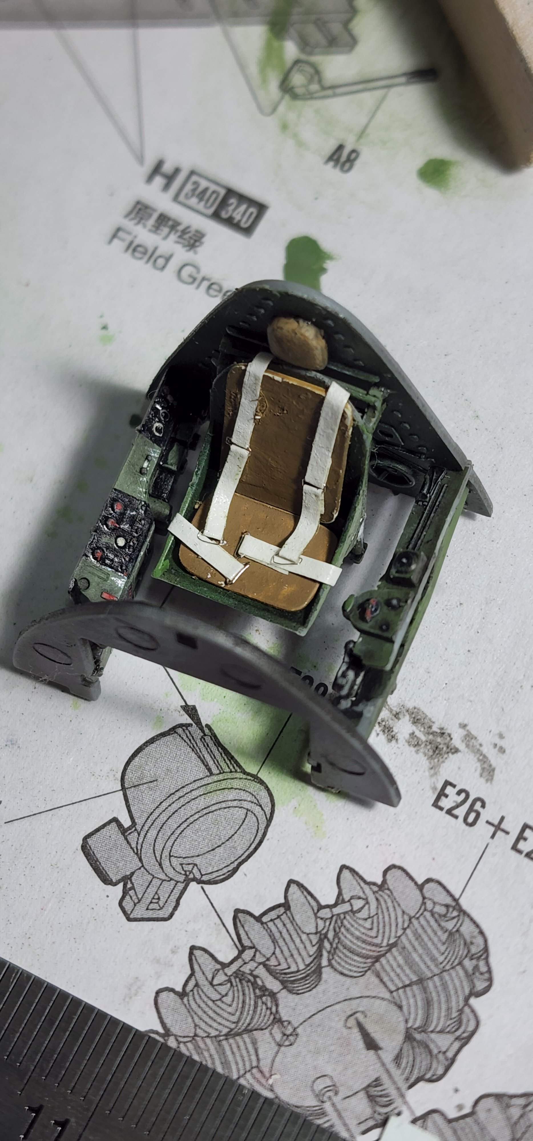 I am abandoning that silly little Heller 1/72 Hellcat I had started. What a horrible little model. I chose the Hobby Boss late version to start instead. I am not sure I have opened a kit this nice before. The detail level is eye popping to me. The clear parts were wrapped in foam cushioning then sealed in a plastic bag. That is a first for me. The cowl was as well along with a part of the motor with delicate parts that could break off. Anyway, that level of care is new to me. With what model kits cost these days I think it is a great idea and they all should do it (and they might as far as I know...it has been years since I opened a newly boxed model kit. The Mustang build was boxed in 1994). I have included shots of the sprues, instructions, and very nice decal sheet in case you are interested in seeing that. I have researched the crap out of this plane as far as my internet skills will go and have some great photo references. I washed all of the pieces and dried them. I have the cockpit pieces based in Tamiya black X-1 thinned 50/50 with alcohol. That thinning suggestion has made ALL the difference in my airbrushing experiences. That tip alone was worth the price of admission!