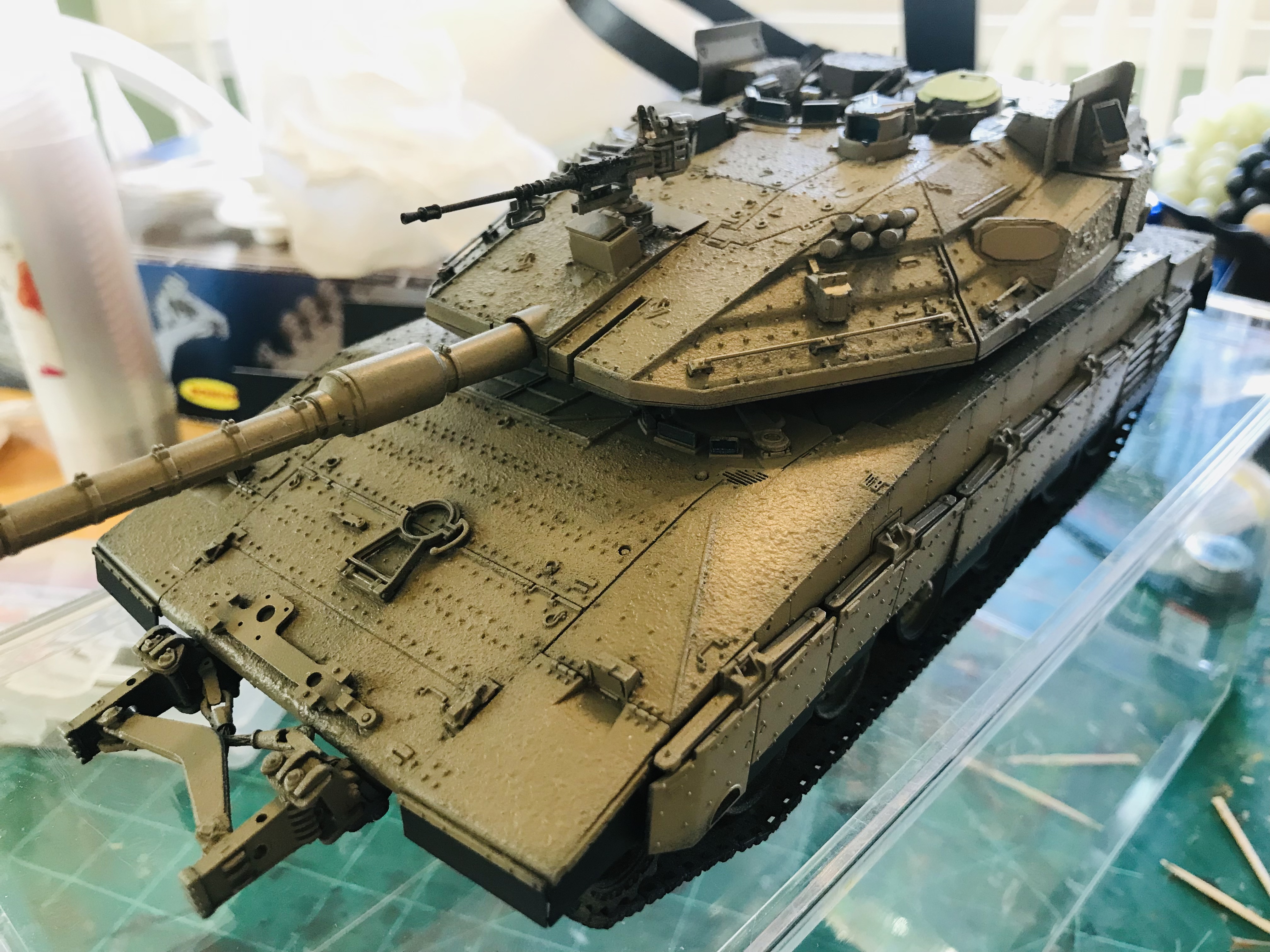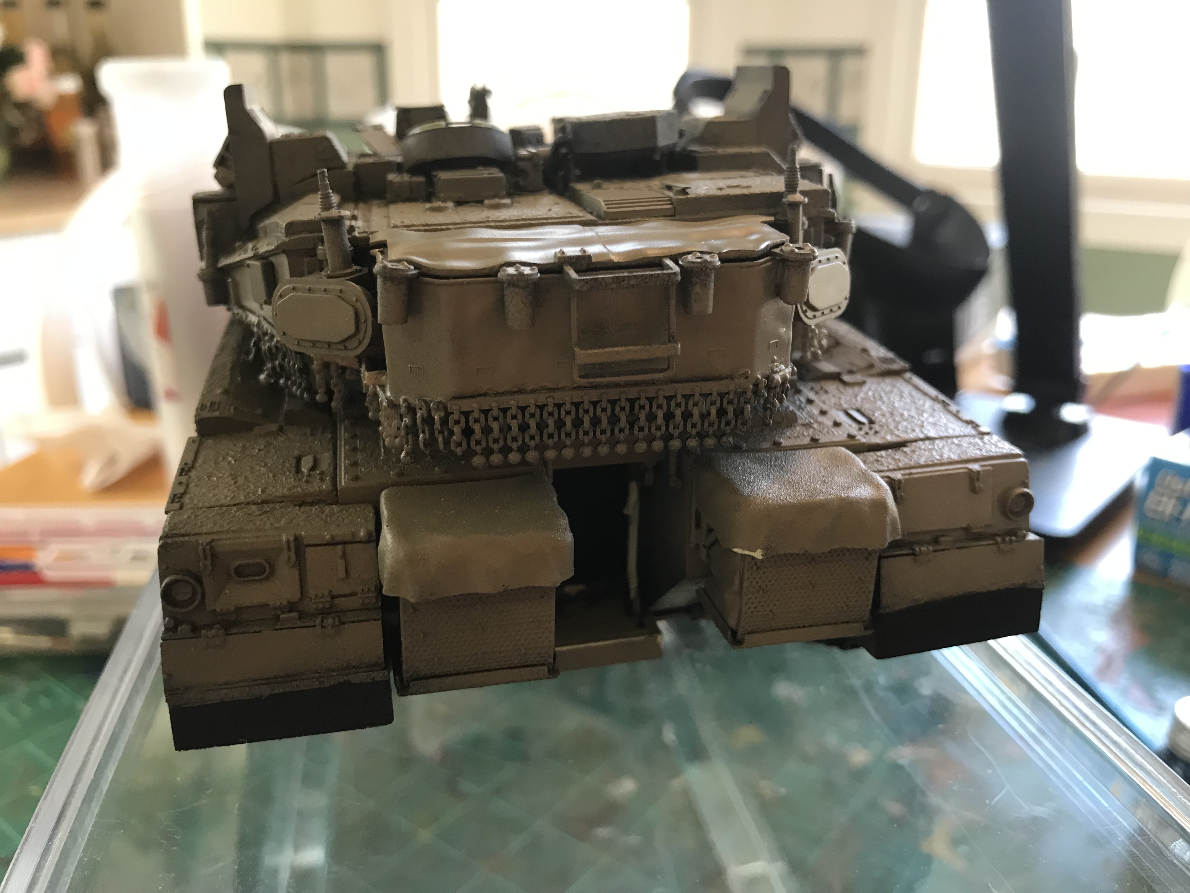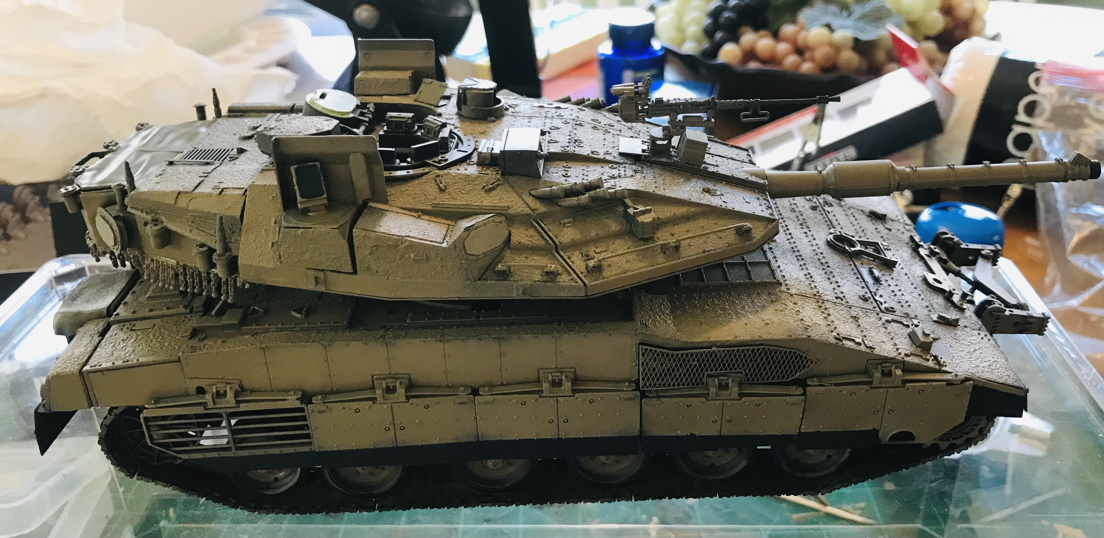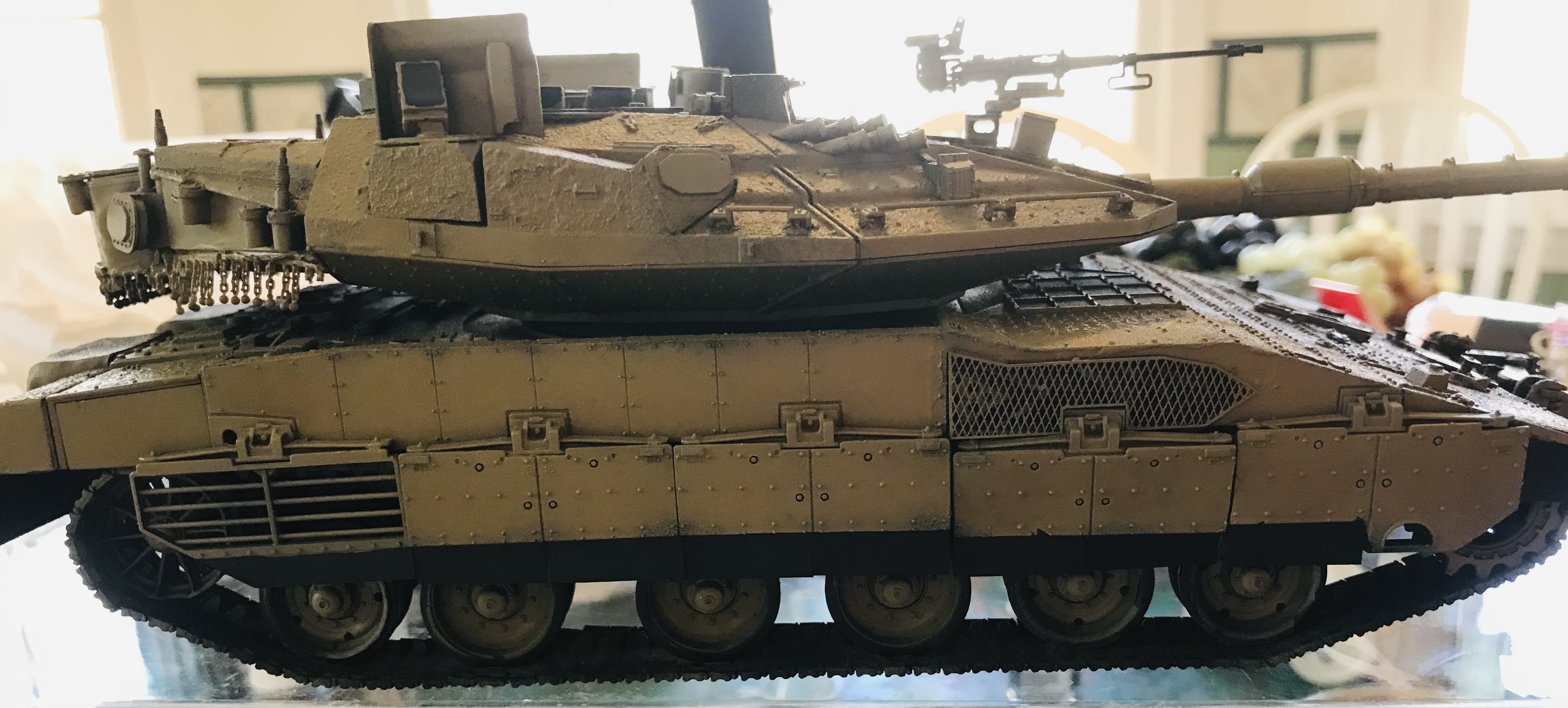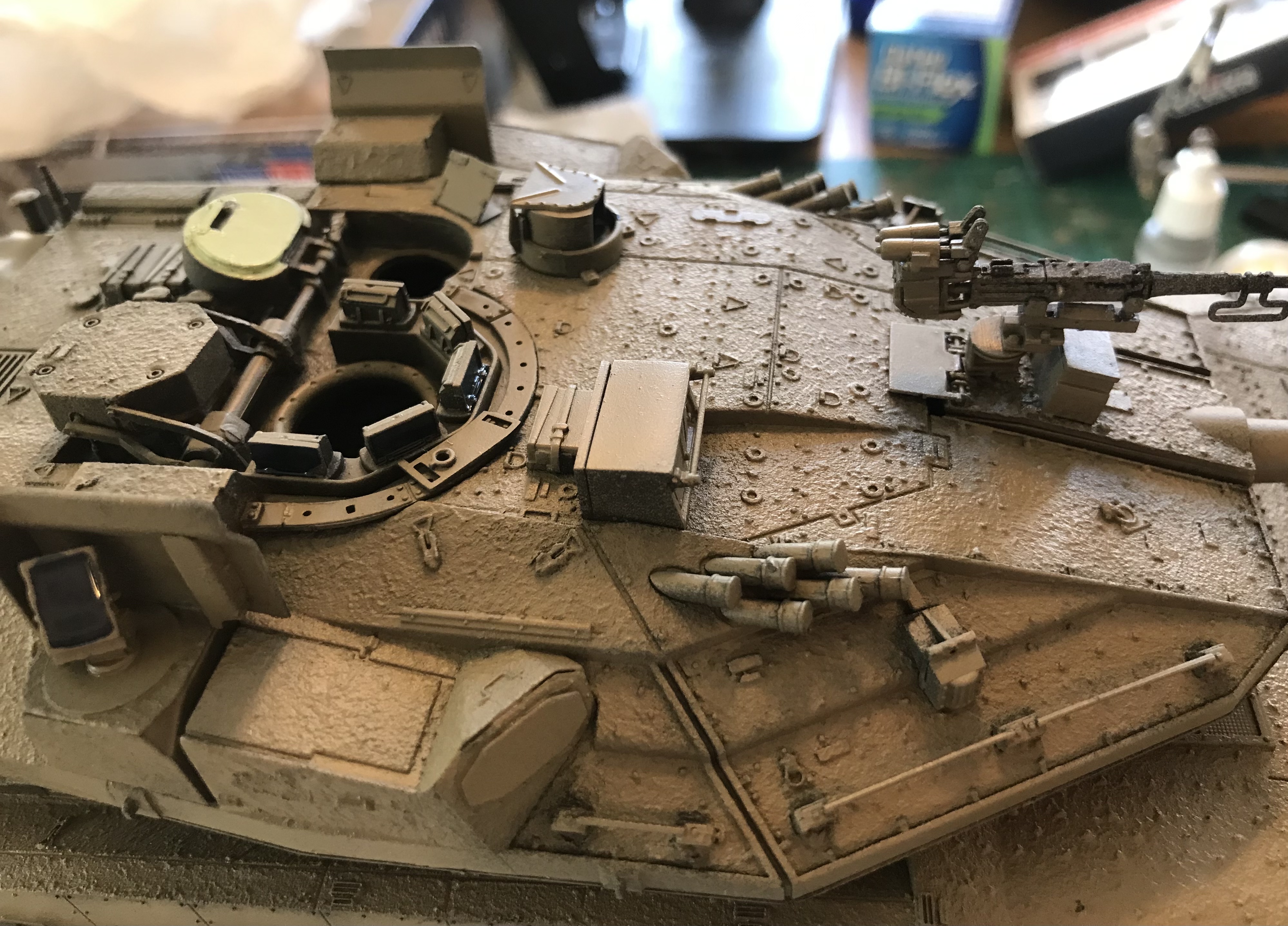 However, it wasn't until I had the kit in paw that I realized that Hobbyboss had made a pair of major errors. One ease to solve (skirt armor), the other, not so much. Hobby boss made a slightly modified version of thier Mk.IV M, simply adding the trophy armor. the issue here is that the early Mk IV M that H-B depicts lacks the loaders turret! Now I basically have two ways to work this animal; build as-is and don't worry about it, but sadly some of Saul has rubbed off on me, so it looks like that won't be happening. the other is to cut the turret and make the corrections. Anyone care to guess which one I had to go and choose?