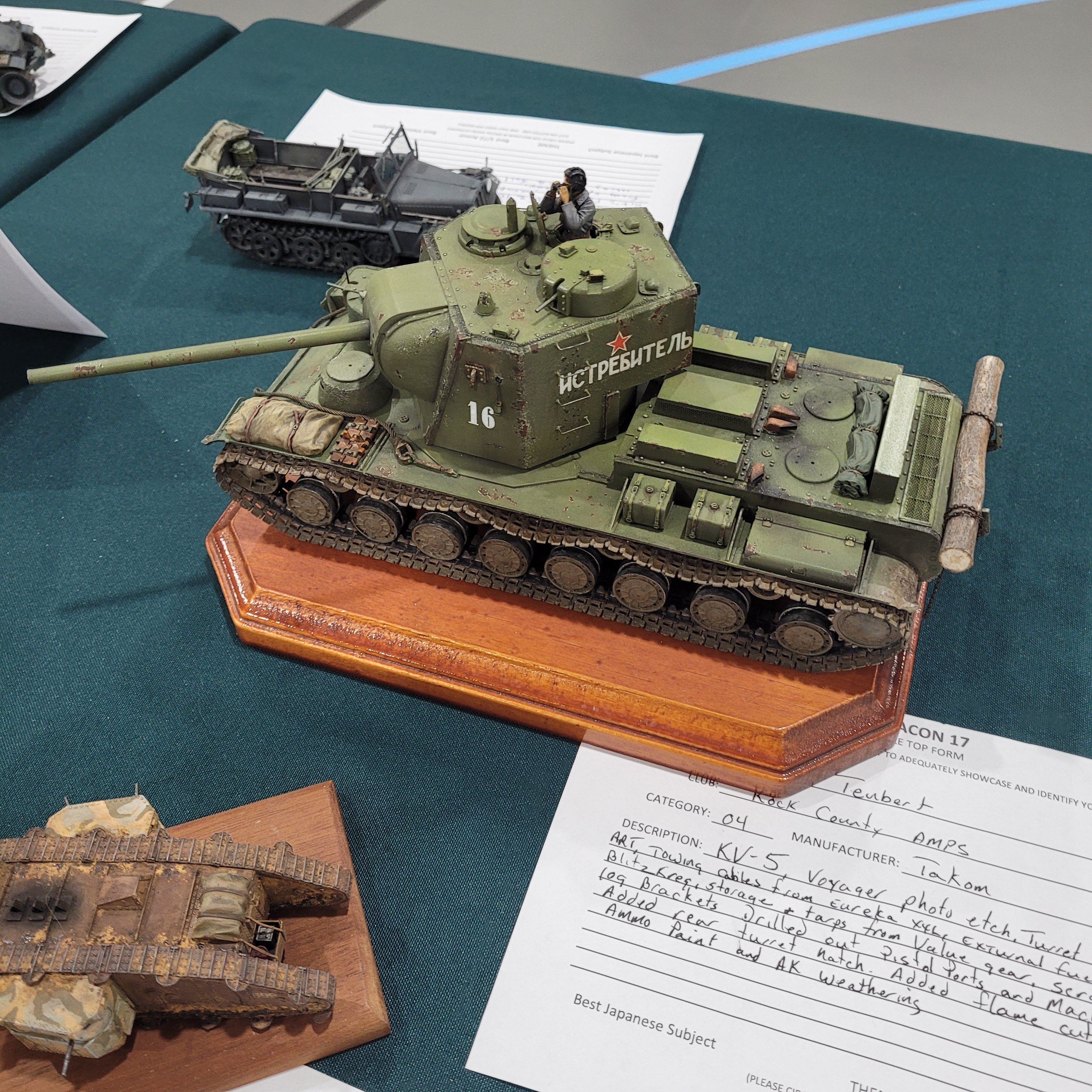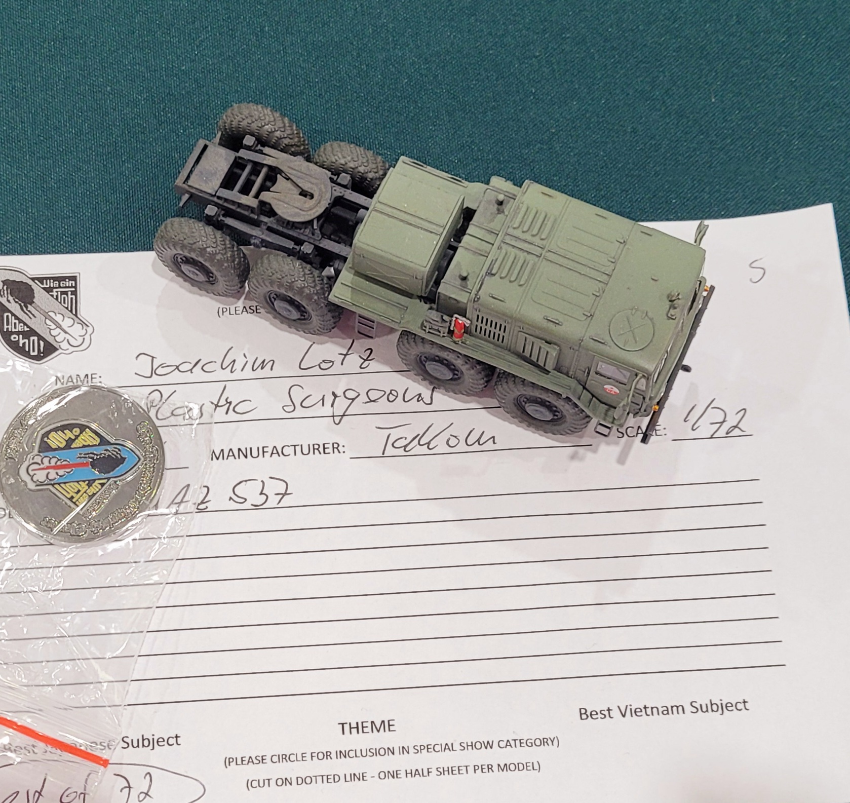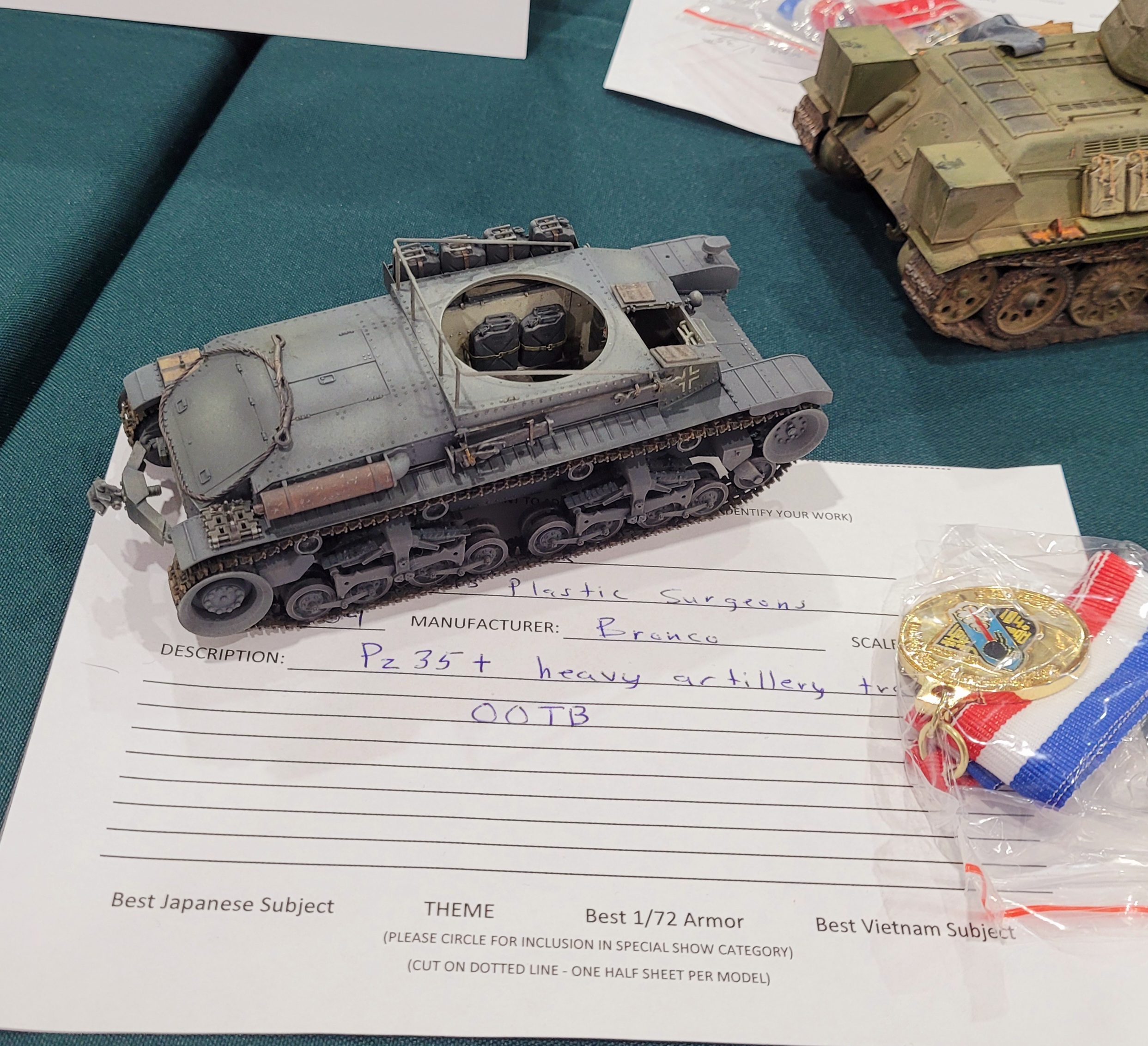 Ed St. Denis' 1/72 Armor. I thought his Prime Mover/Trailer/Marder build was possibly the best model of the Show. The opinions of our hosts differed. Ed had a good day nevertheless!