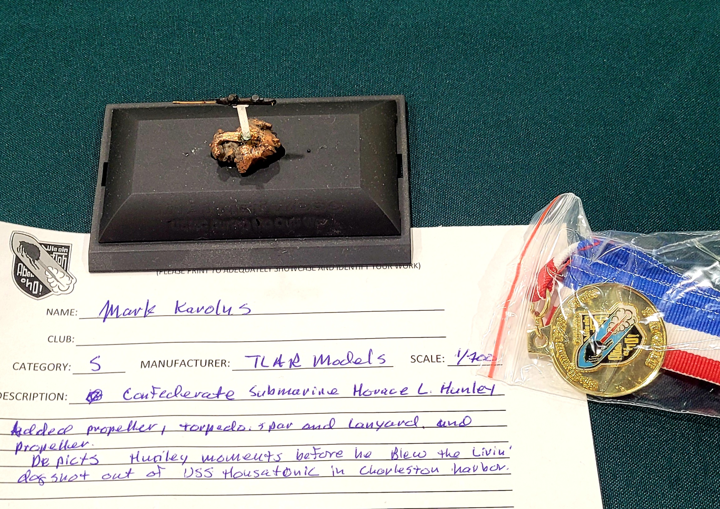 Mark Karolus' build of TLAR's 1/700 Horace L. Hunley submarine too! Hunley caused quite a stir as modelers realized what He was and looked CLOSER at Mark's fine build! Now I gotta mail another package to Mark!