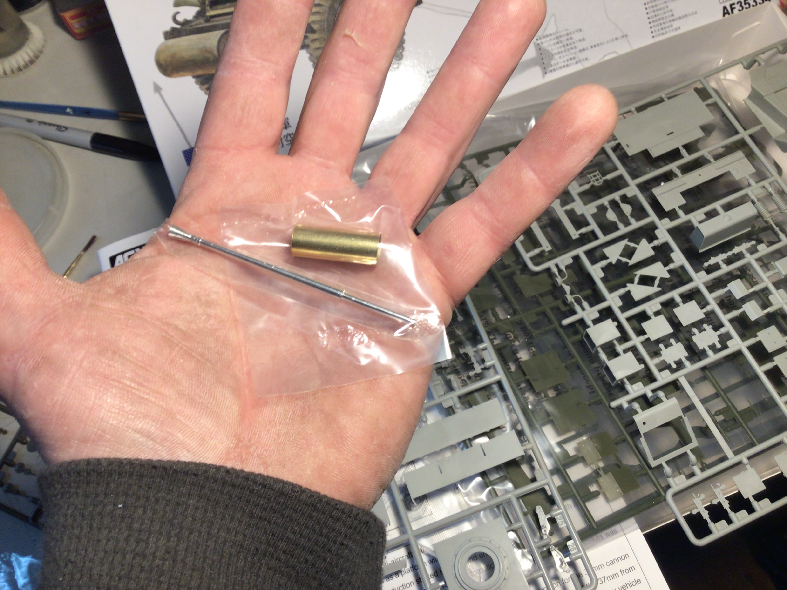 The aluminum barrel for the gun and the brass tube for the unditching roller.