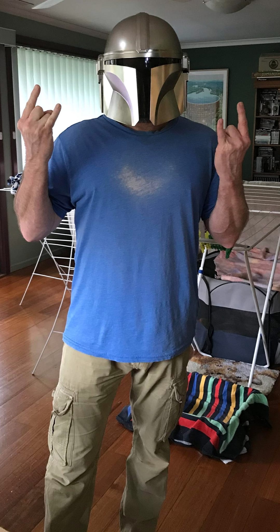 Now you are going to have to do an Adam Savage and build the rest of the outfit.New full scale Mandolorian prop helmet from the kids for my 60th Birthday!