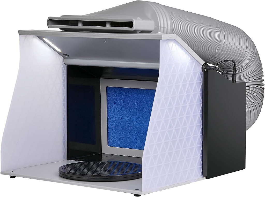 It replaces this ancient Gunze Sangyo Industries (GSI makers of Mr. Hobby products/paints) which appears to have been made from vacuum-formed packaging material, a range hood vent motor and some cat scratching board!:sawall