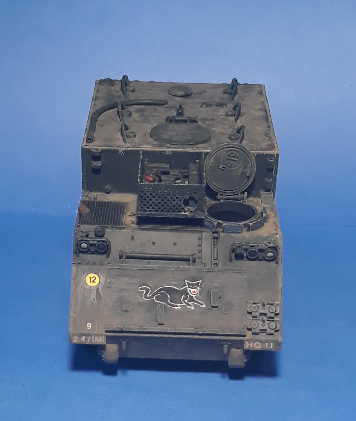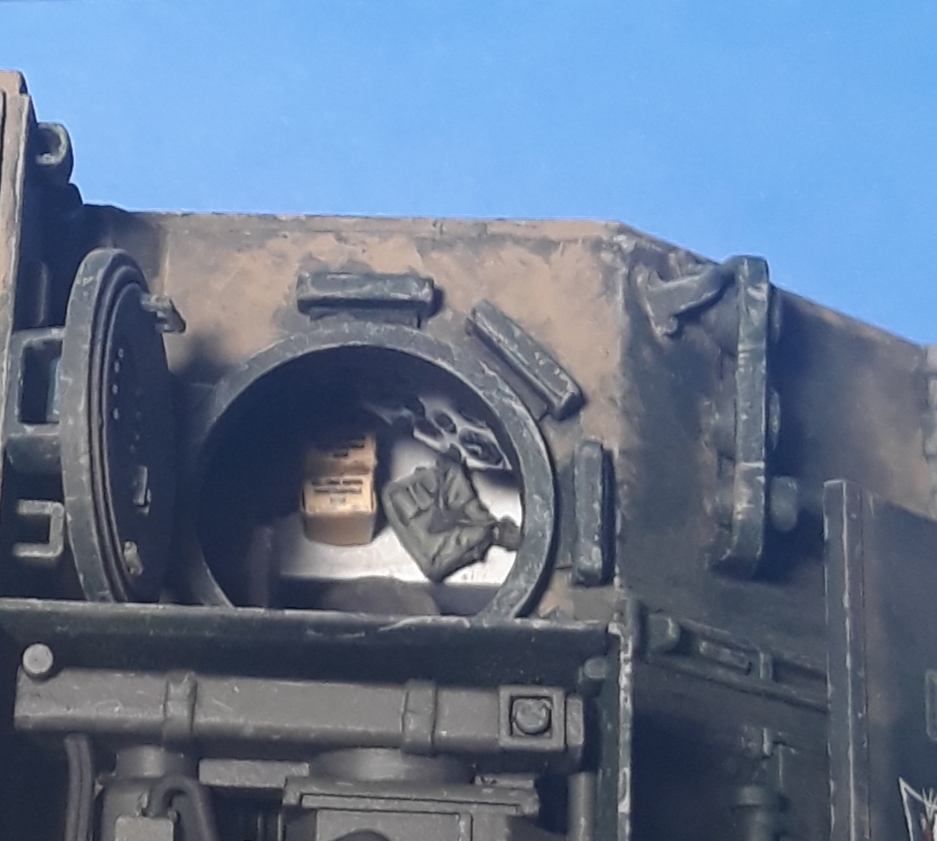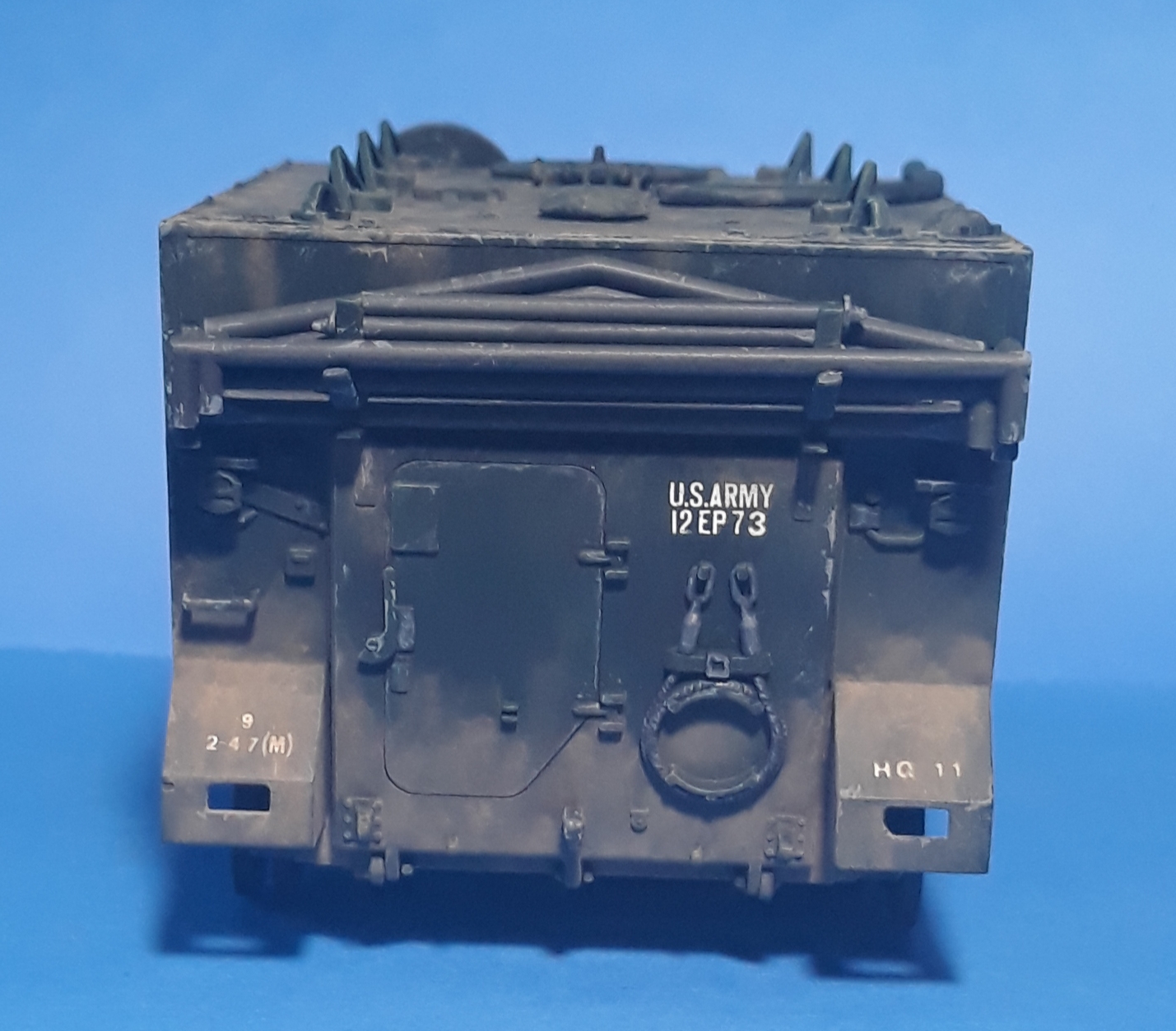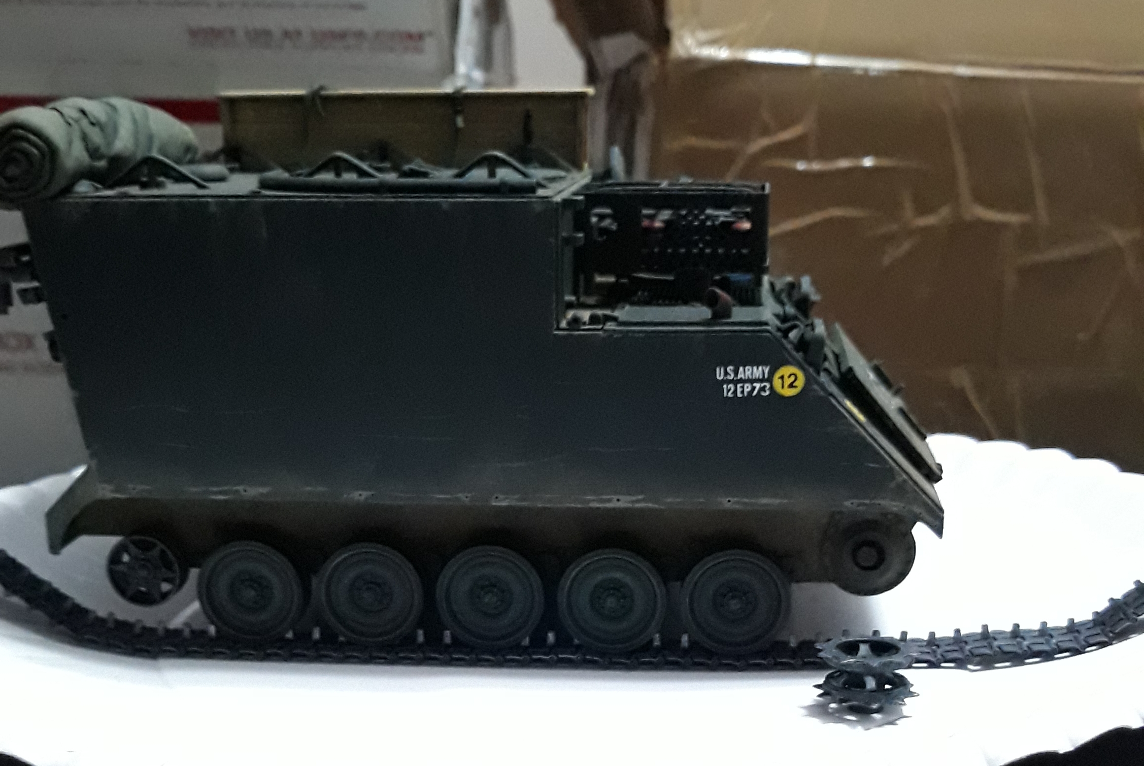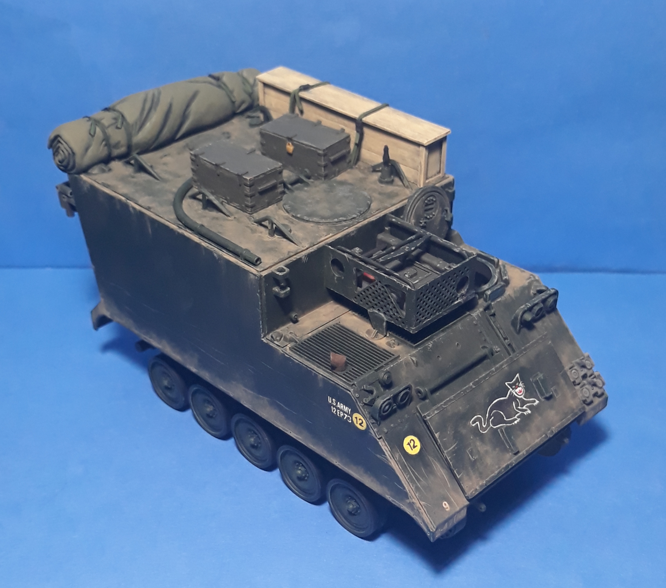After these photos were taken, I glued the two footlockers to the roof. I still need to weather the tracks and road wheels, add the antenna, and place the shovel onto the front. I started working on figures last night and today.