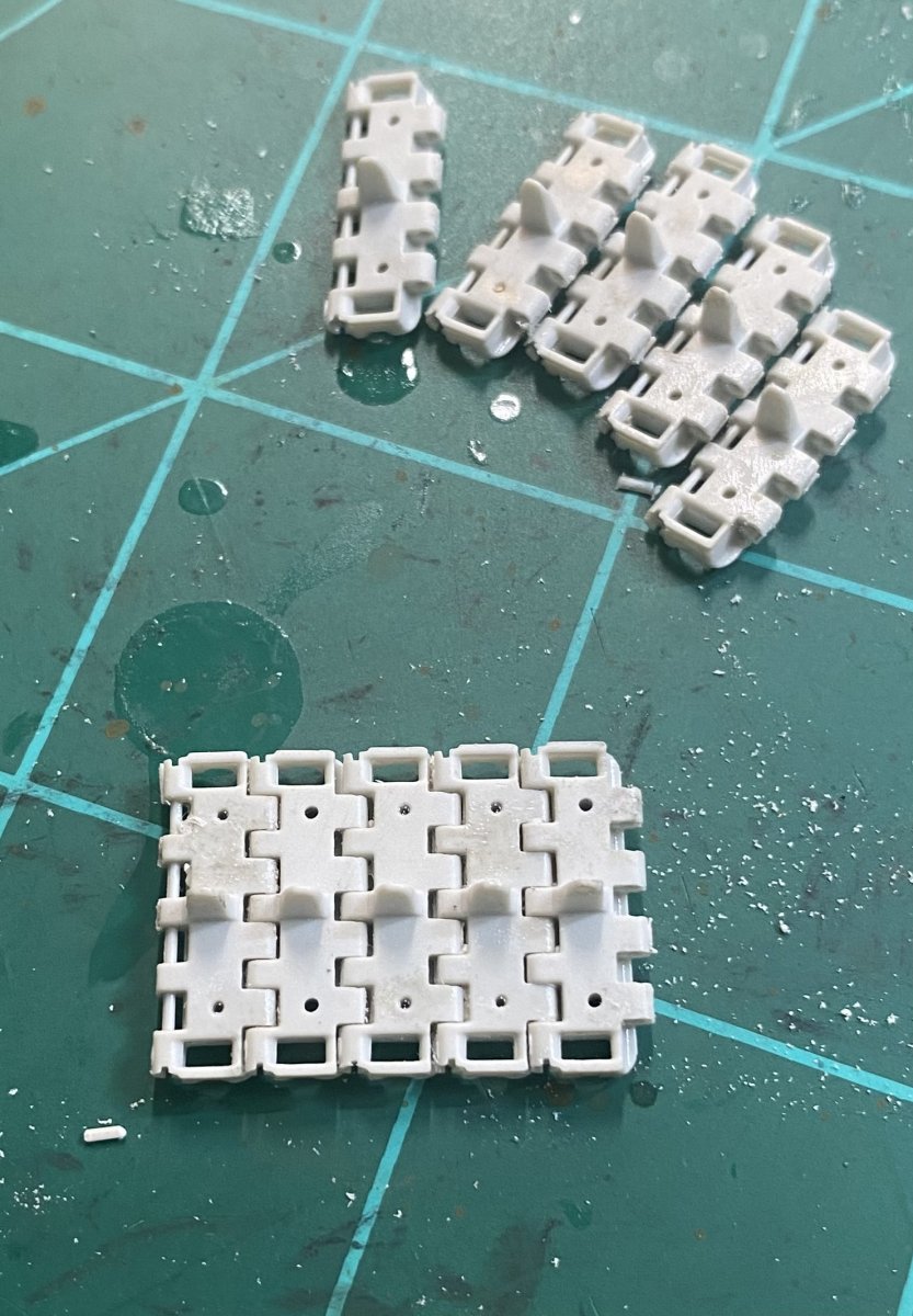 I usually assemble the tracks in sets of 10 for the majority of the tracks, with plenty of single unassembled links. Then I assemble the sections and add single links to finish out the correct length.