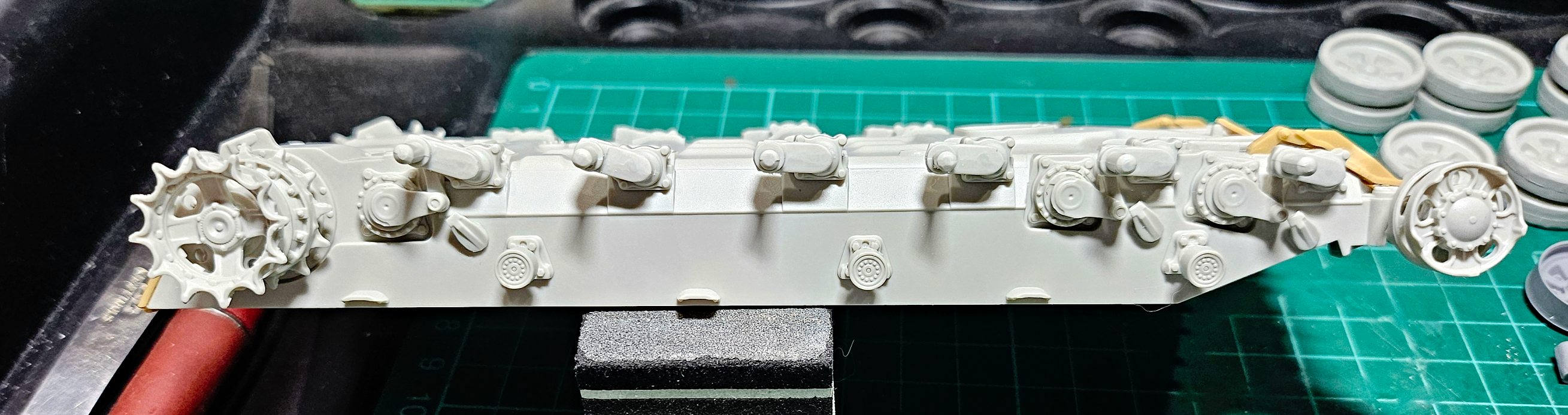 The paint has started so it is all about staging the paint from chassis to wheels & tracks, to armour panels, then decals on the turret and final weathering.