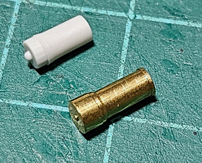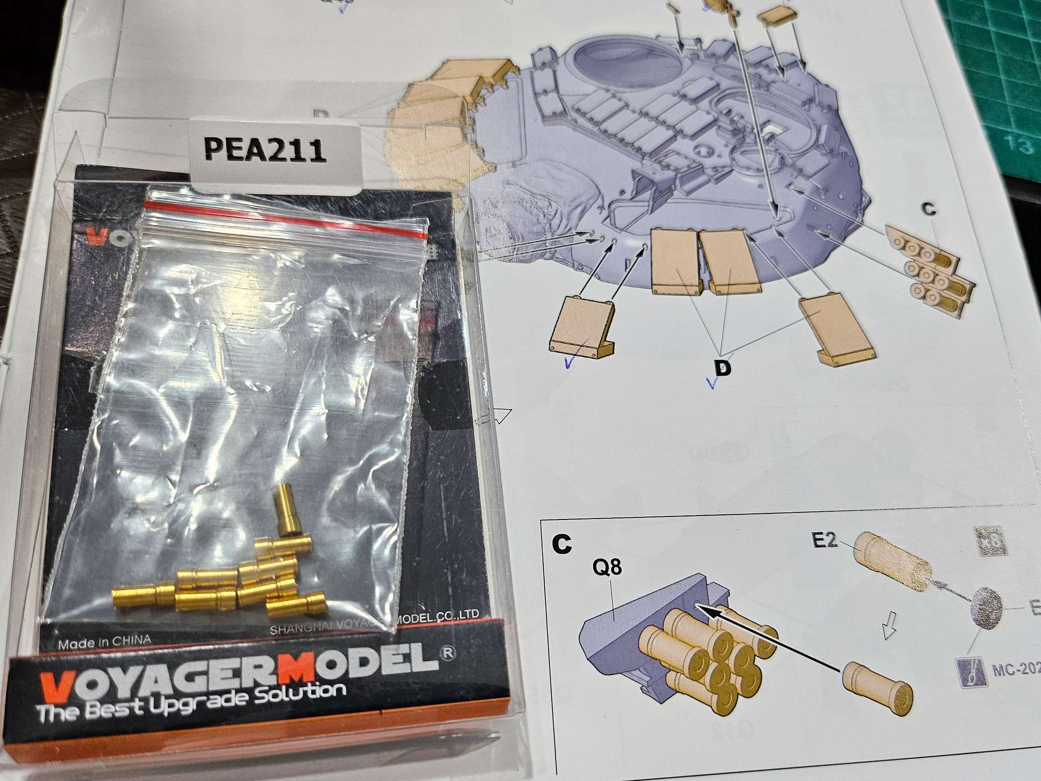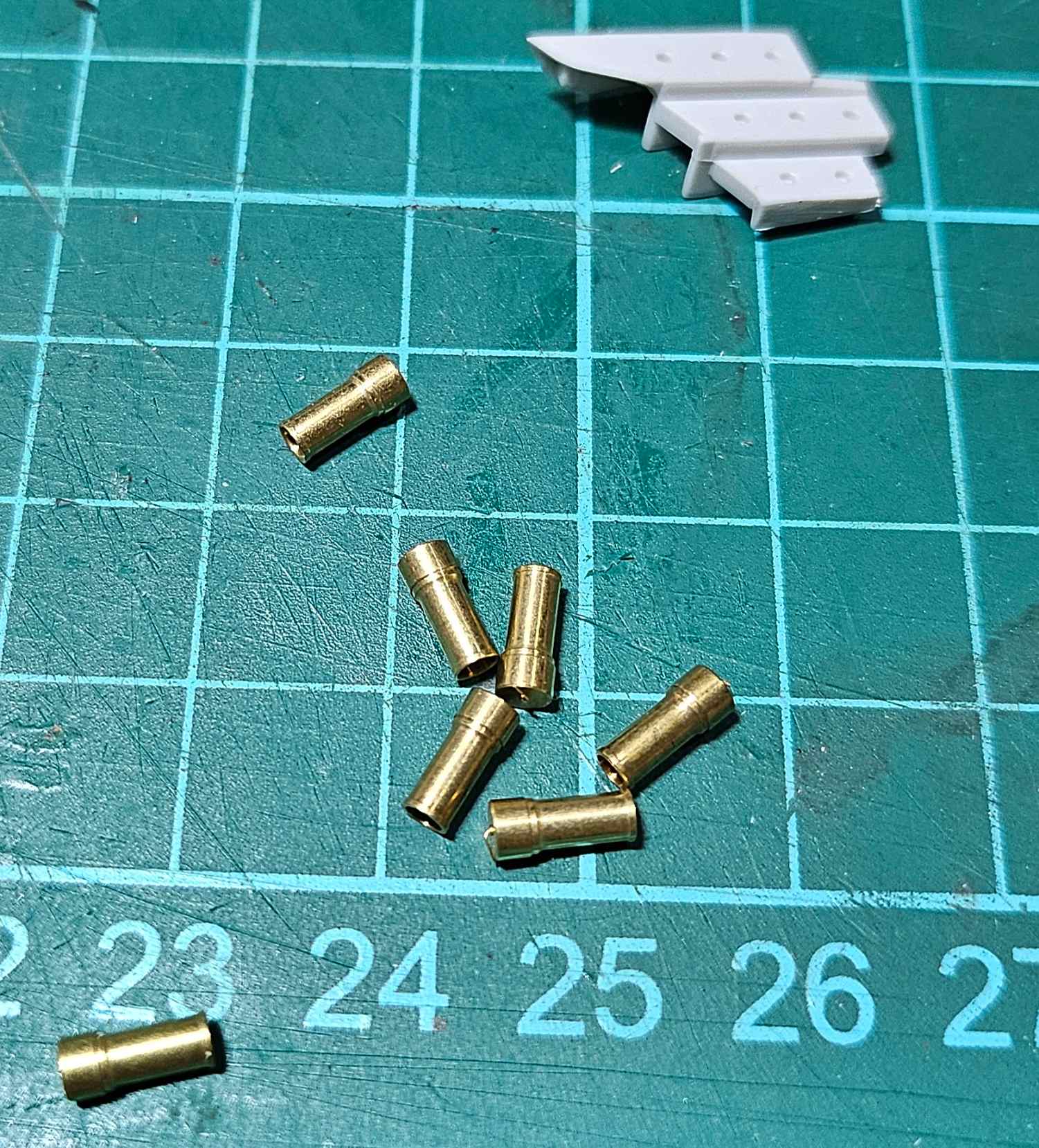 I added some voyager brass smoke dischargers so that I could have a few of them looking open and spent. The shape and length is different from the kit ones but the end caps fitted OK.