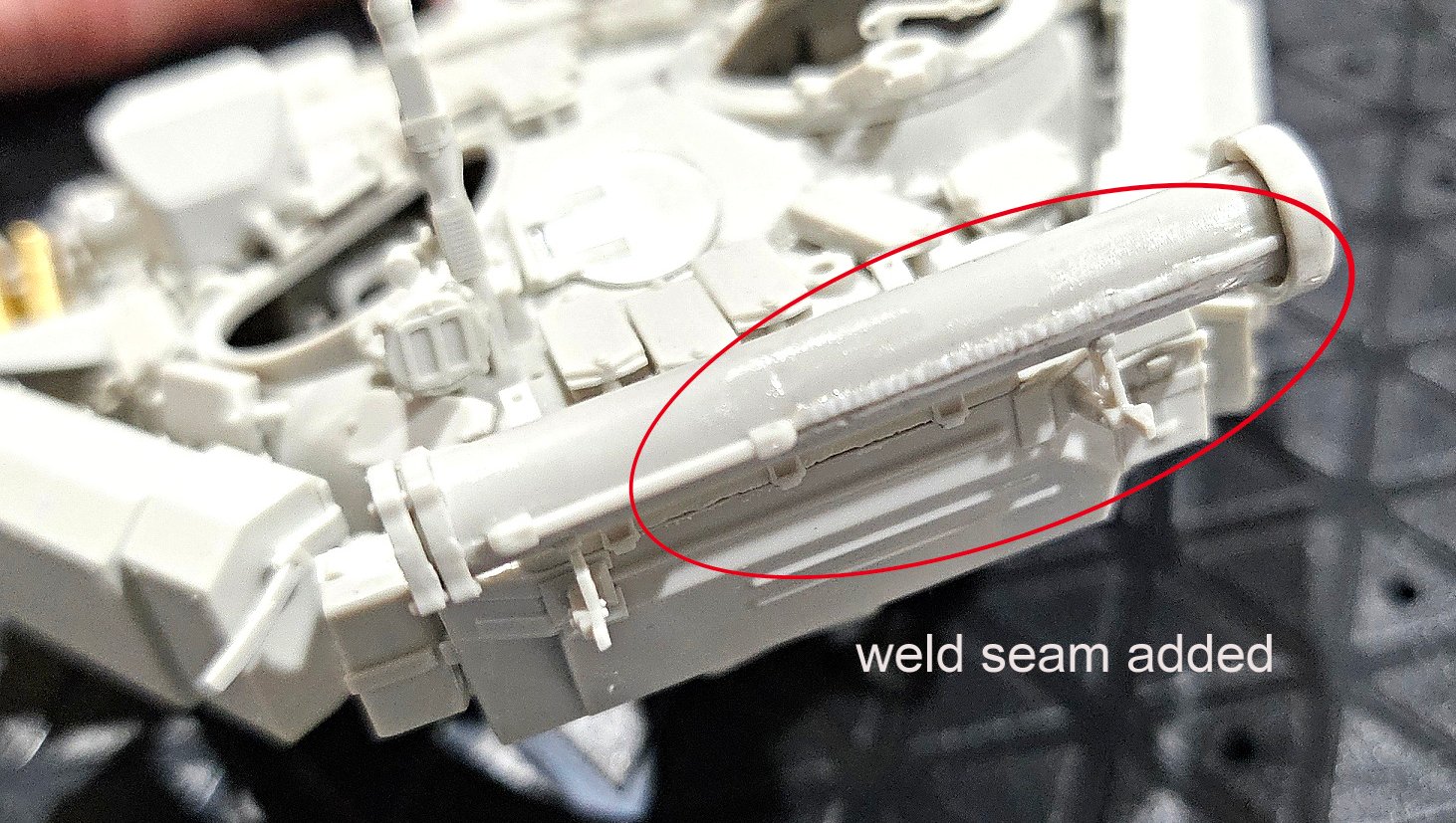 The red circle on the image below shows where I have added a missing weld seam to the rear canister (barrel cleaning rods)?