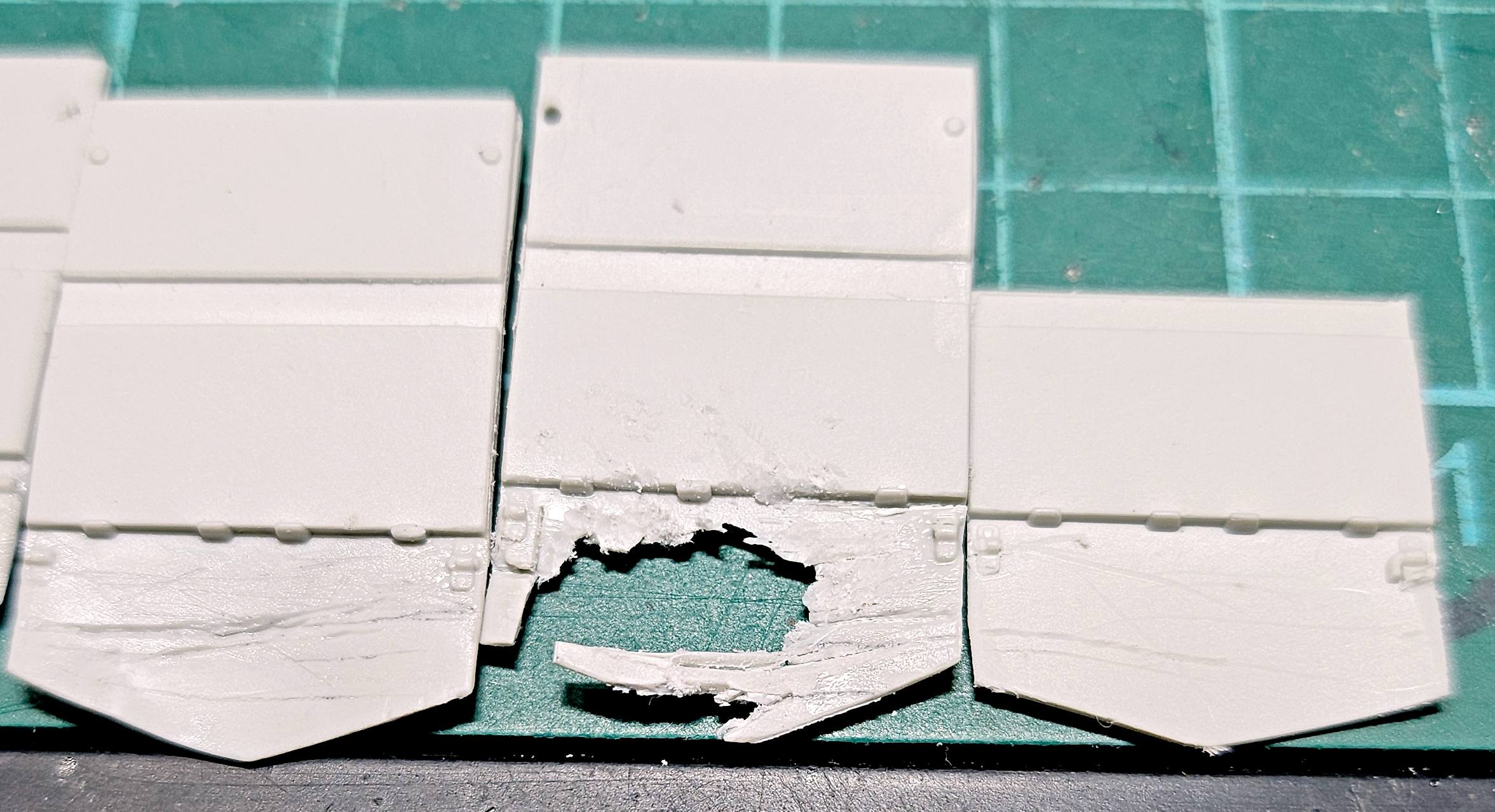 The side armour comes as one large section but can easily be carved -up to simulate individual damaged sections. The rubber sections on these can be scratched, dented and gouged.