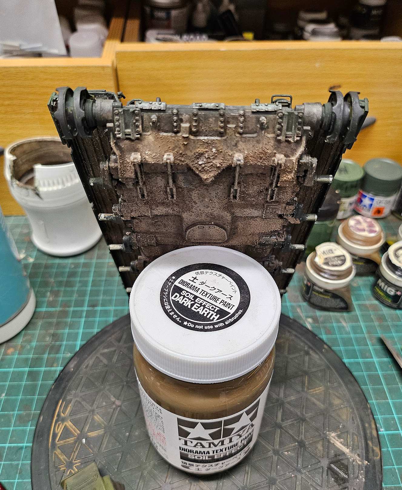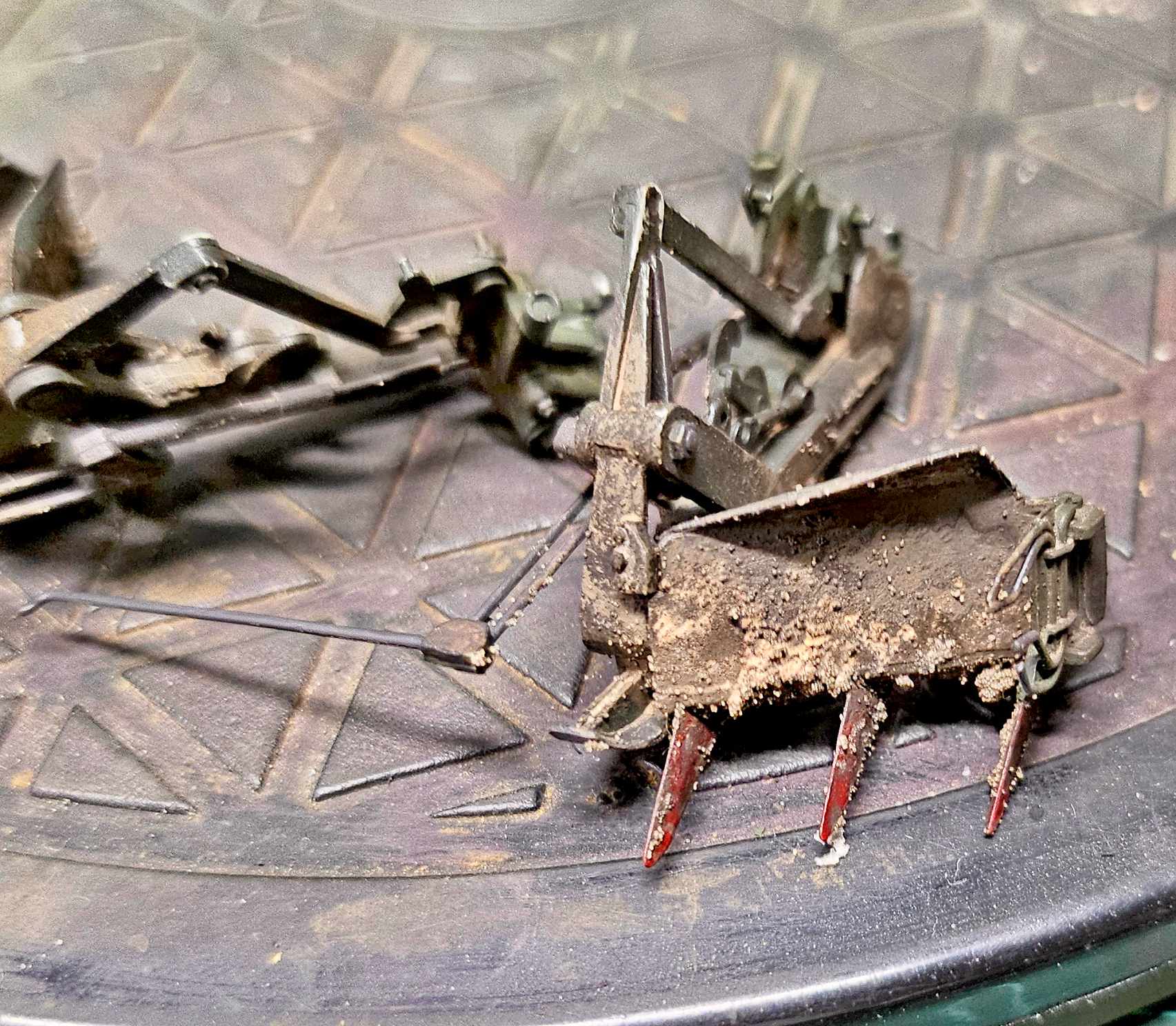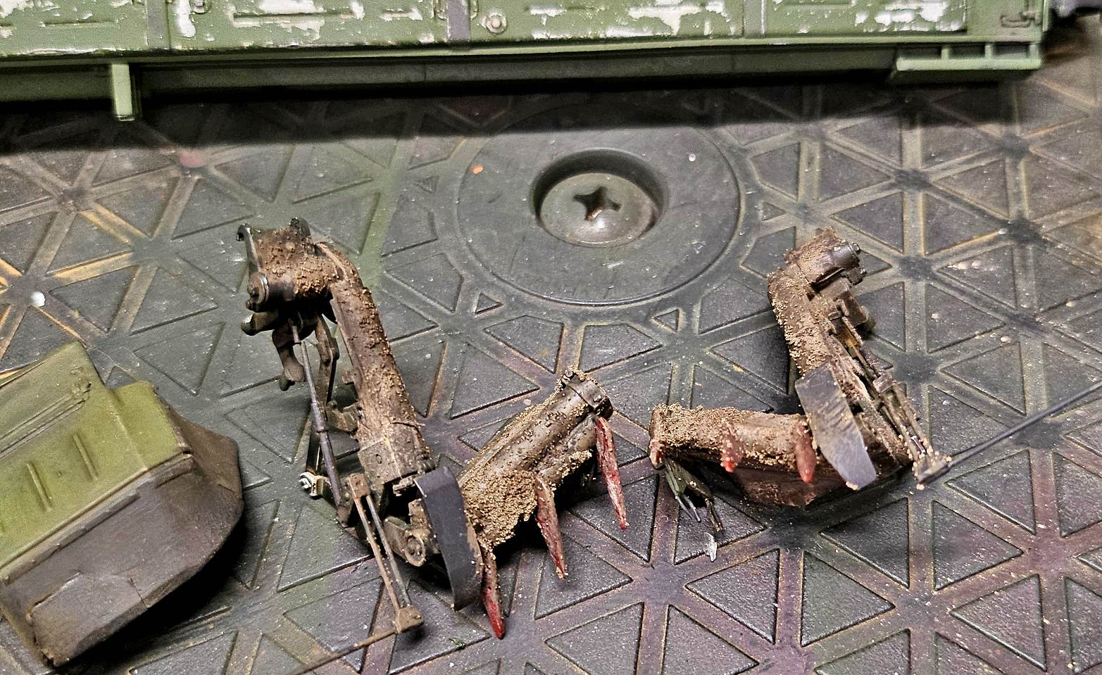 The KMT-8 Mine clearing system got a base coating as well as a start on some weathering with a dried mud mix.