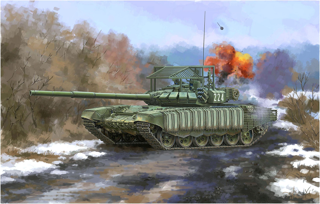 This one is a later model T-72B3 with stand-off armour grating and charge bag armour - one of my favourite T-72's.