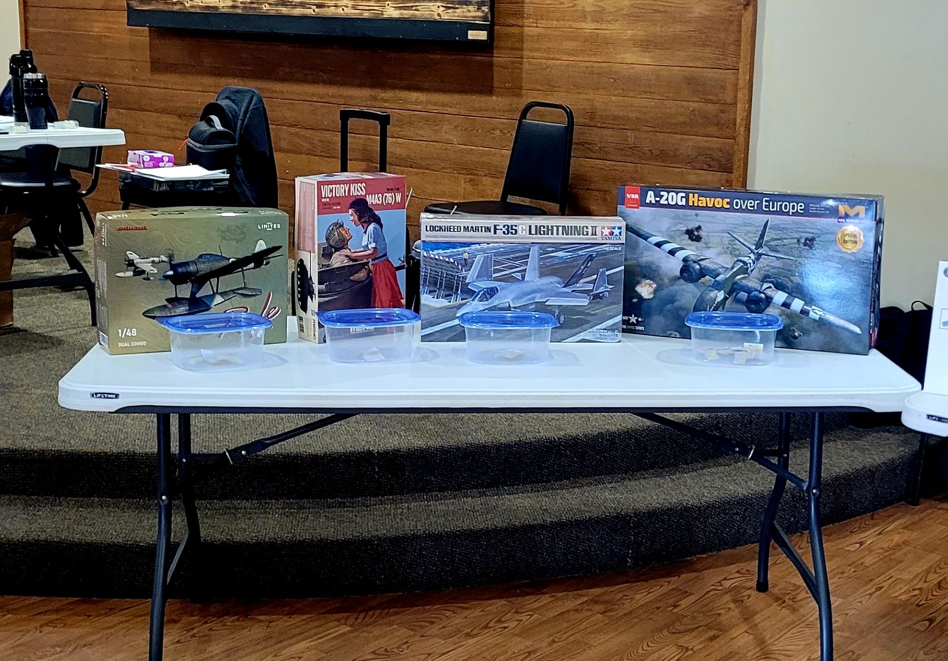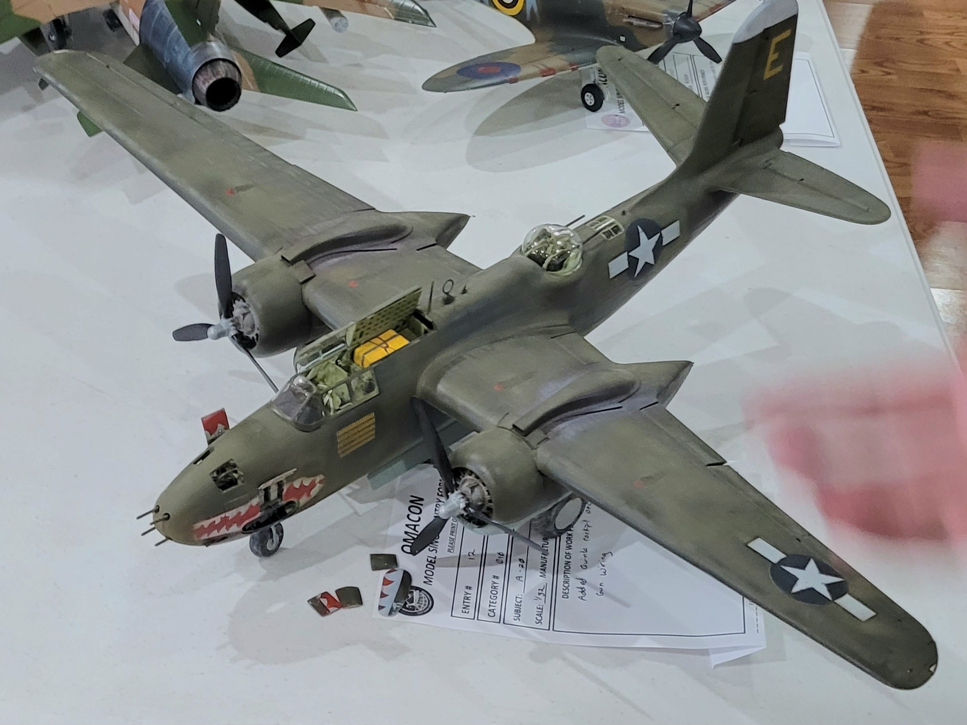 The show theme is "Monogram Memories". I am excited to see some of my old favorites, but I haven't any Monogram kit recently built to take along. If the tornader hadn't broken the landing gear off my 1/72 F-82G Twin Mustang, things would be different!!