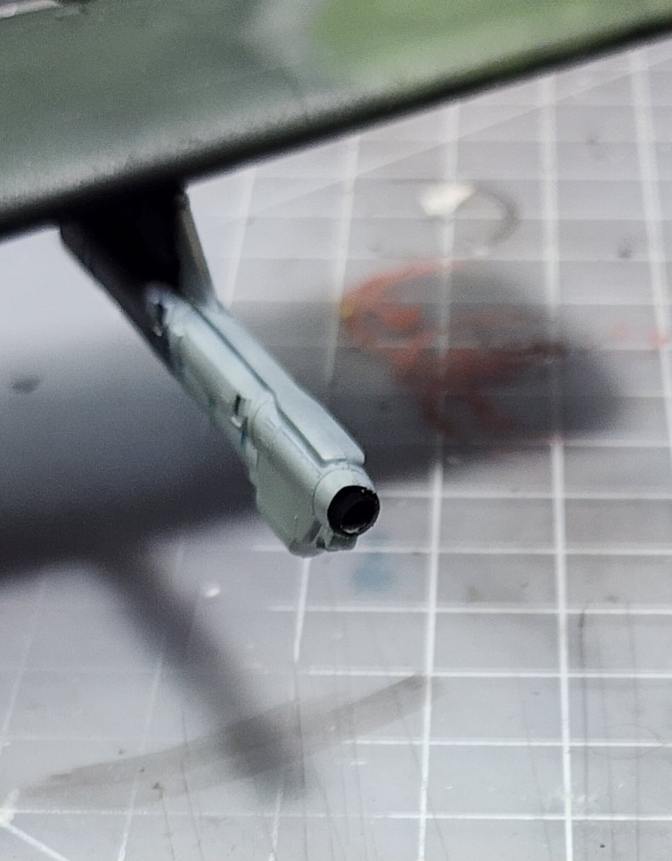 I was looking at my references and thought that the jammer under the port wing was supposed to have a glass front, so I cut off the front tip.